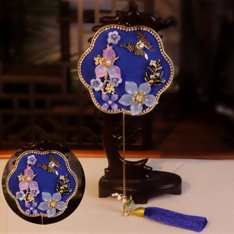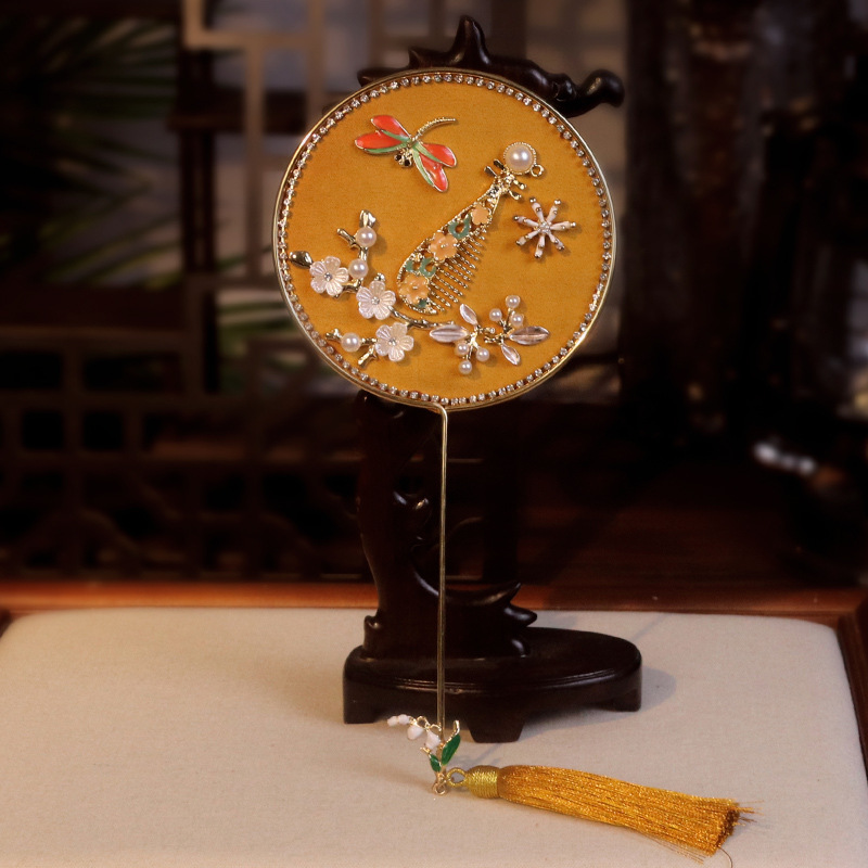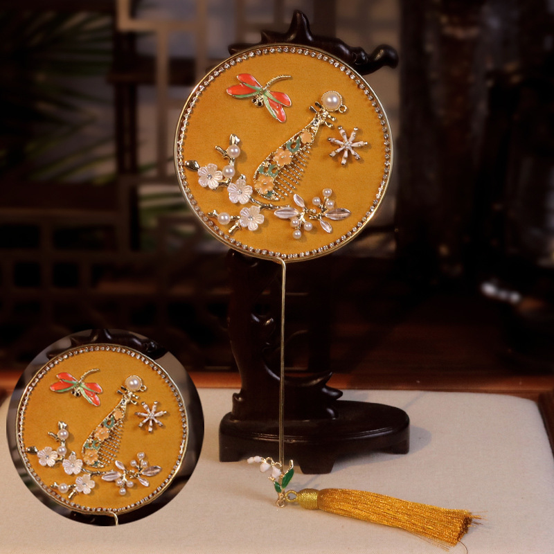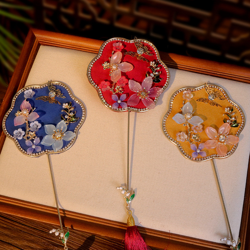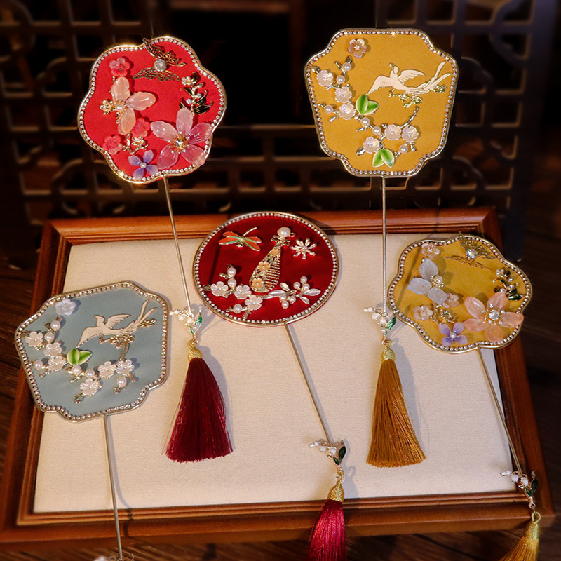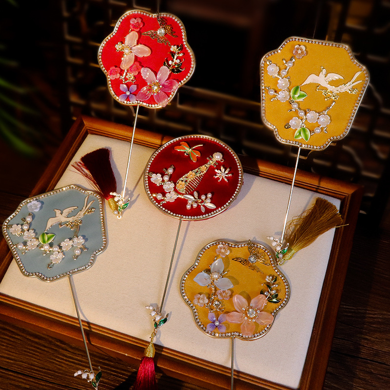 新中式婚礼结婚拍照小团扇秀禾服龙凤袍流苏配饰古装精致手工扇子