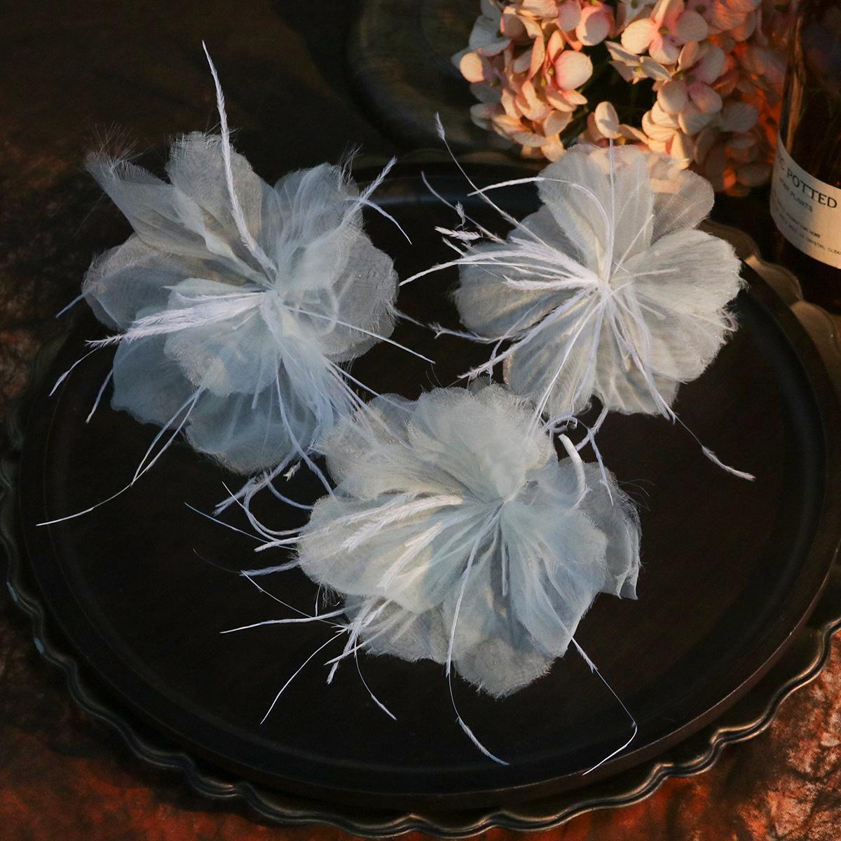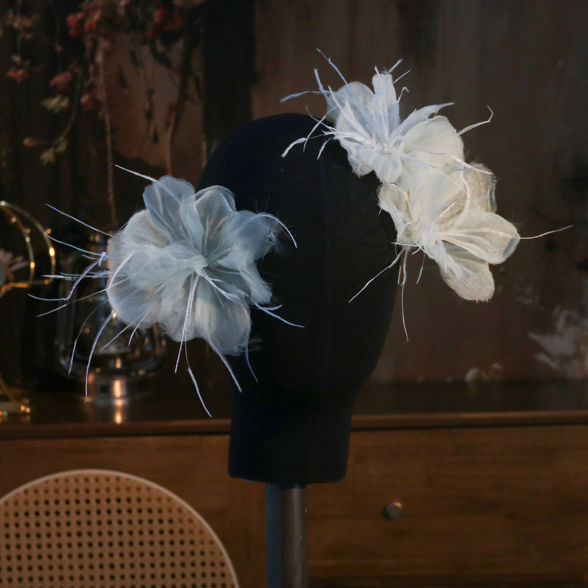 新娘头饰超仙气氛围感花朵羽毛头花发饰轻奢气质礼服晚宴造型配饰