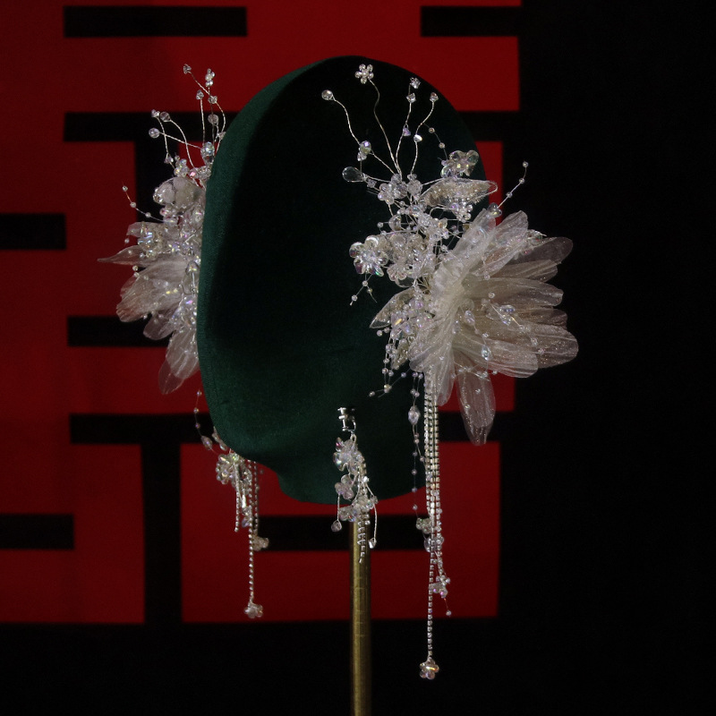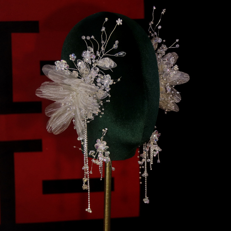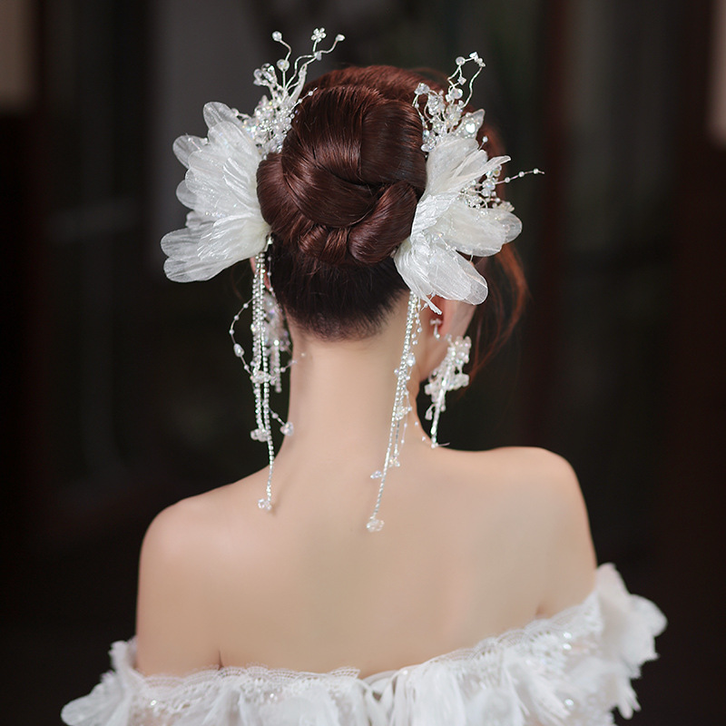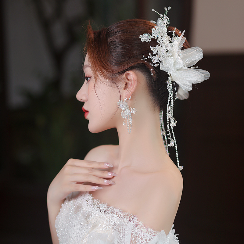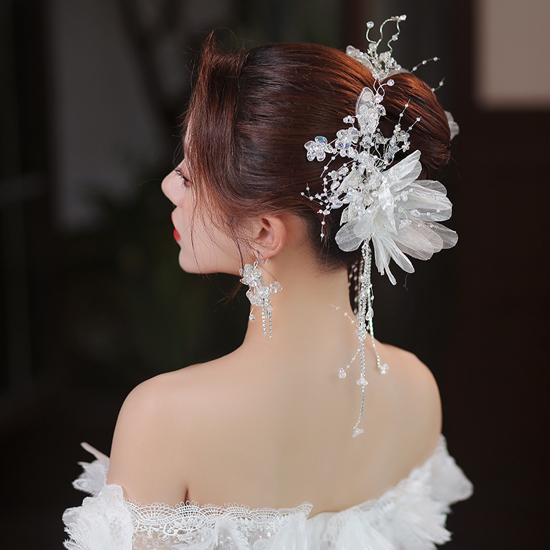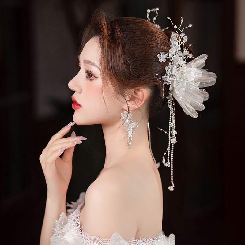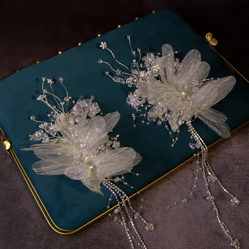 新娘头花套装新款韩式森系花朵水晶流苏发夹超仙结婚跟妆发饰配饰
