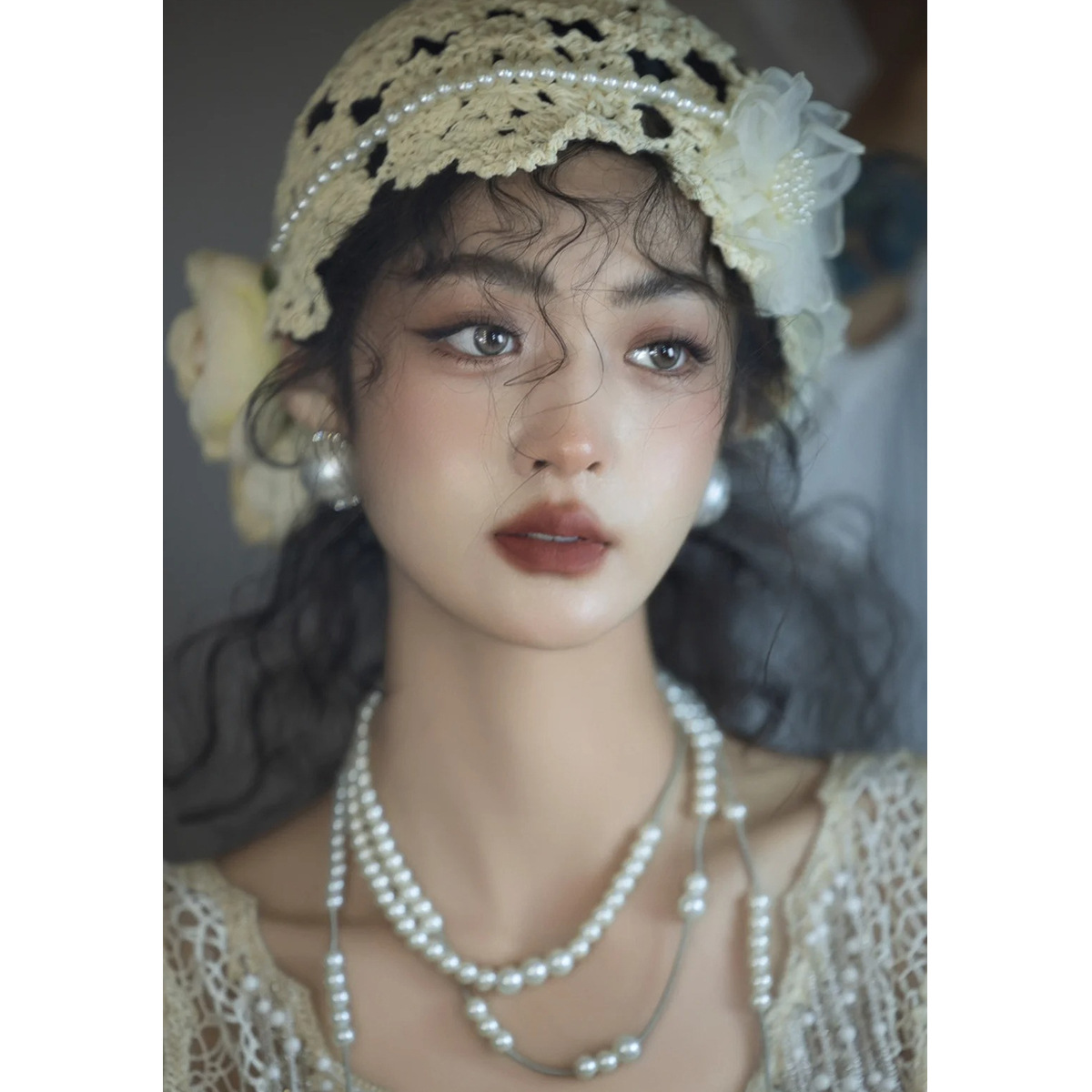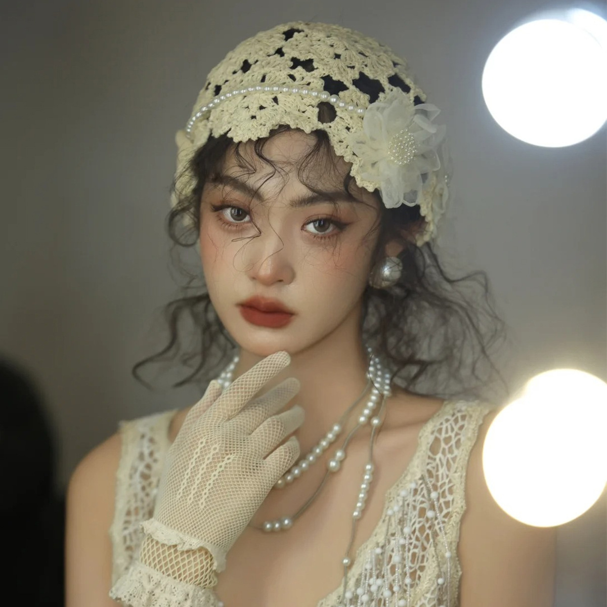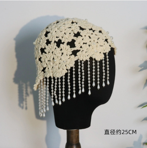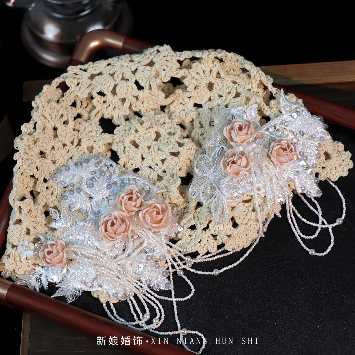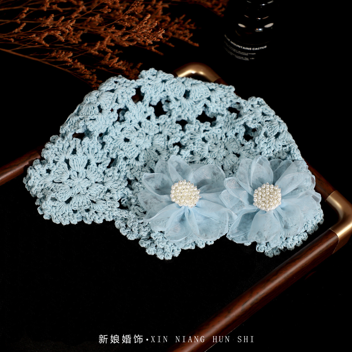 法式复古新娘烫花礼帽女手工编织镂空包头帽2024新款结婚礼服配饰
