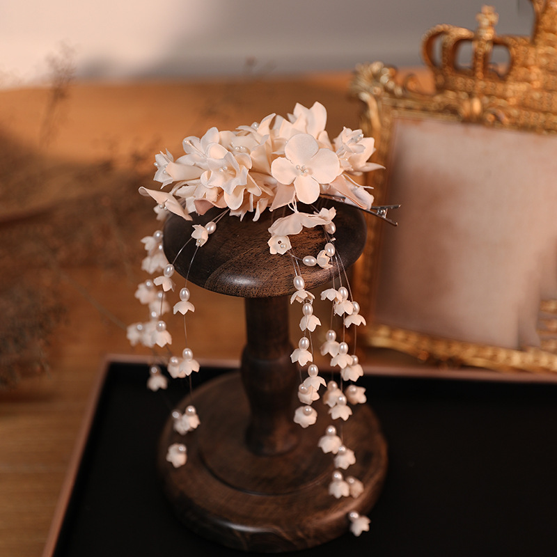 韩式超仙头饰铃兰花花朵手工流苏发夹复古婚纱发饰森系新娘饰品