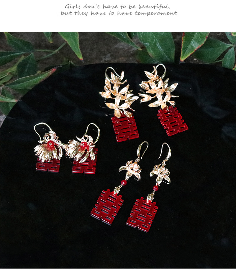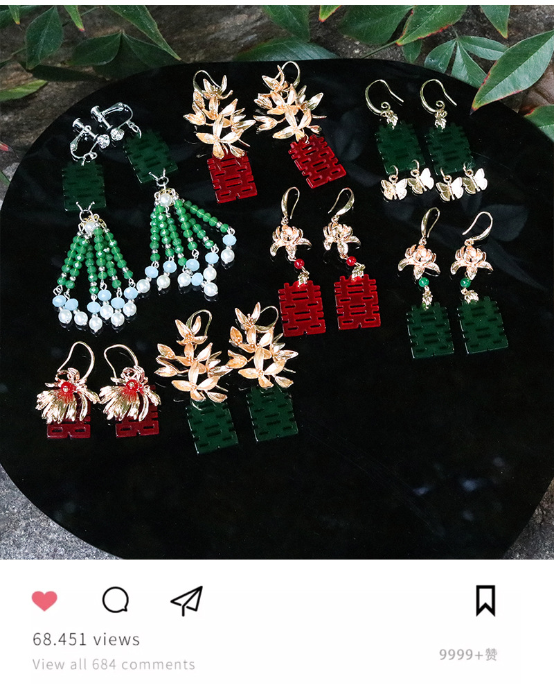 新娘新中式串珠耳环简约新款手工气质减龄耳饰古风旗袍晨袍配饰品