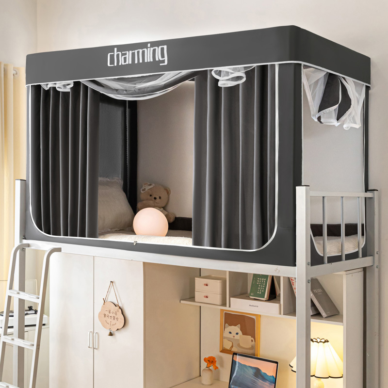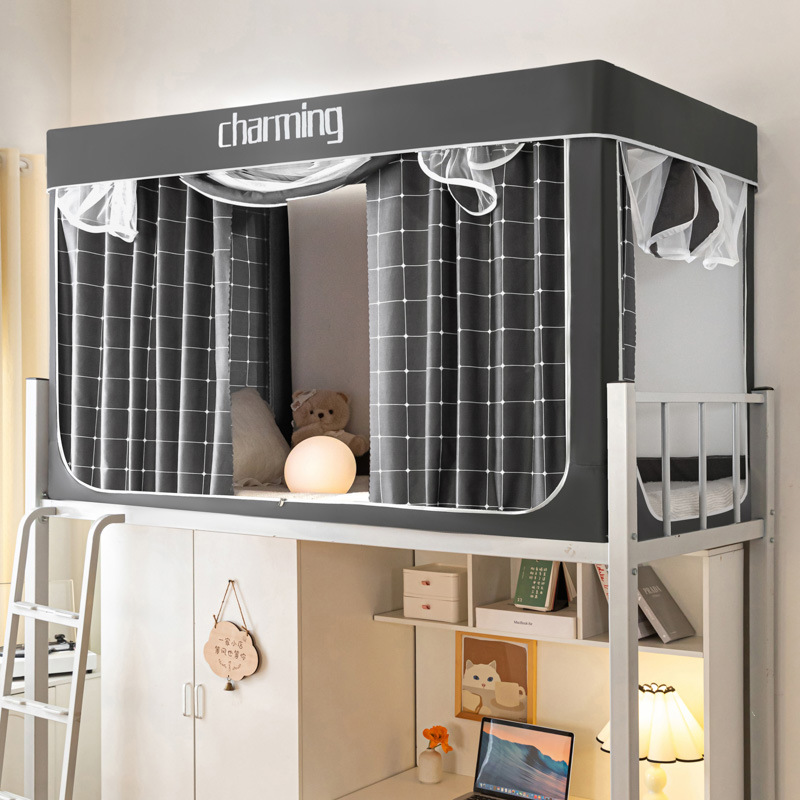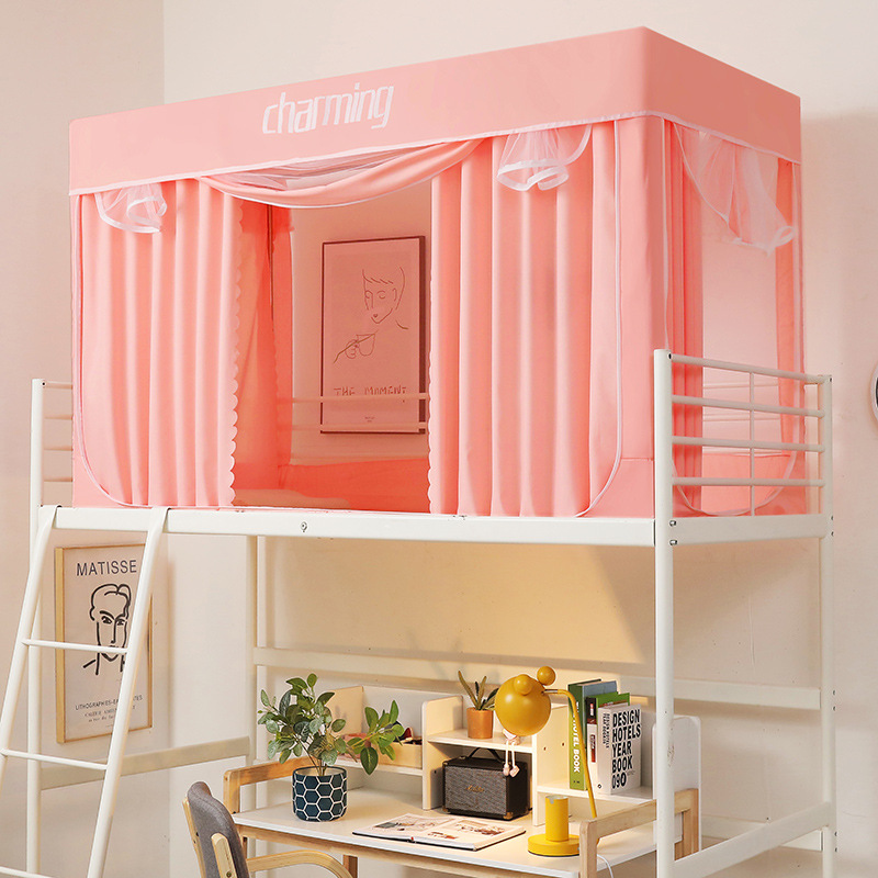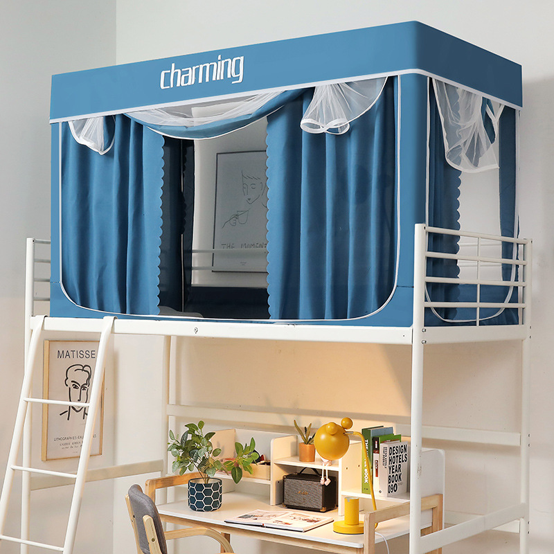 跨境款学生宿舍床帘蚊帐支架一体式寝室单人上铺下铺窗帘遮光床幔