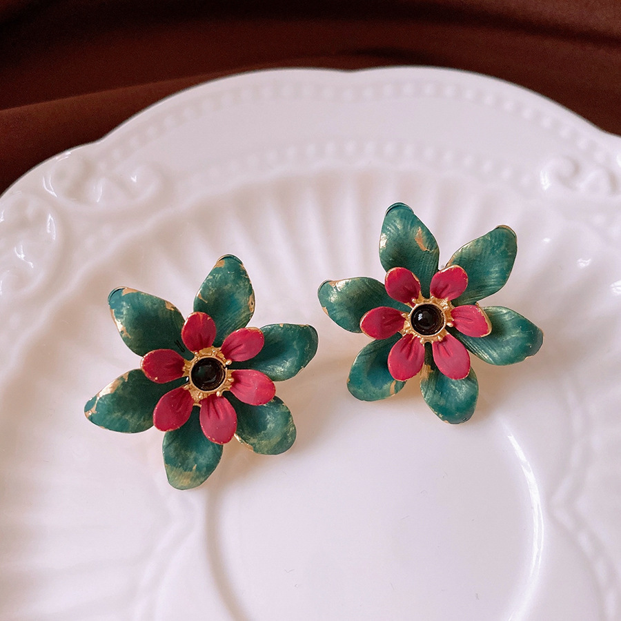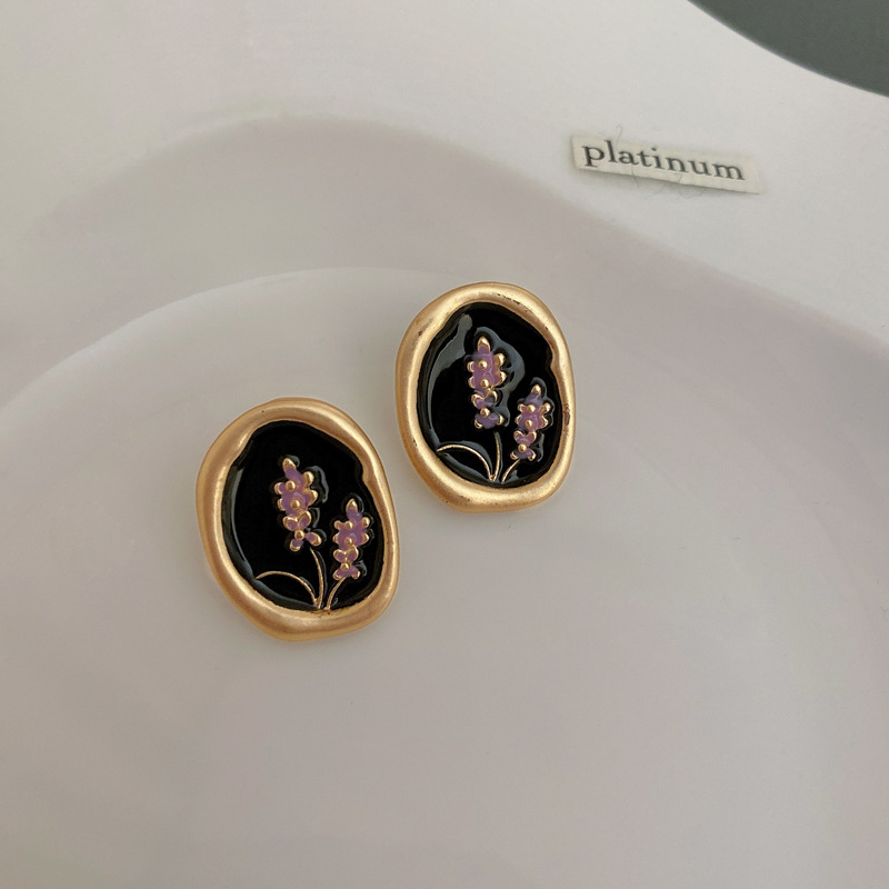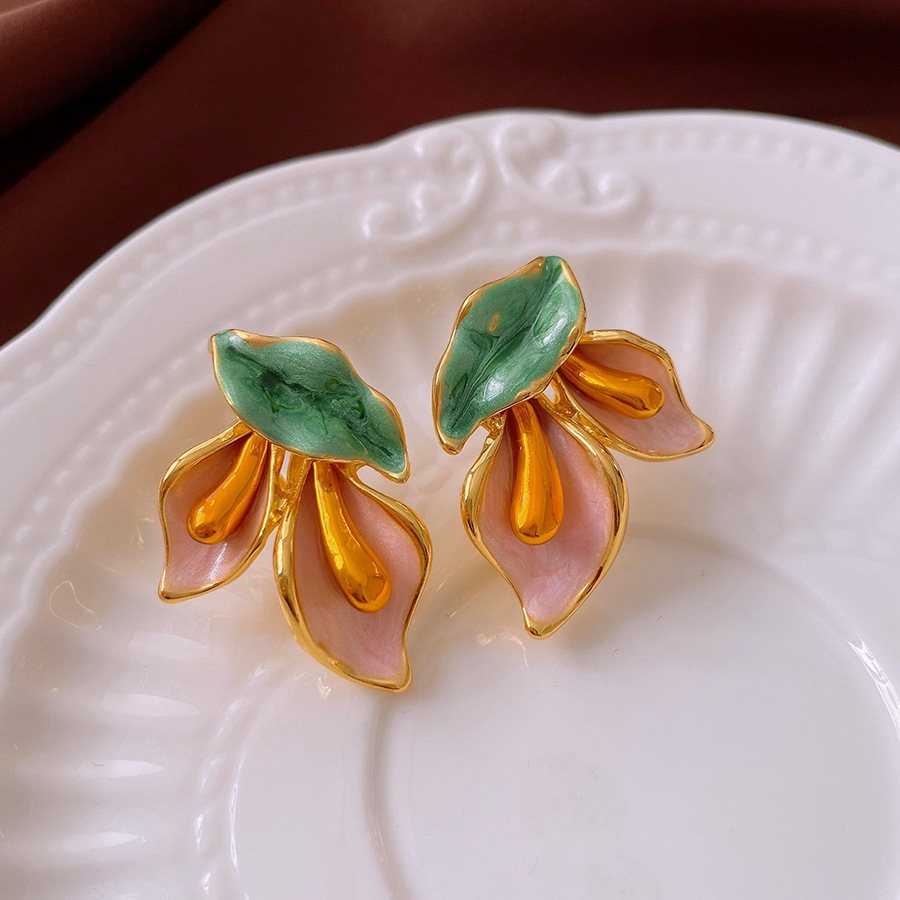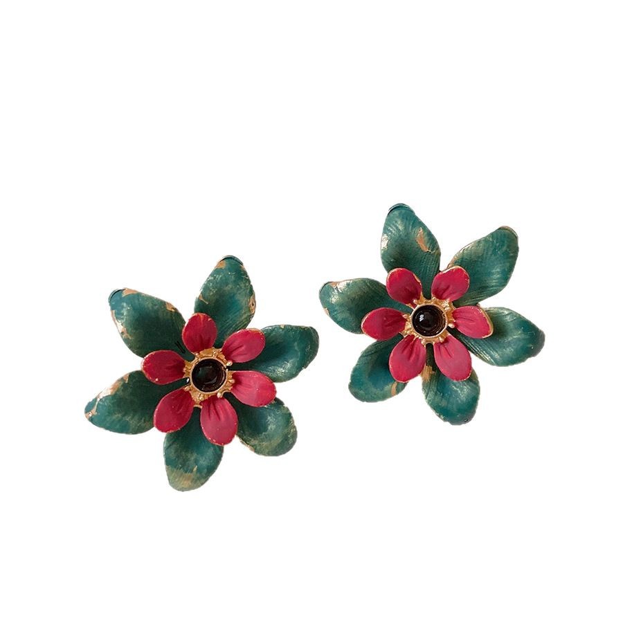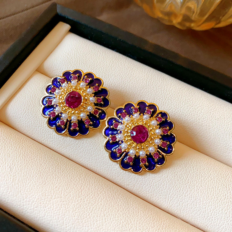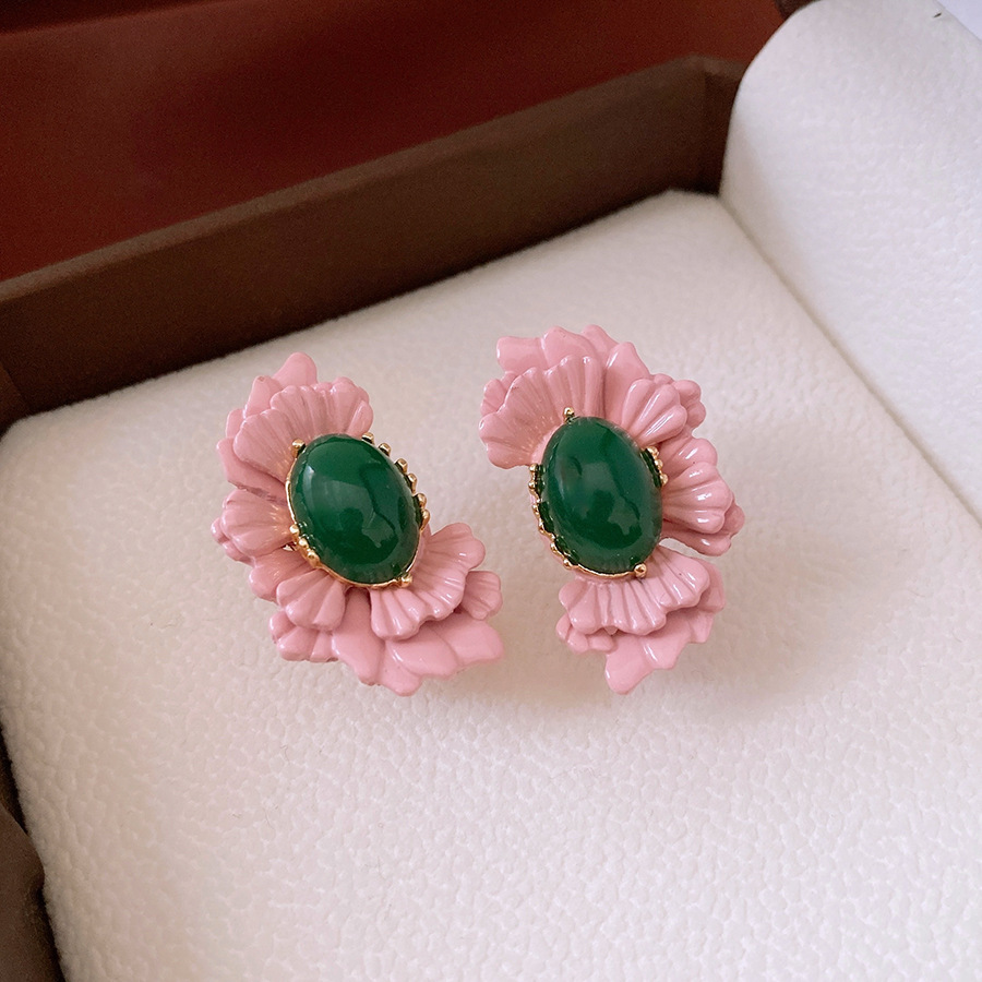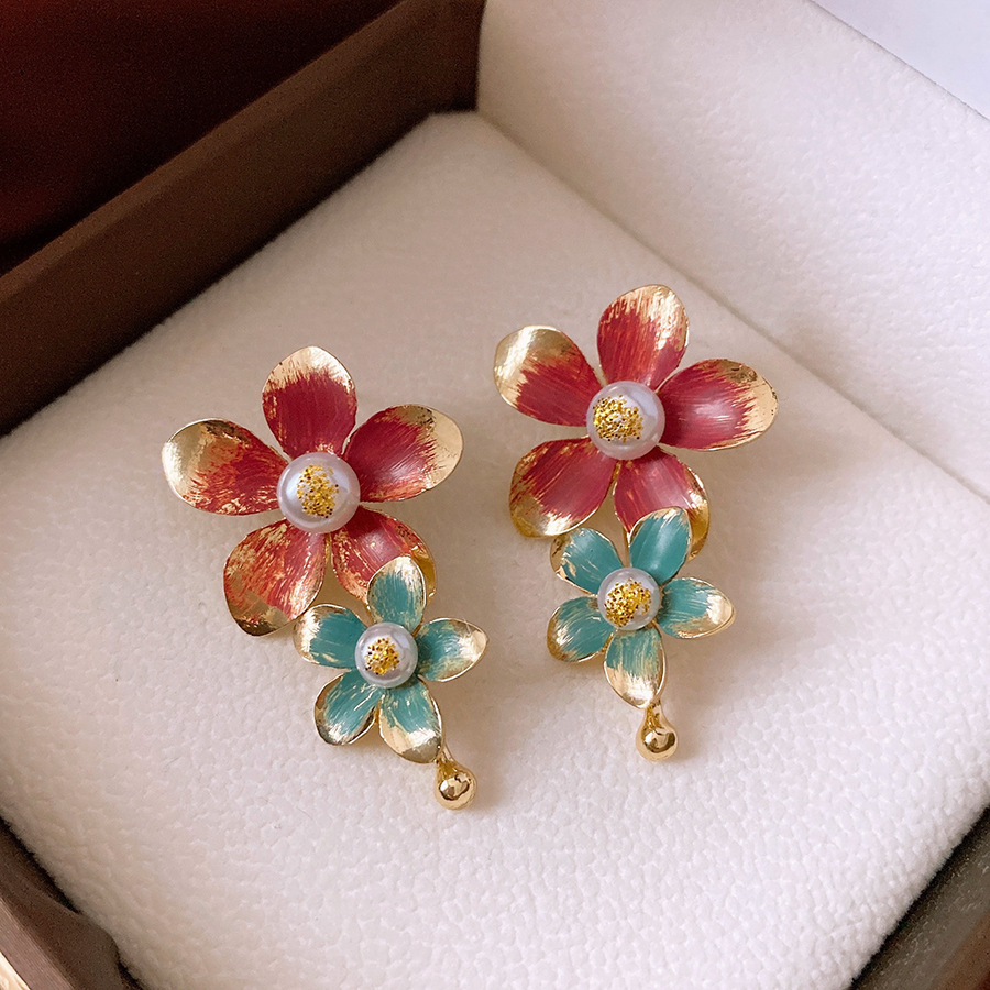 中古vintage滴油花朵珍珠耳环小众高级感耳钉轻奢百搭气质耳饰女