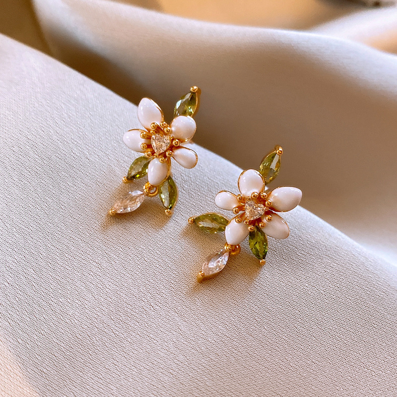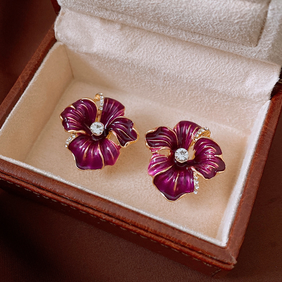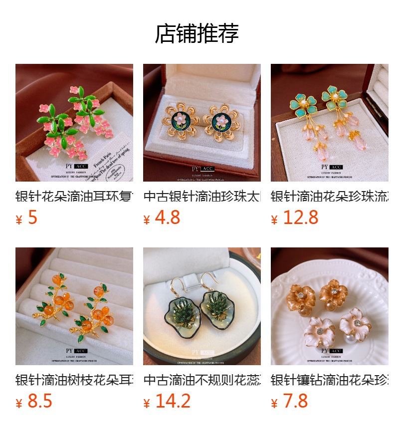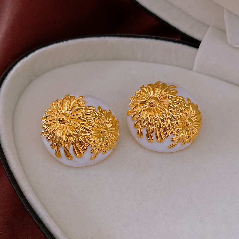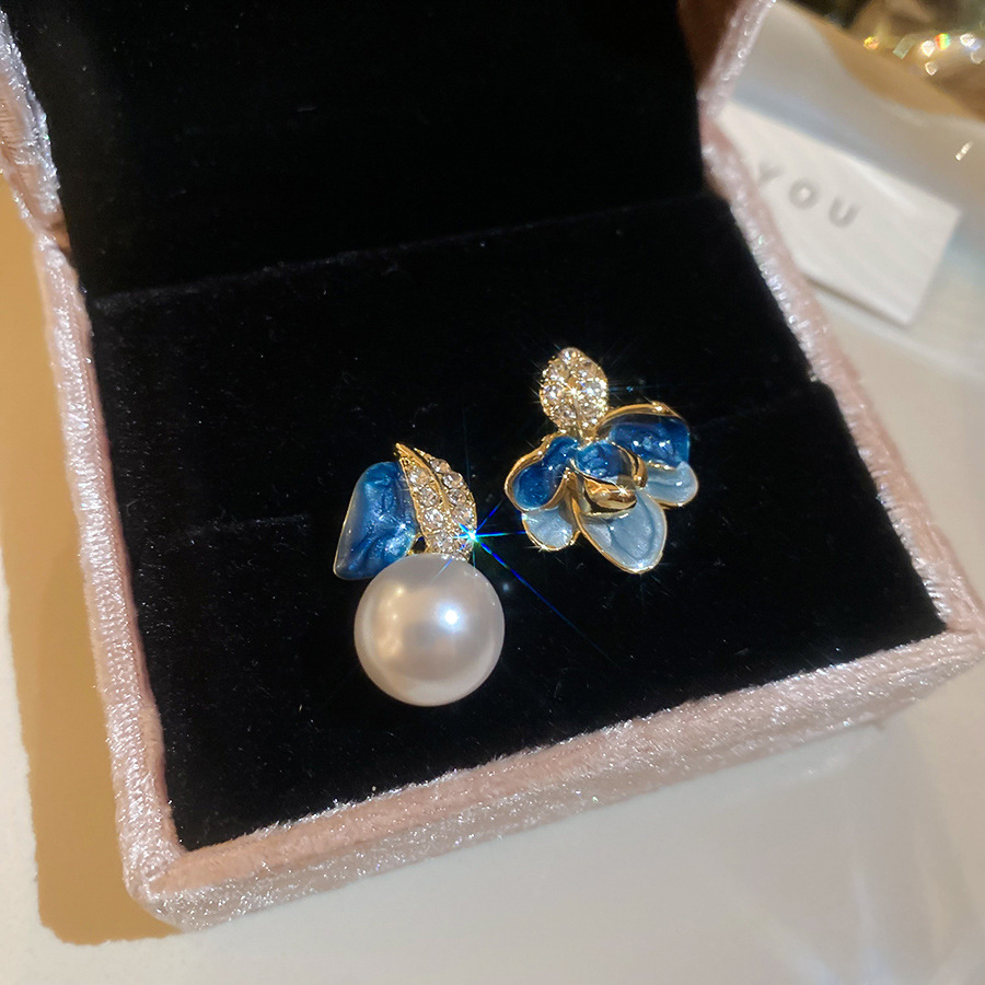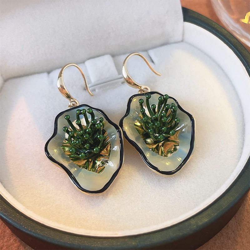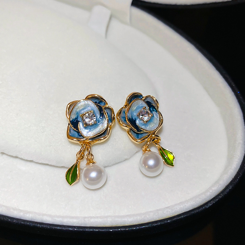 中古vintage滴油花朵珍珠耳环小众高级感耳钉轻奢百搭气质耳饰女