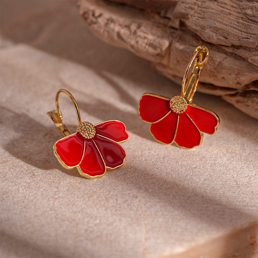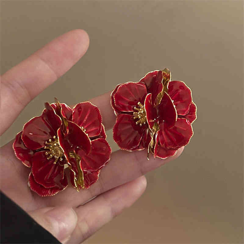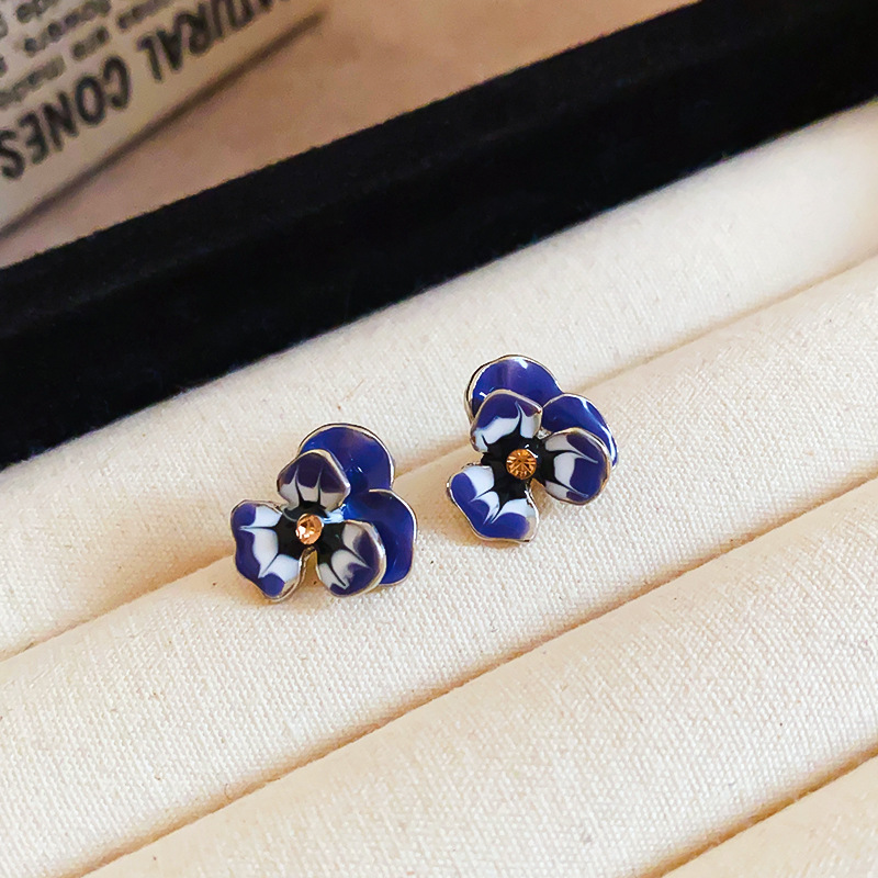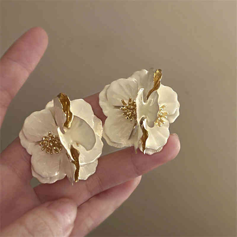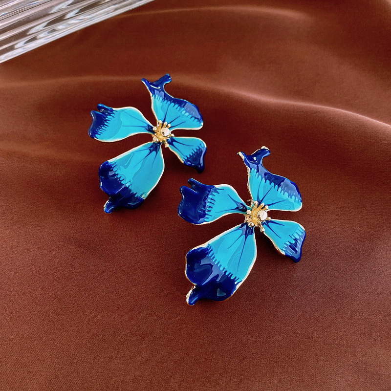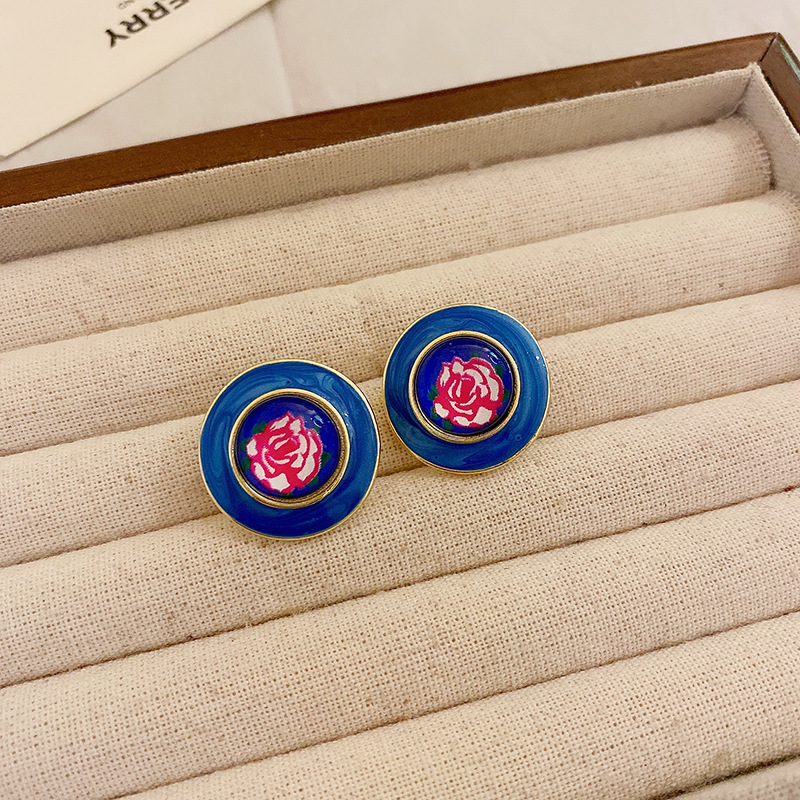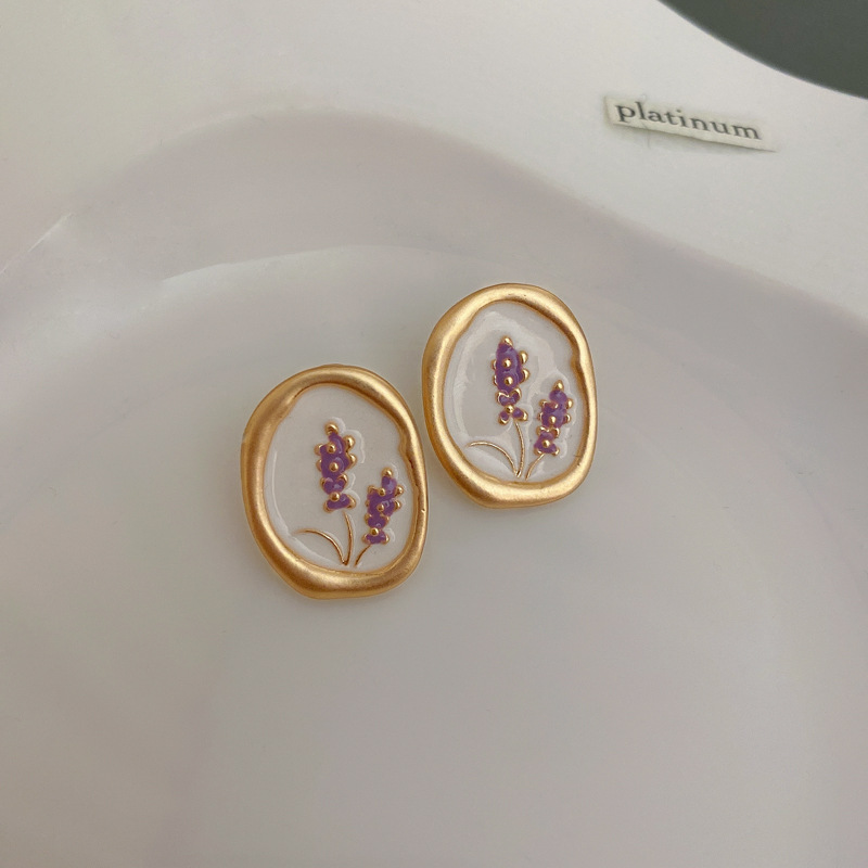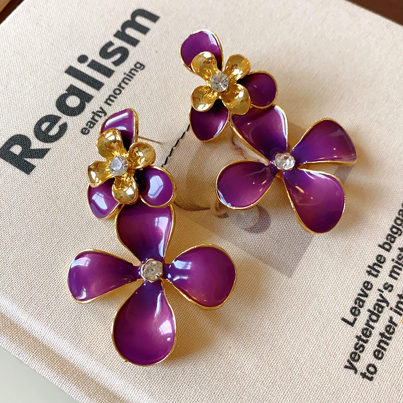 中古vintage滴油花朵珍珠耳环小众高级感耳钉轻奢百搭气质耳饰女