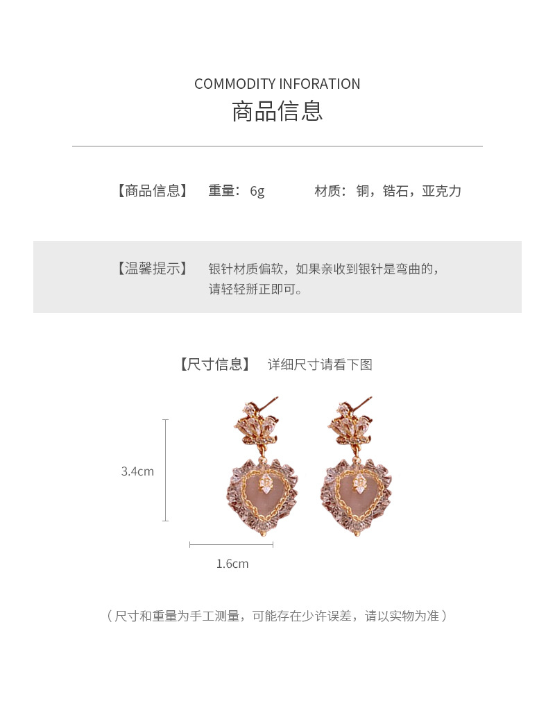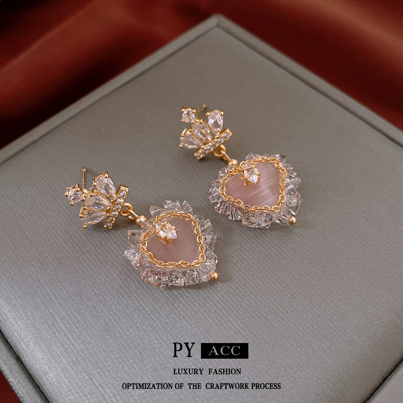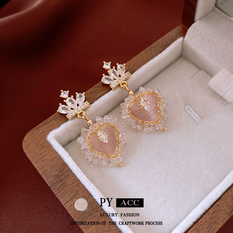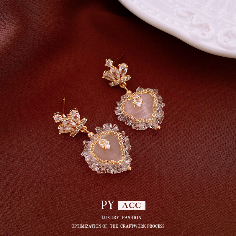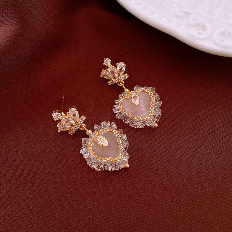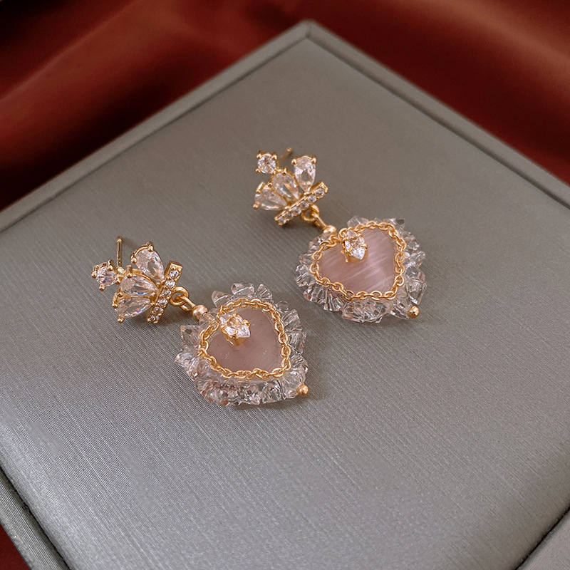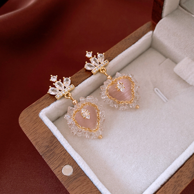 真金电镀银针锆石皇冠爱心耳环欧美轻奢高级感耳钉小众耳饰批发女