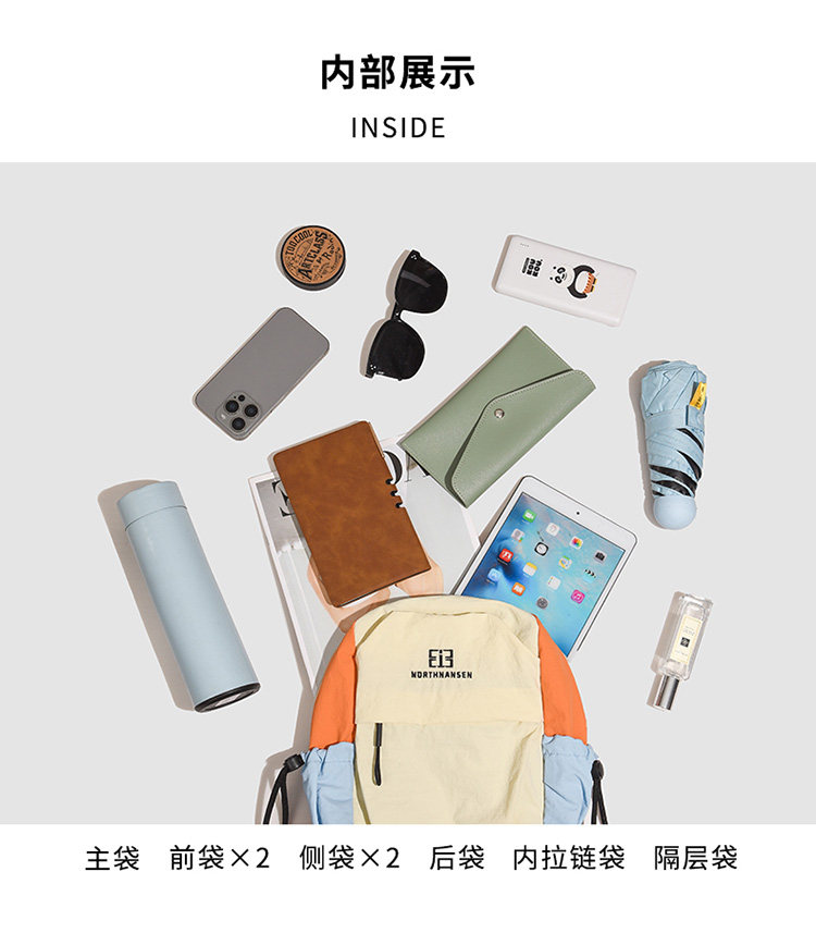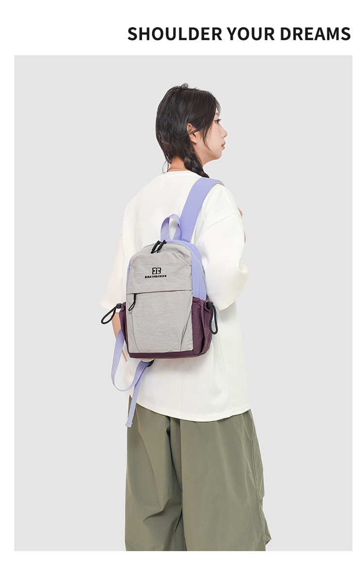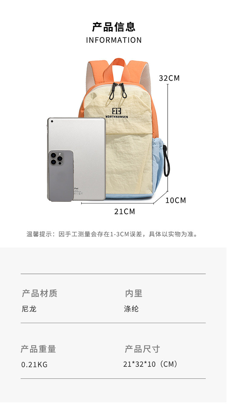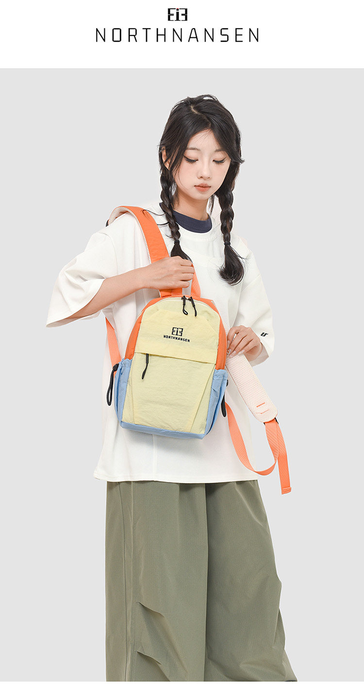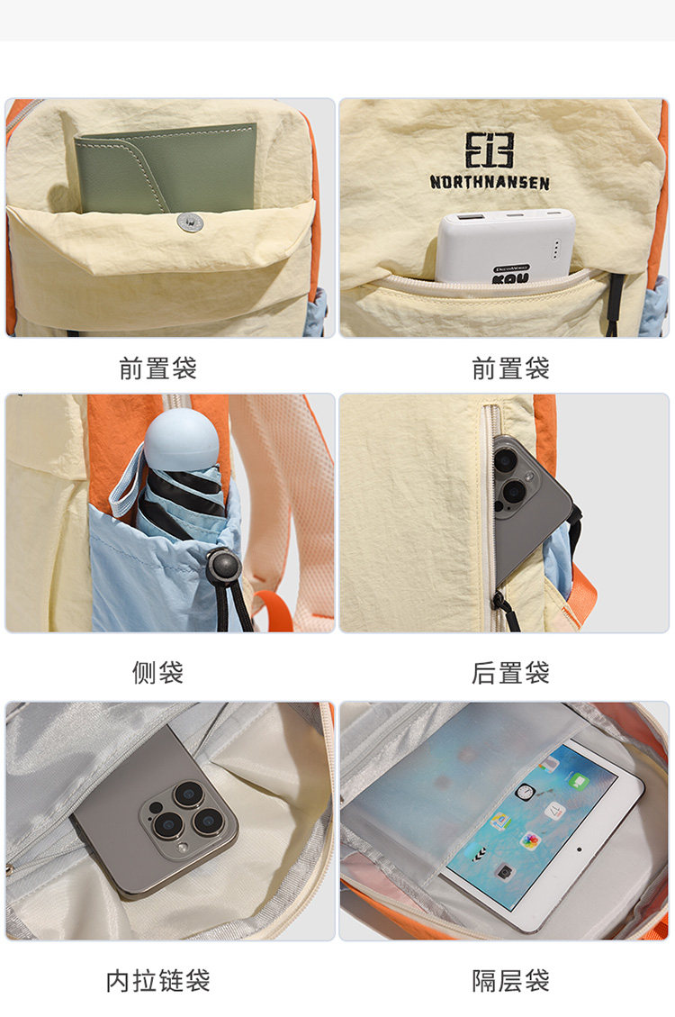 新款轻便双肩包日系韩版登山包休闲书包女撞色百搭大学生高中背包