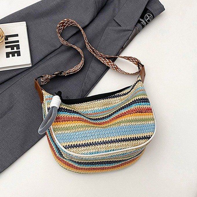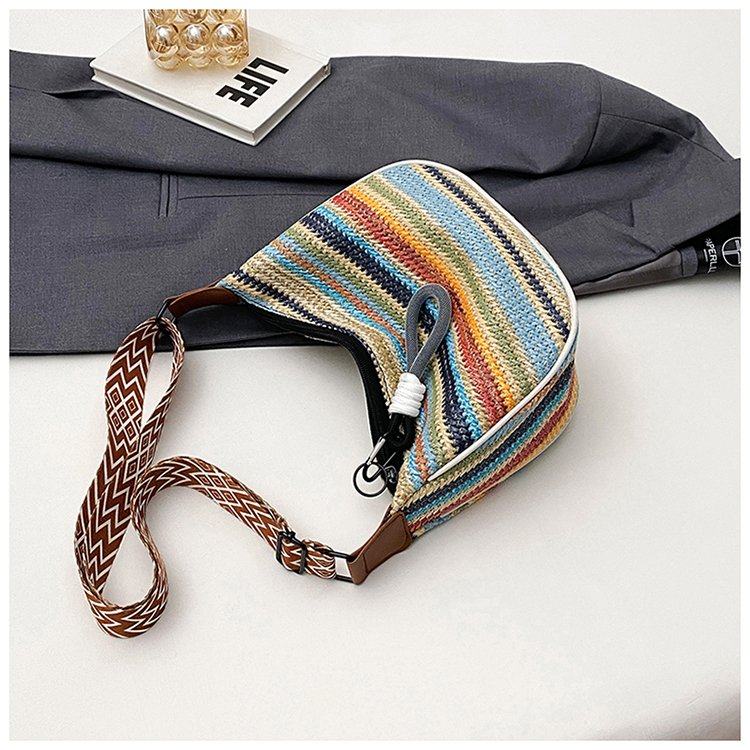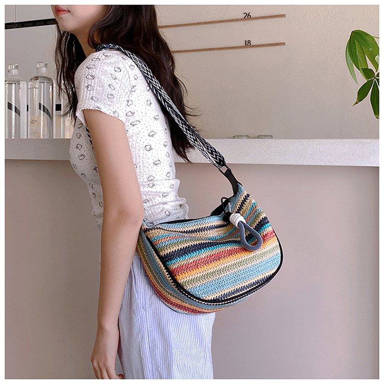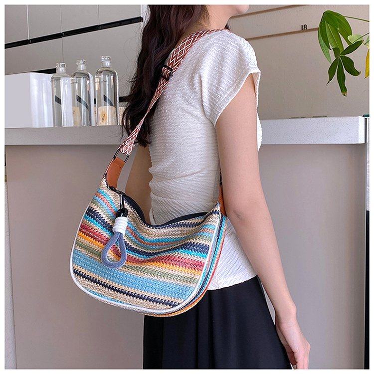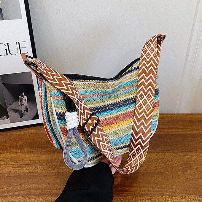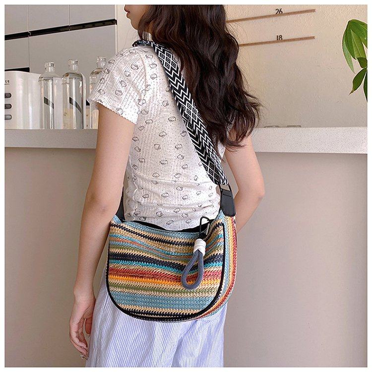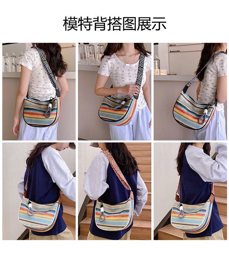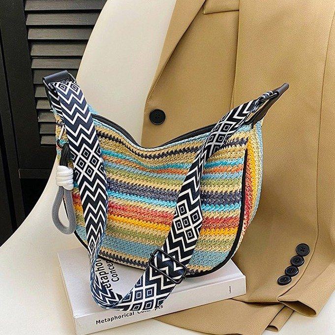 饺子包女宽肩带斜挎包2025新款包包波西米亚小众编织包民族风女包