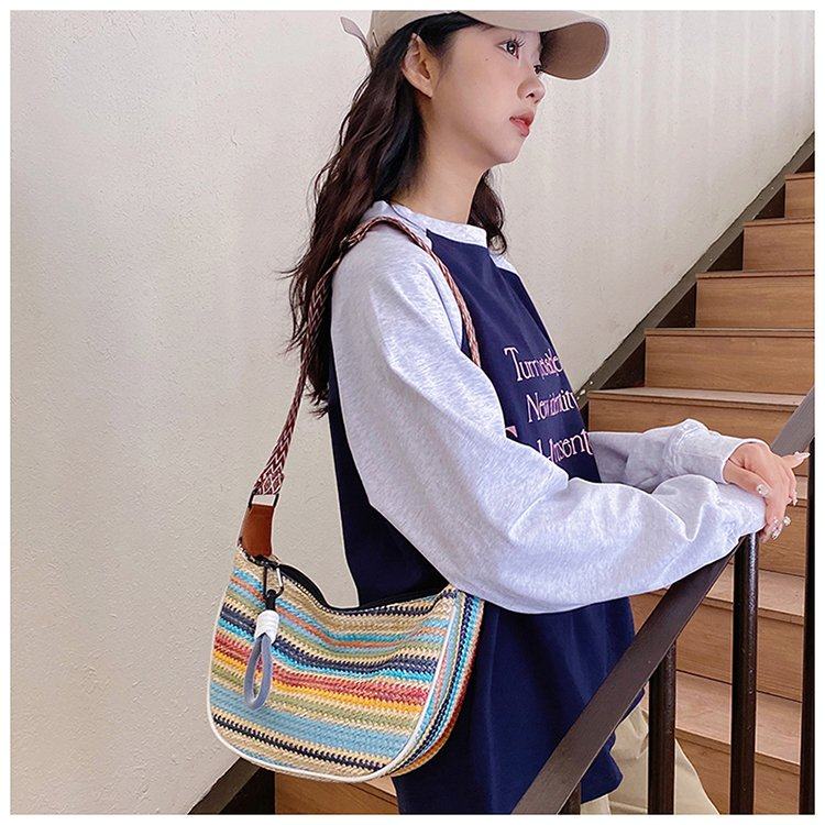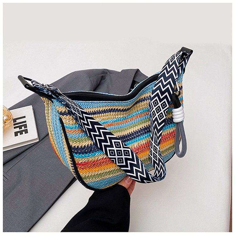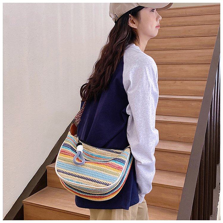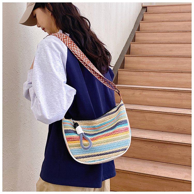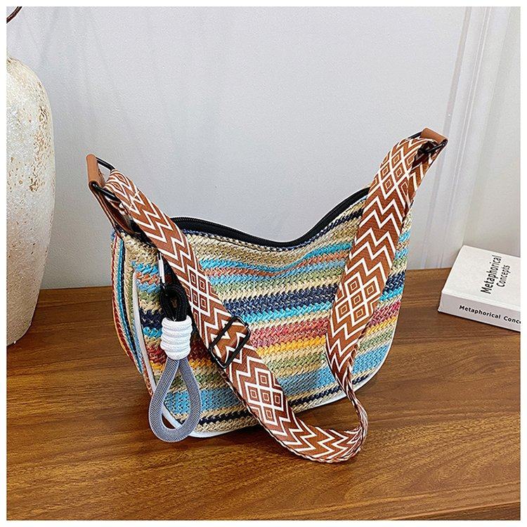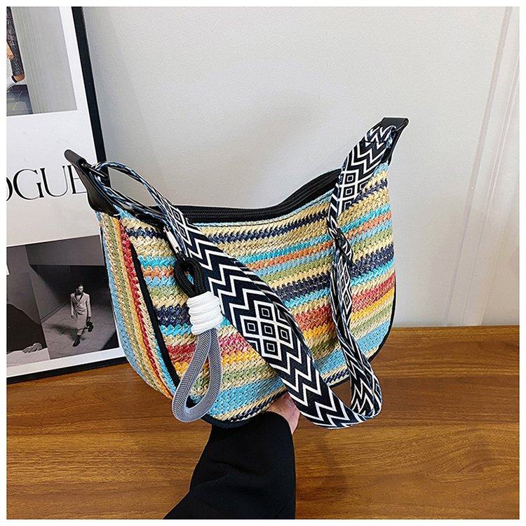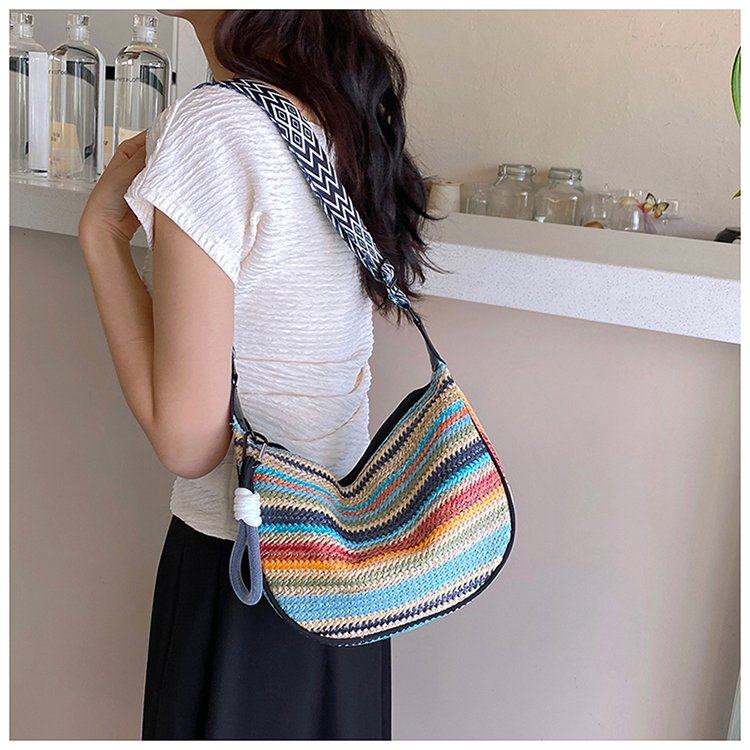 饺子包女宽肩带斜挎包2025新款包包波西米亚小众编织包民族风女包