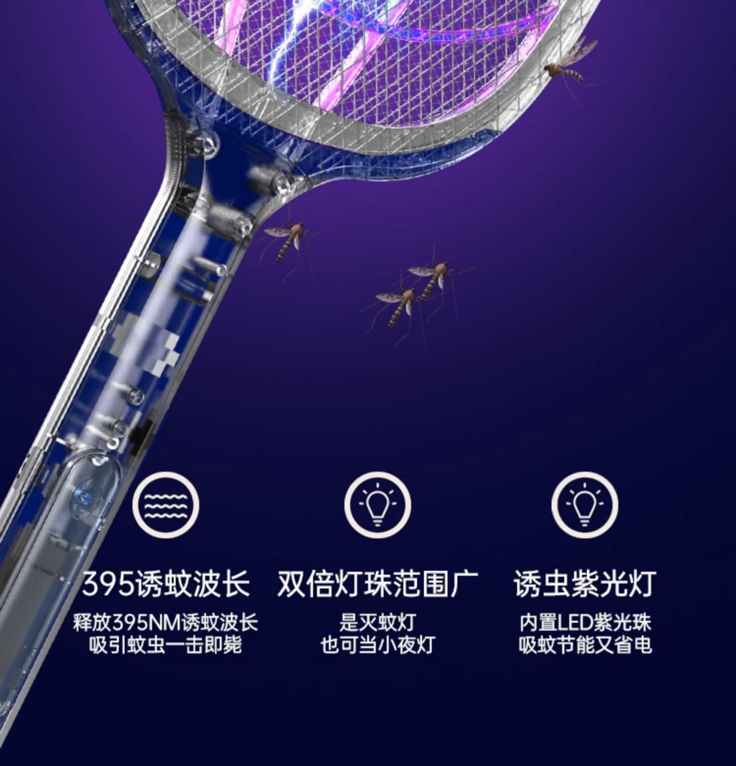 电蚊拍充电式家用强力锂电池灭蚊灯二合一驱蚊灭蚊神器打苍蝇拍