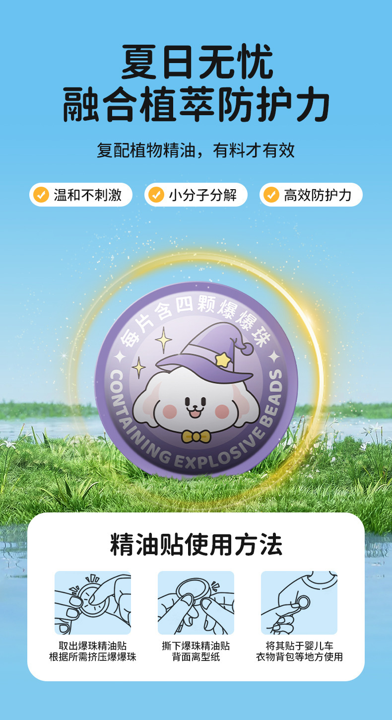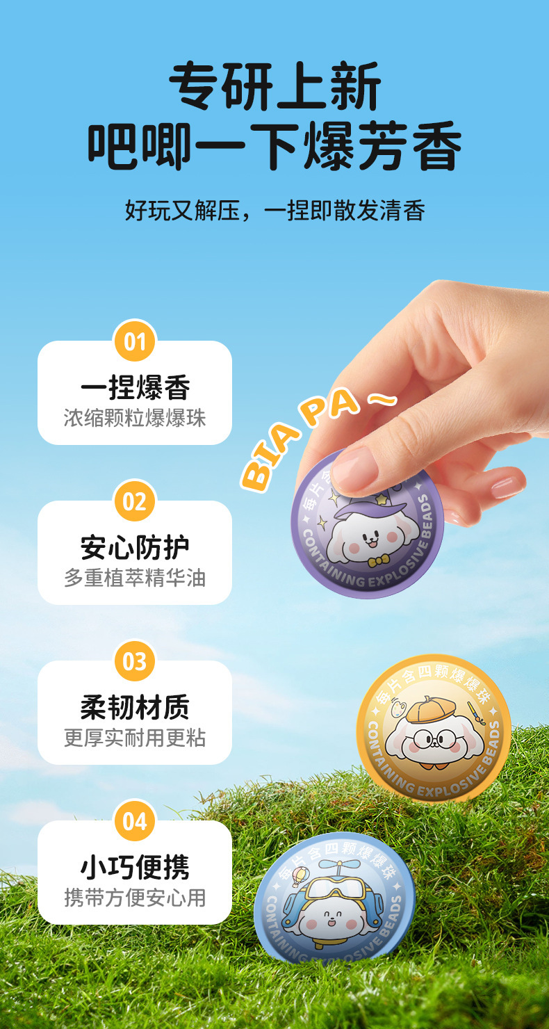 植物精油贴防叮贴植物精油爆珠贴宝宝成人户外卡通防蚊贴工厂批发