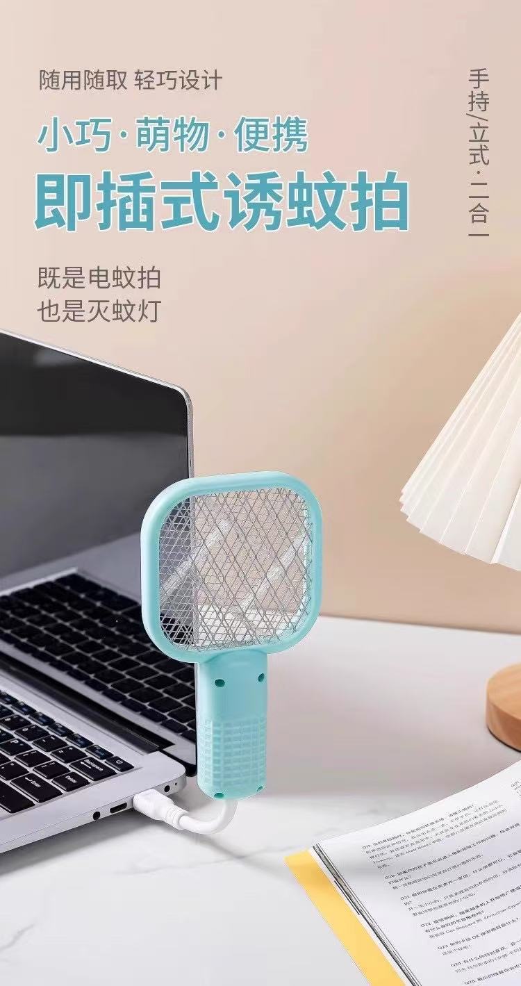 多功能迷你电蚊拍USB插电灭蚊家用户外便携式自动诱蚊拍驱蚊神器