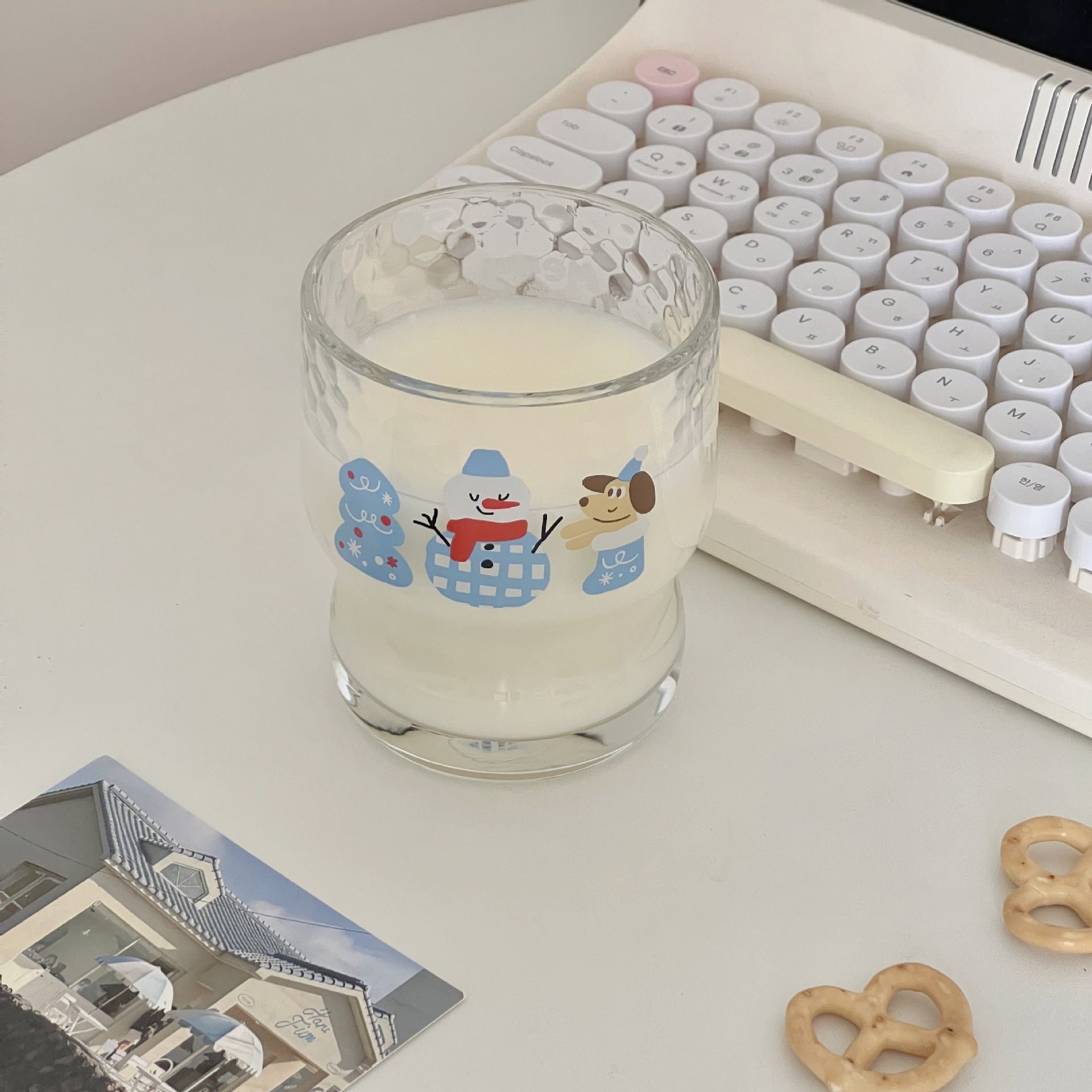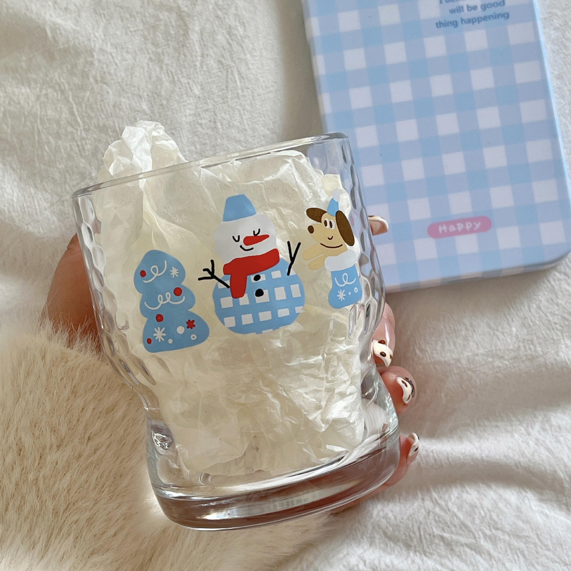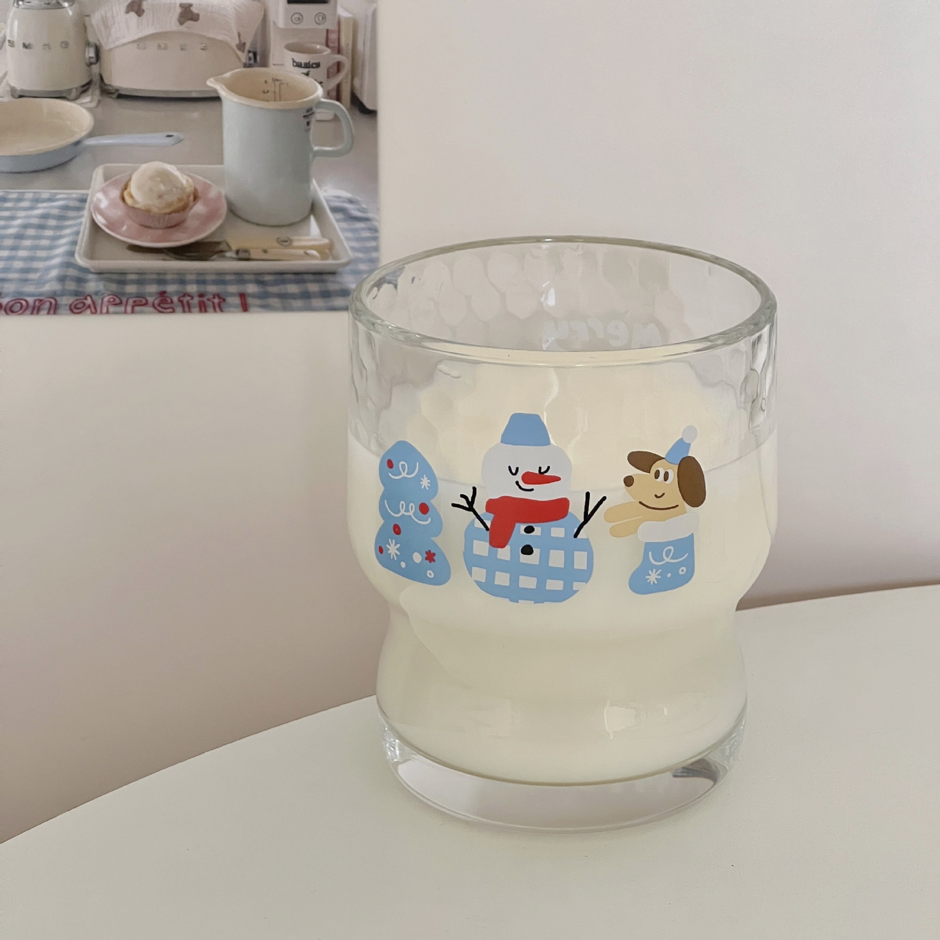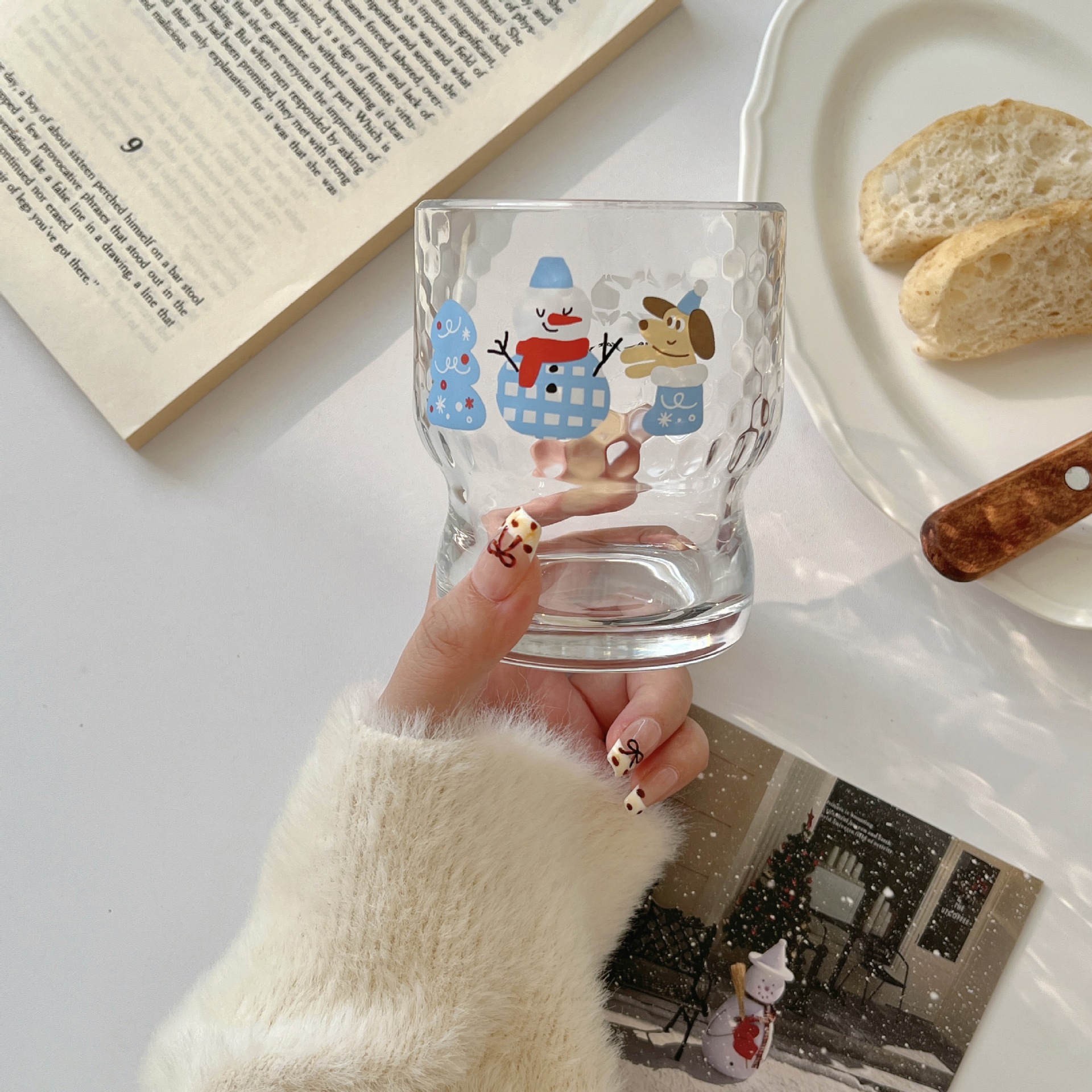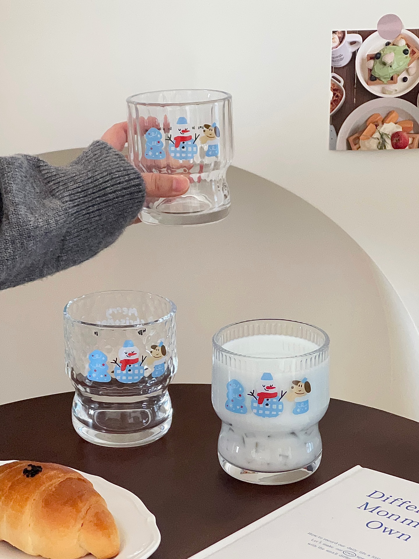 卡通单层情侣礼物小狗玻璃杯创意果汁杯牛奶杯咖啡杯早餐雪人杯子