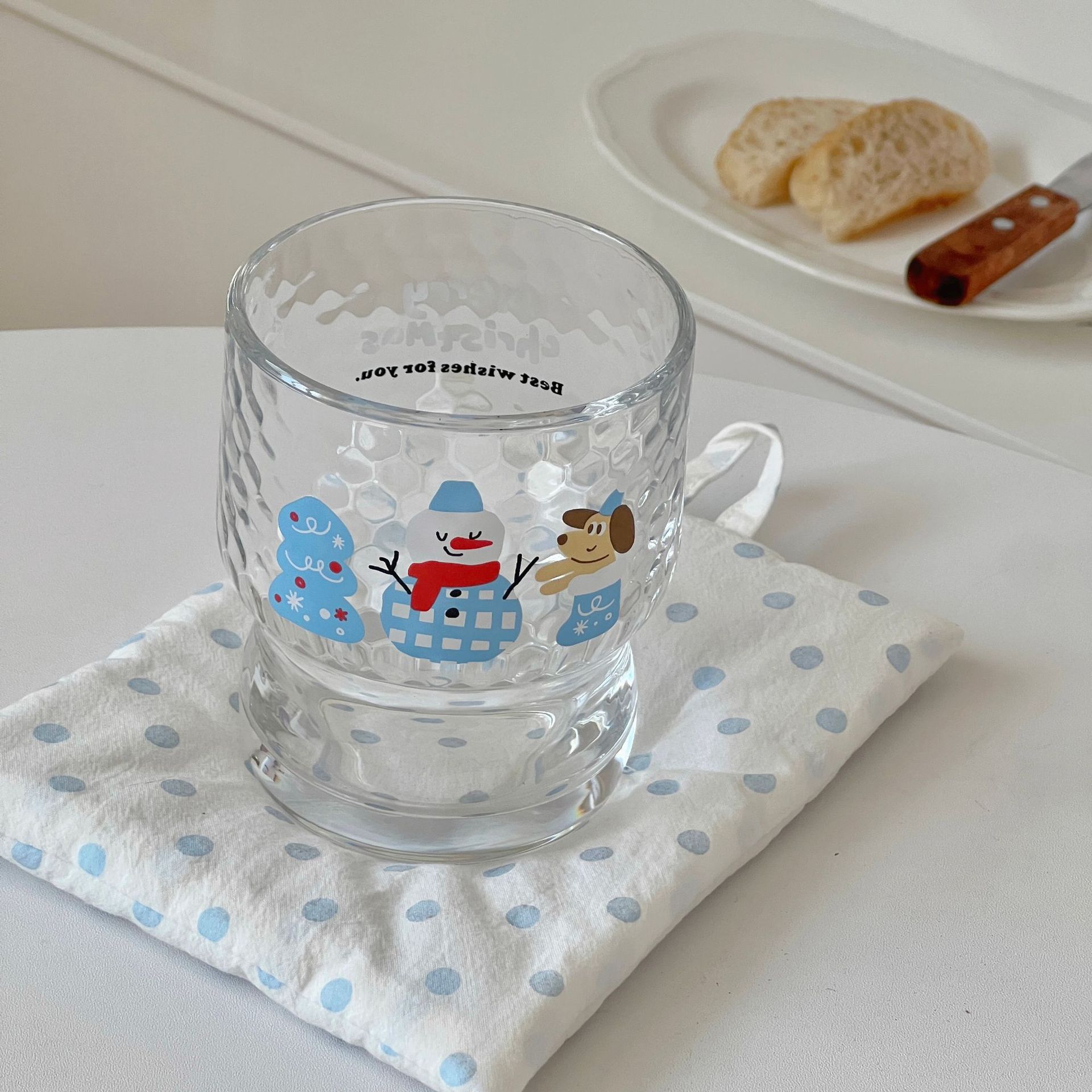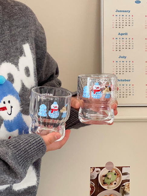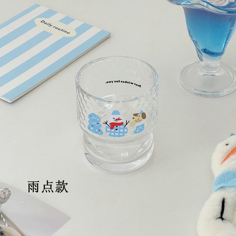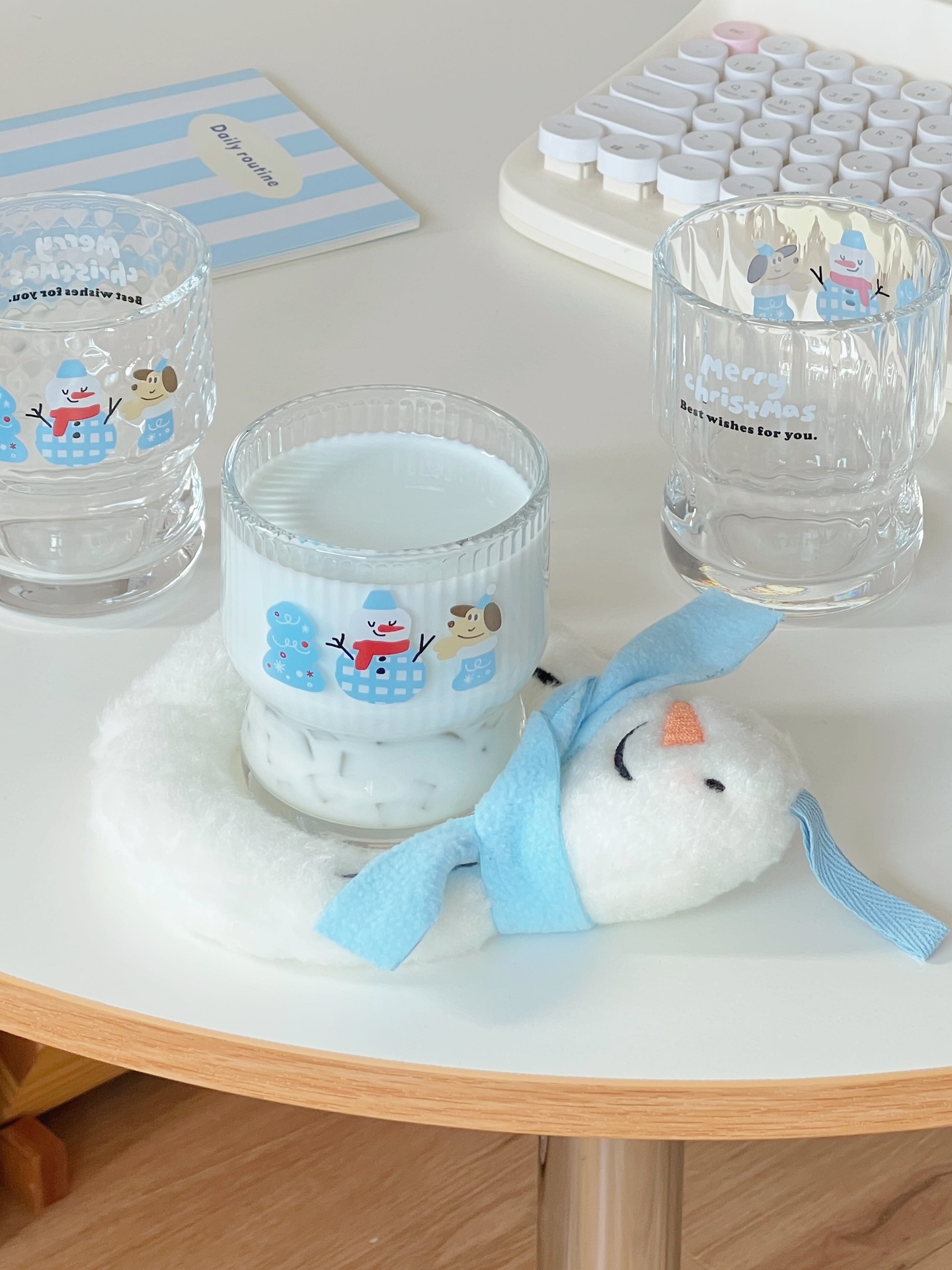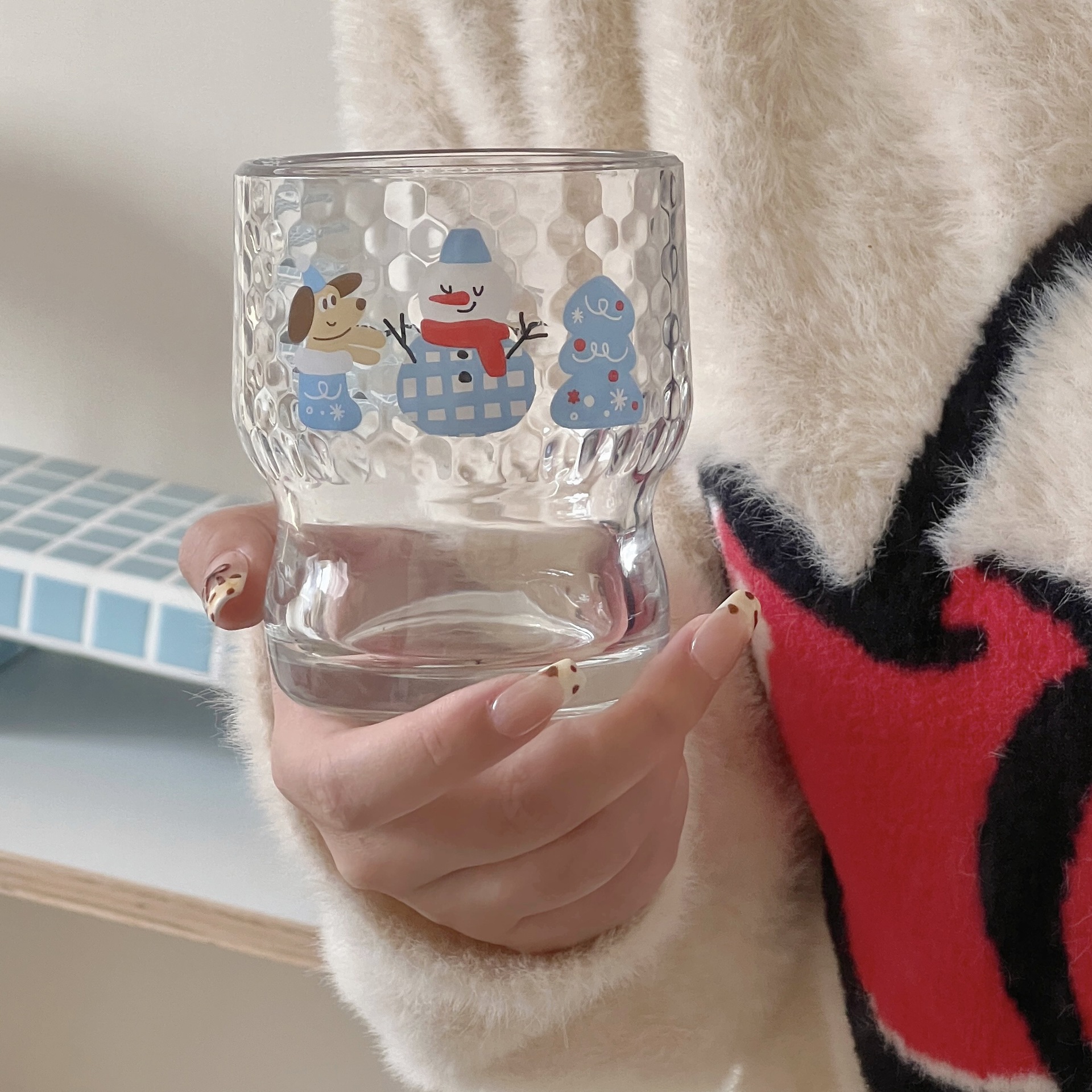 卡通单层情侣礼物小狗玻璃杯创意果汁杯牛奶杯咖啡杯早餐雪人杯子