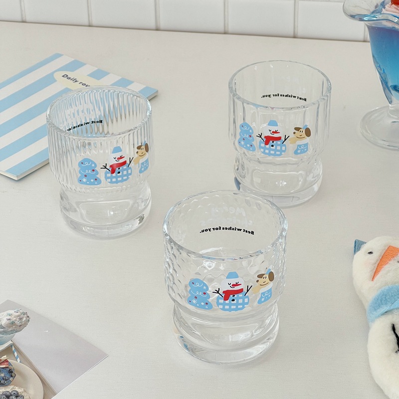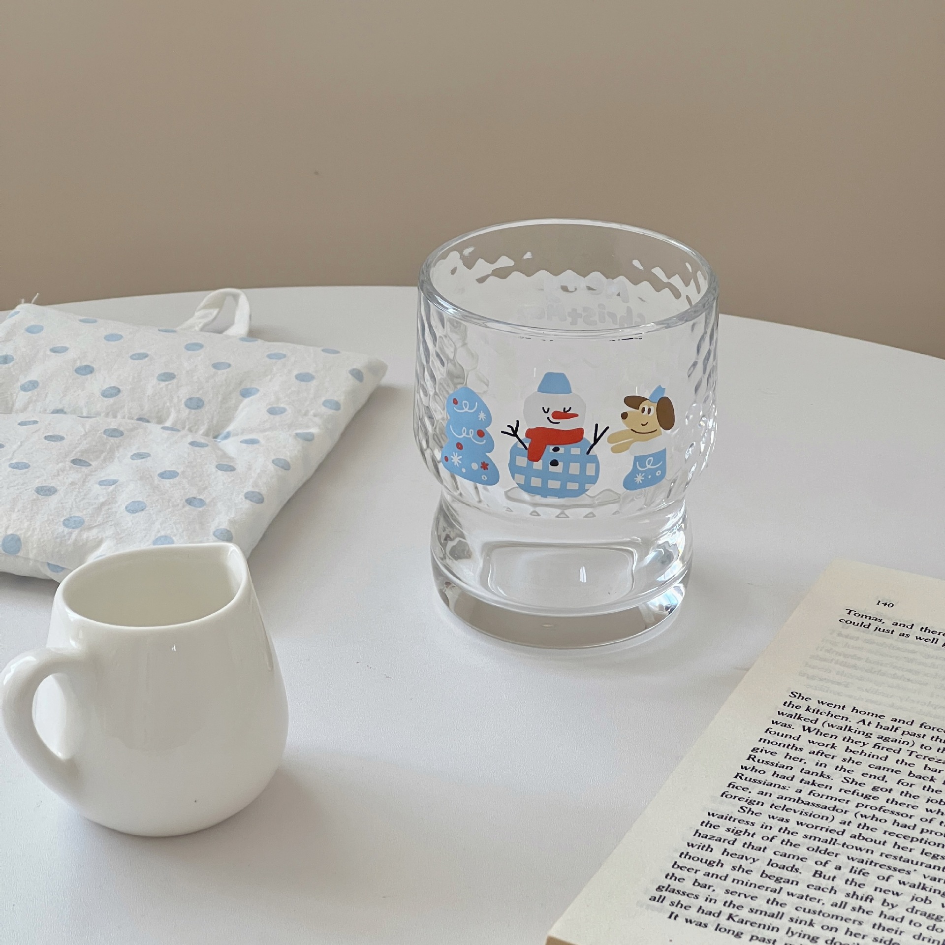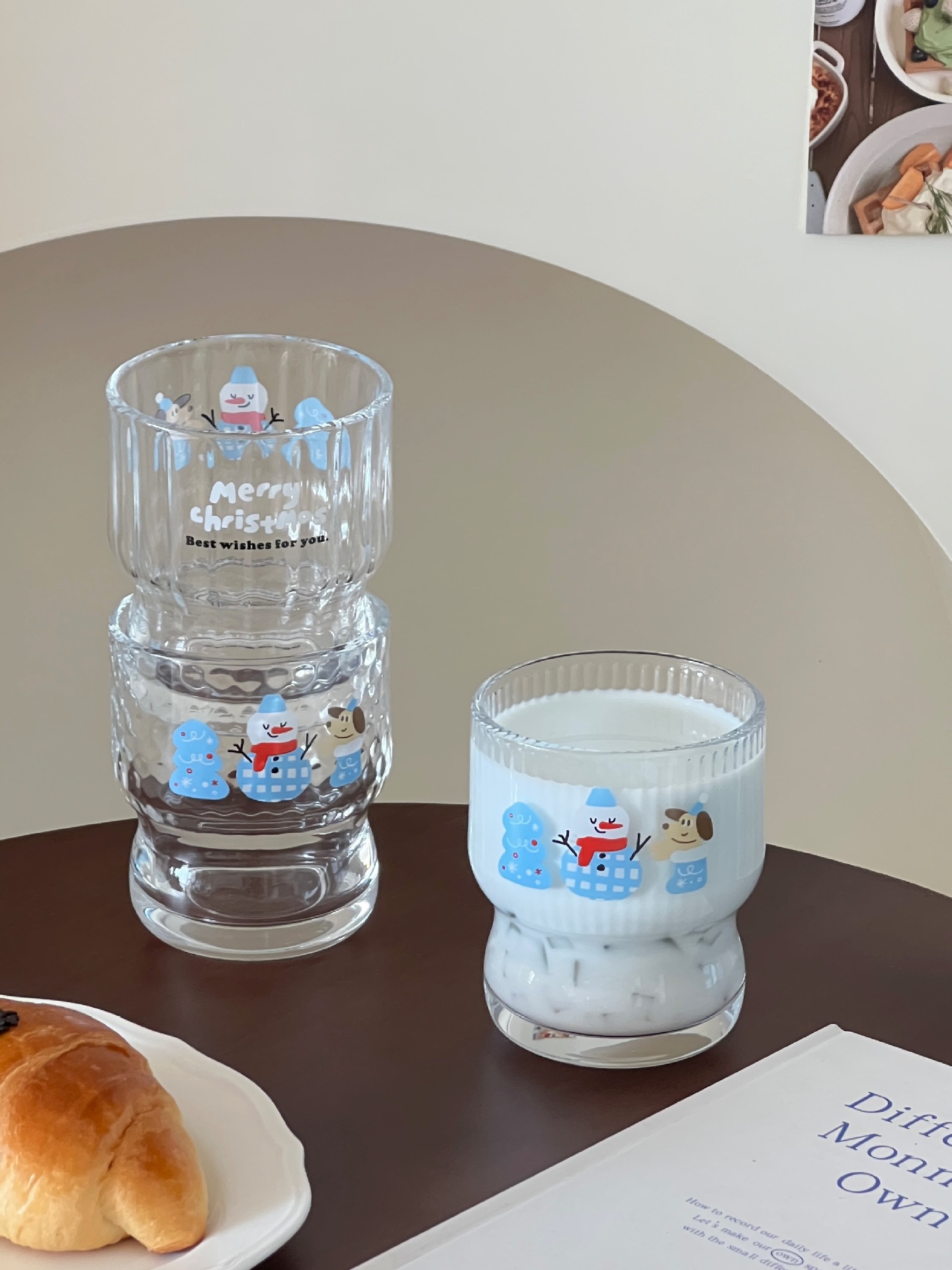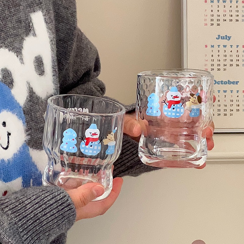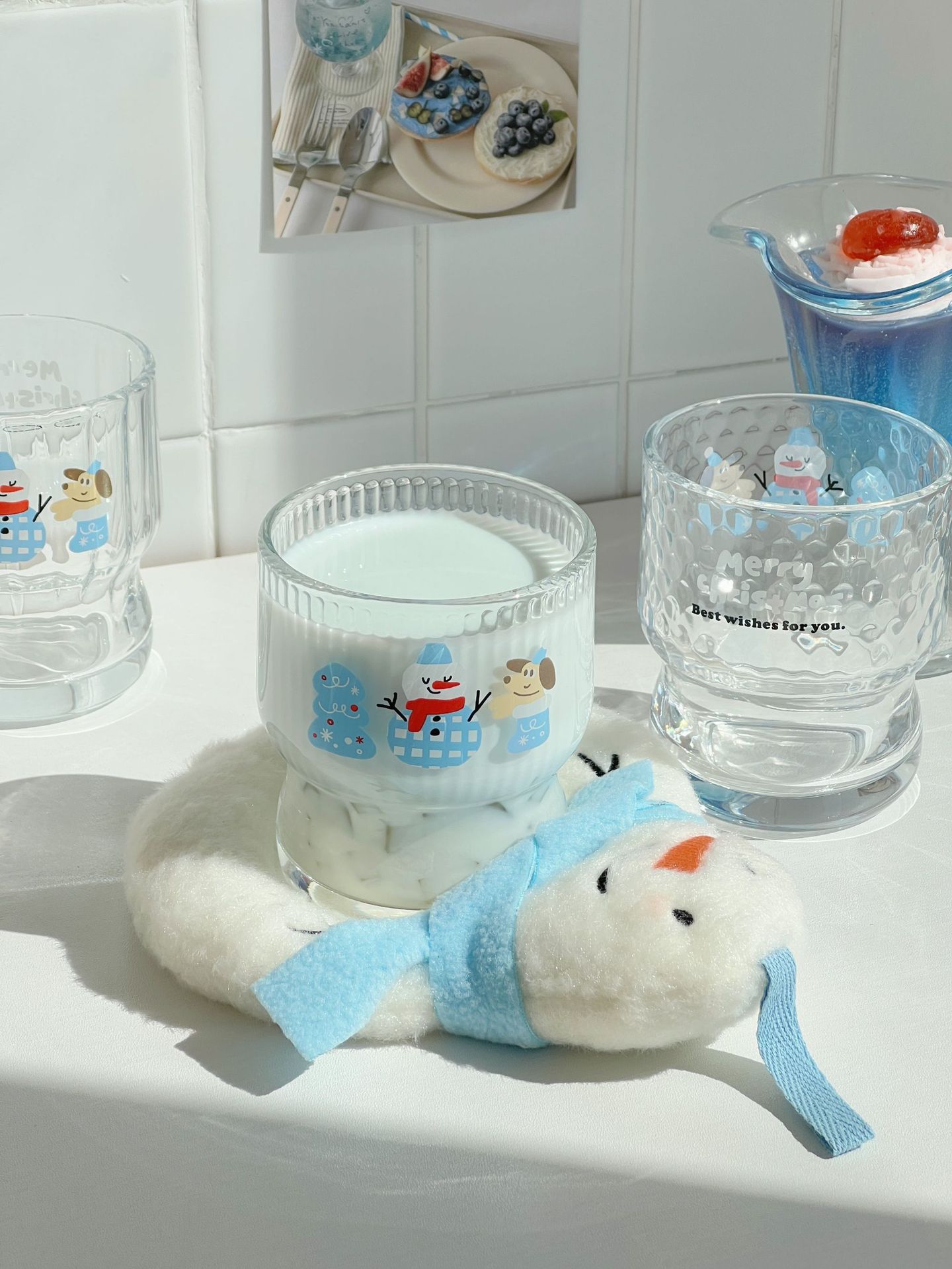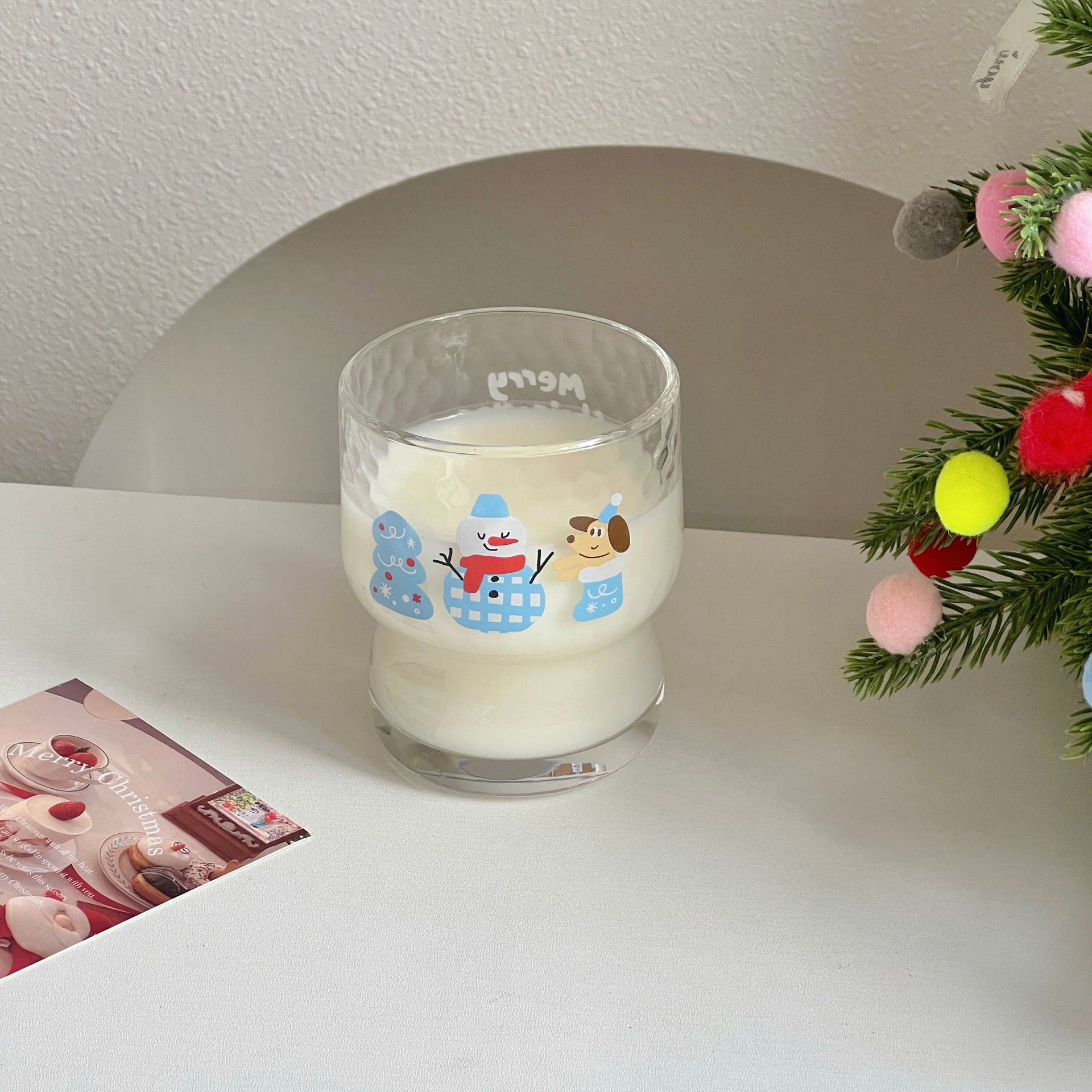 卡通单层情侣礼物小狗玻璃杯创意果汁杯牛奶杯咖啡杯早餐雪人杯子