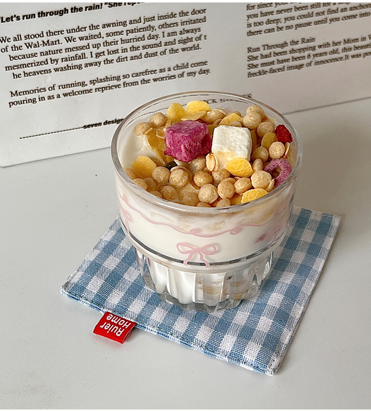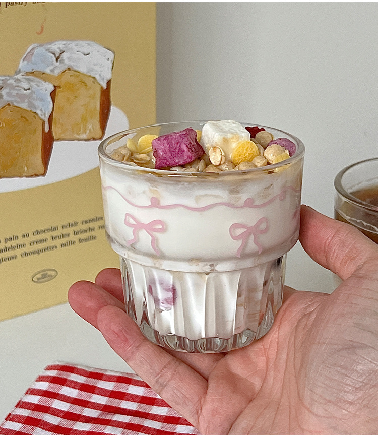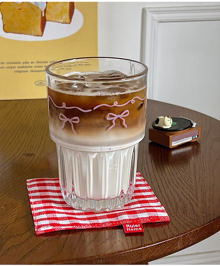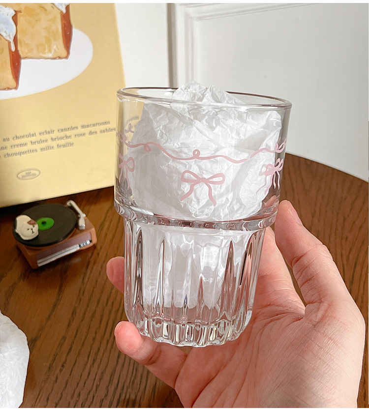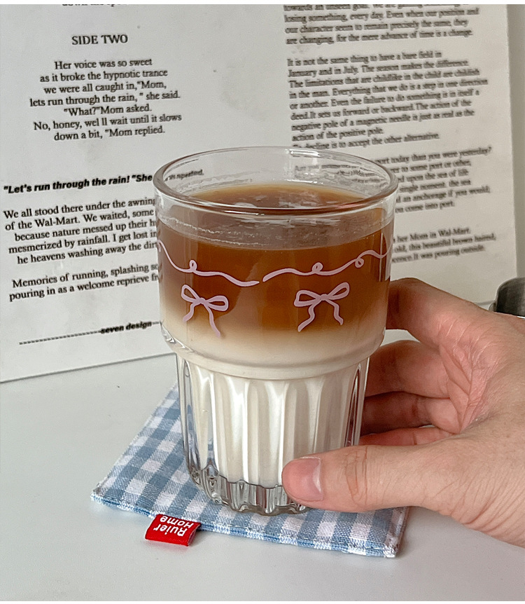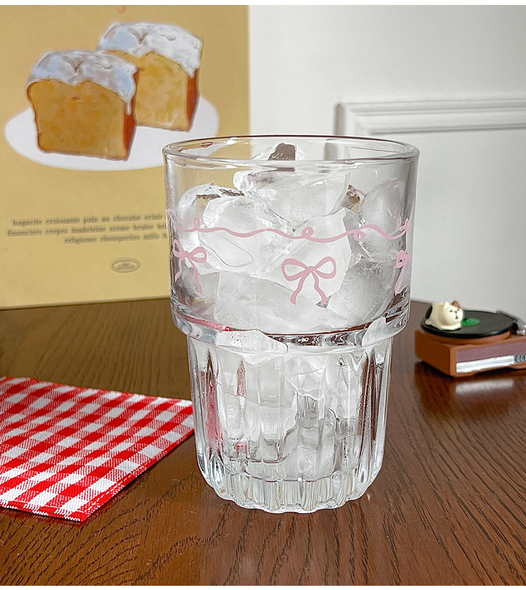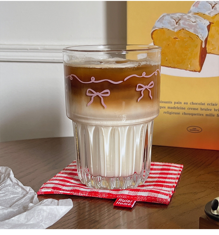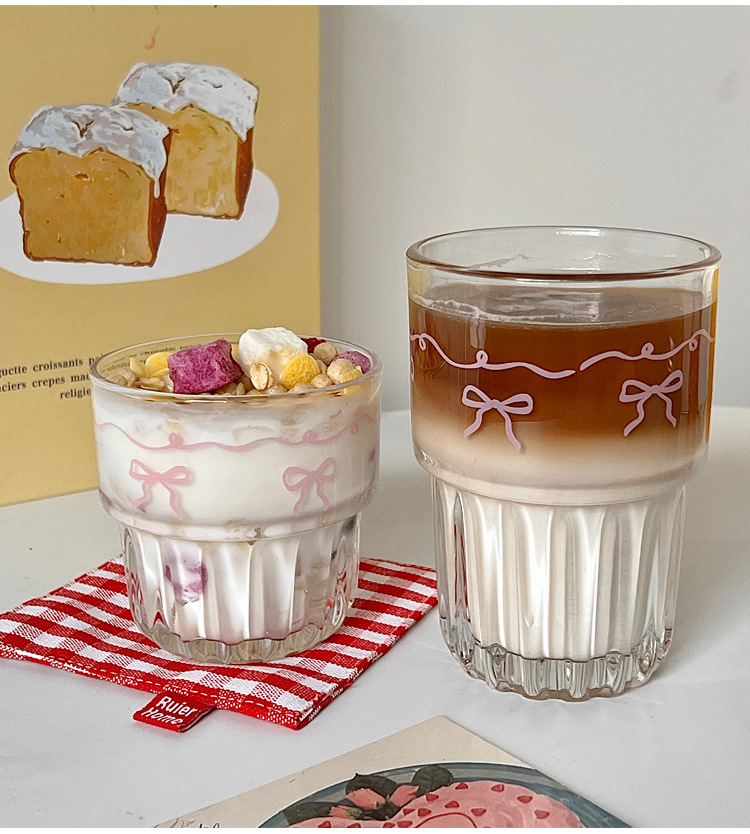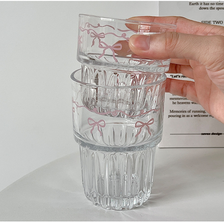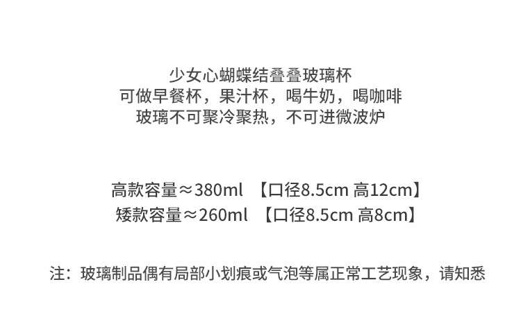 卡通ins风粉蝴蝶结玻璃杯少女心冷萃果汁杯牛奶咖啡杯早餐杯子