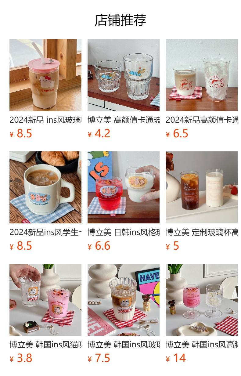 博立美卡通ins风玻璃冷萃咖啡杯萌宠水杯玻璃杯单层情侣喝水杯子