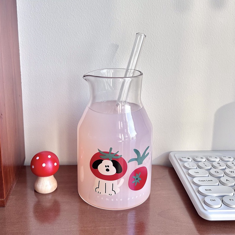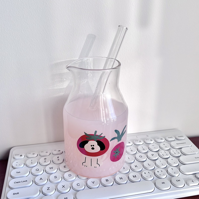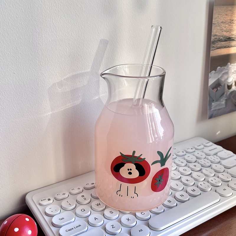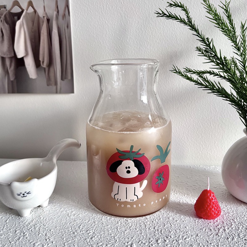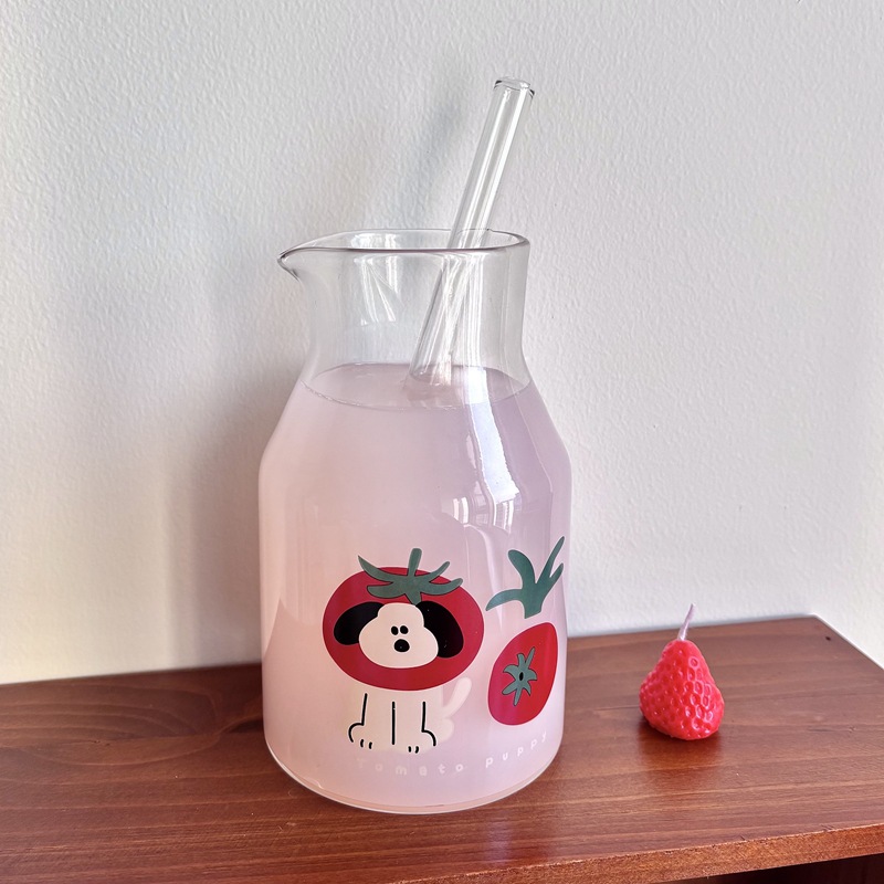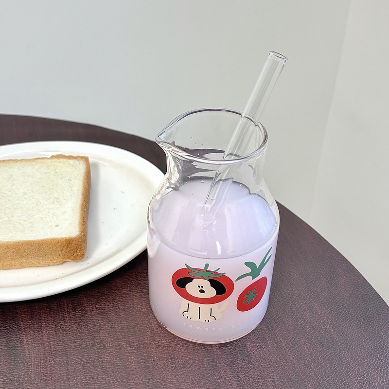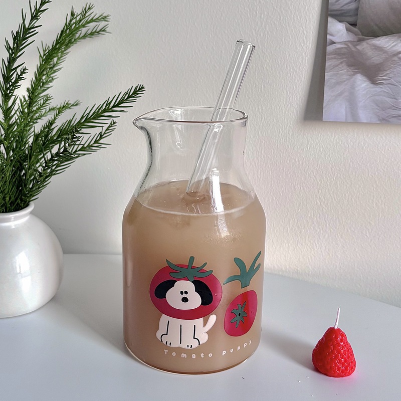 自制番茄小狗玻璃水具一人独饮水具套装牛奶杯玻璃杯吸管杯子耐热
