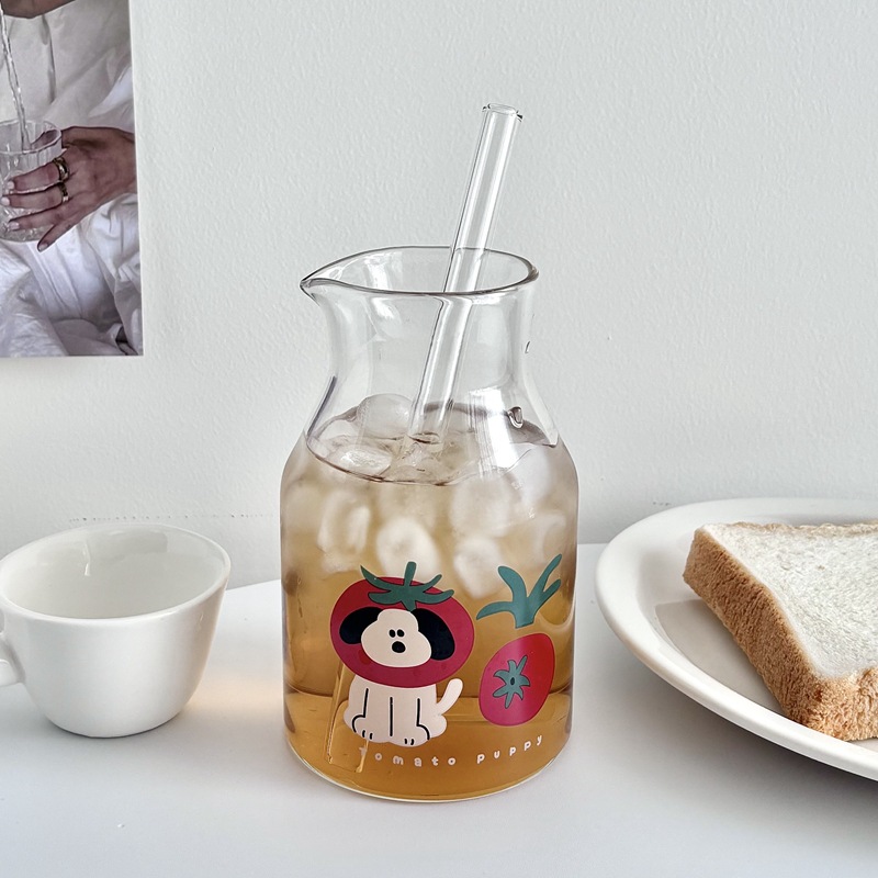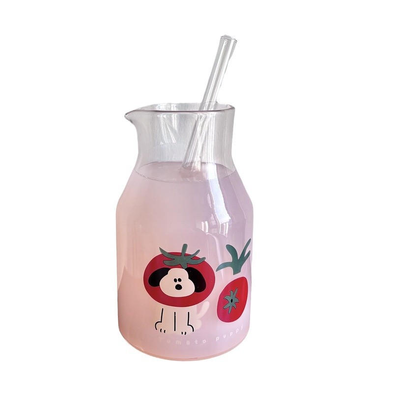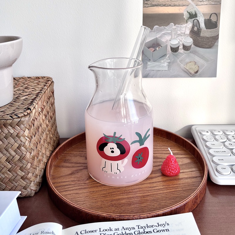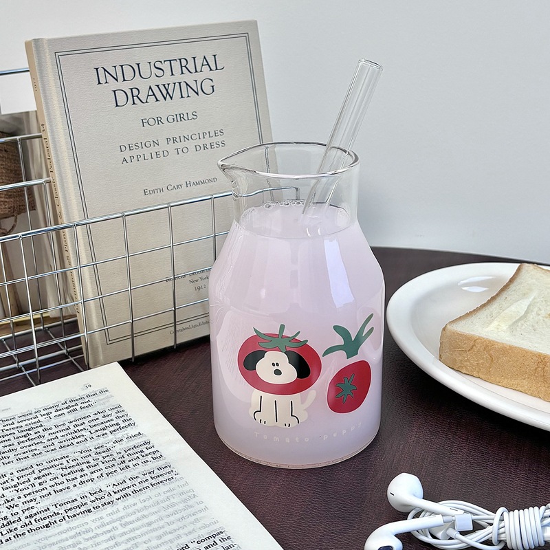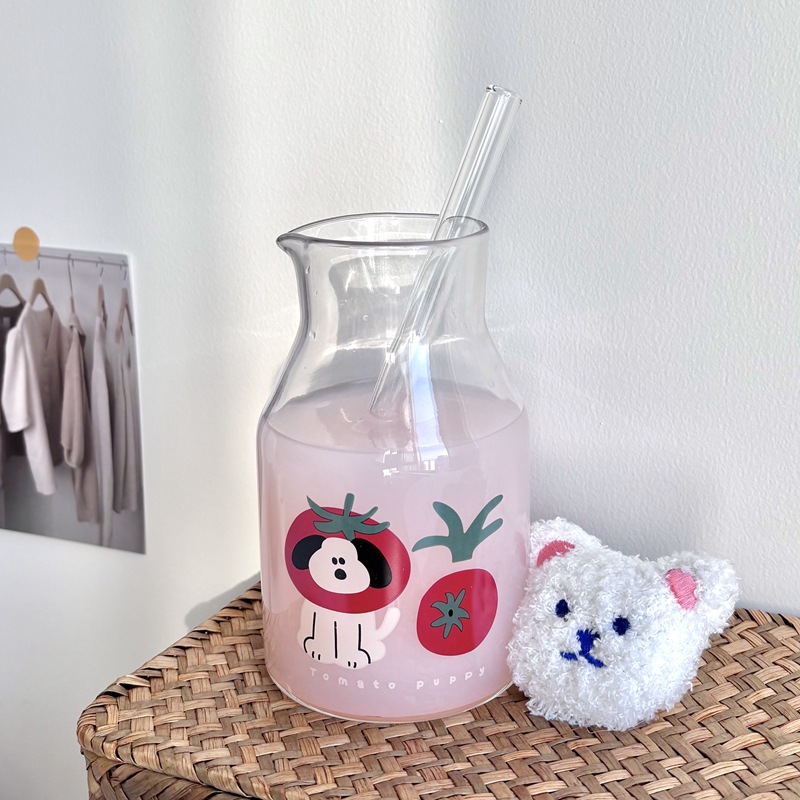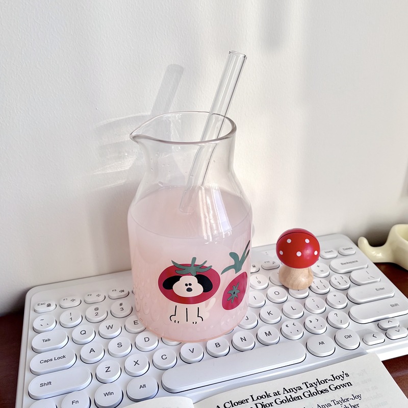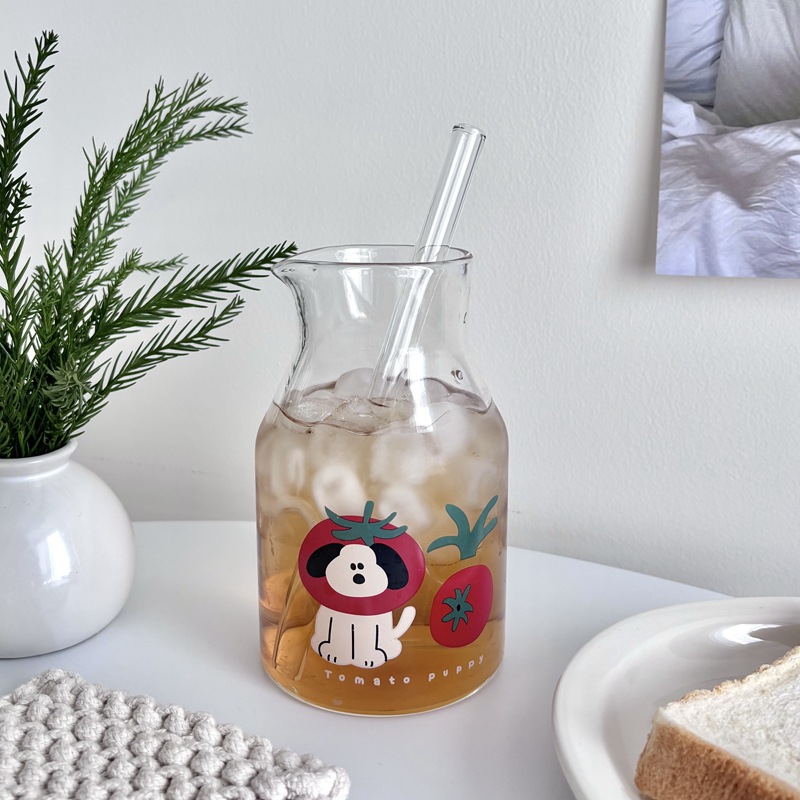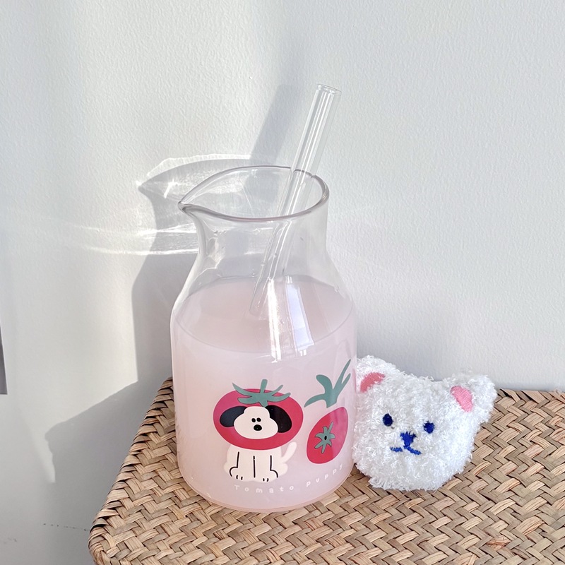 自制番茄小狗玻璃水具一人独饮水具套装牛奶杯玻璃杯吸管杯子耐热