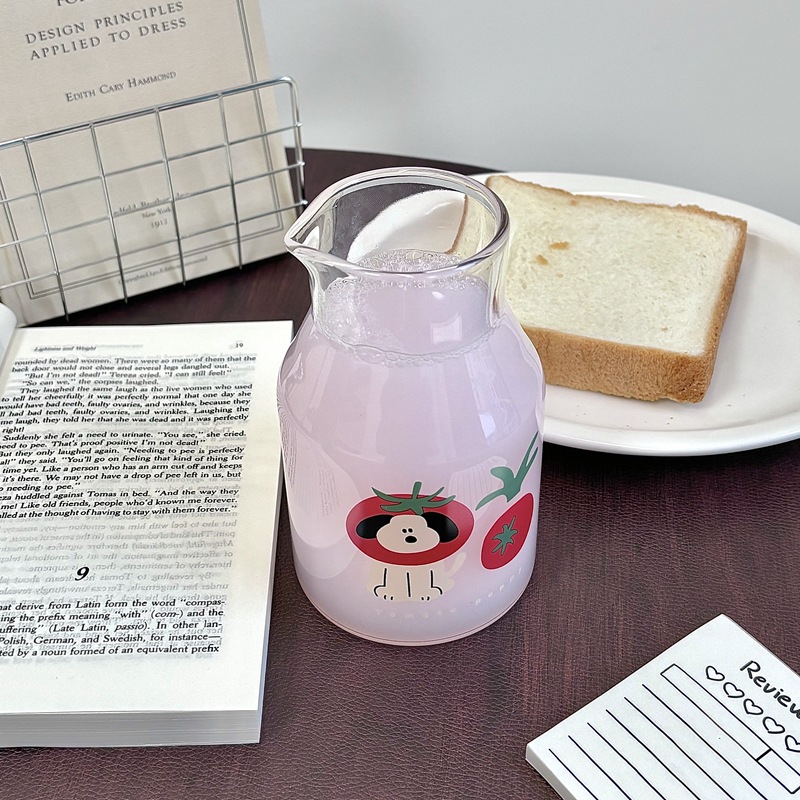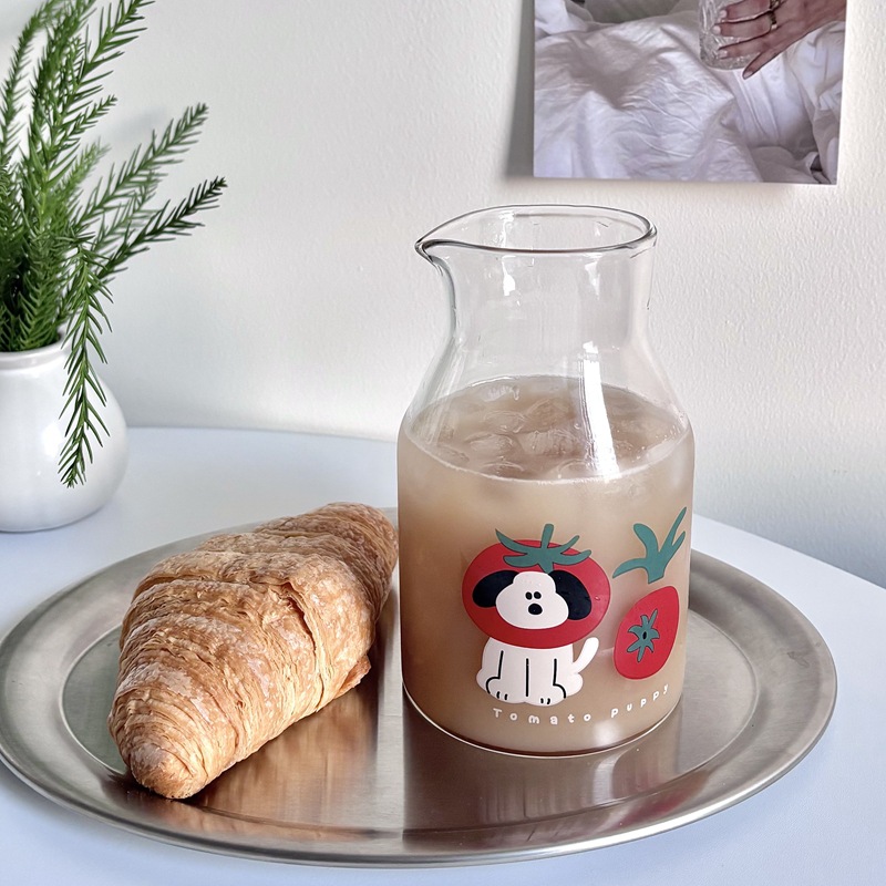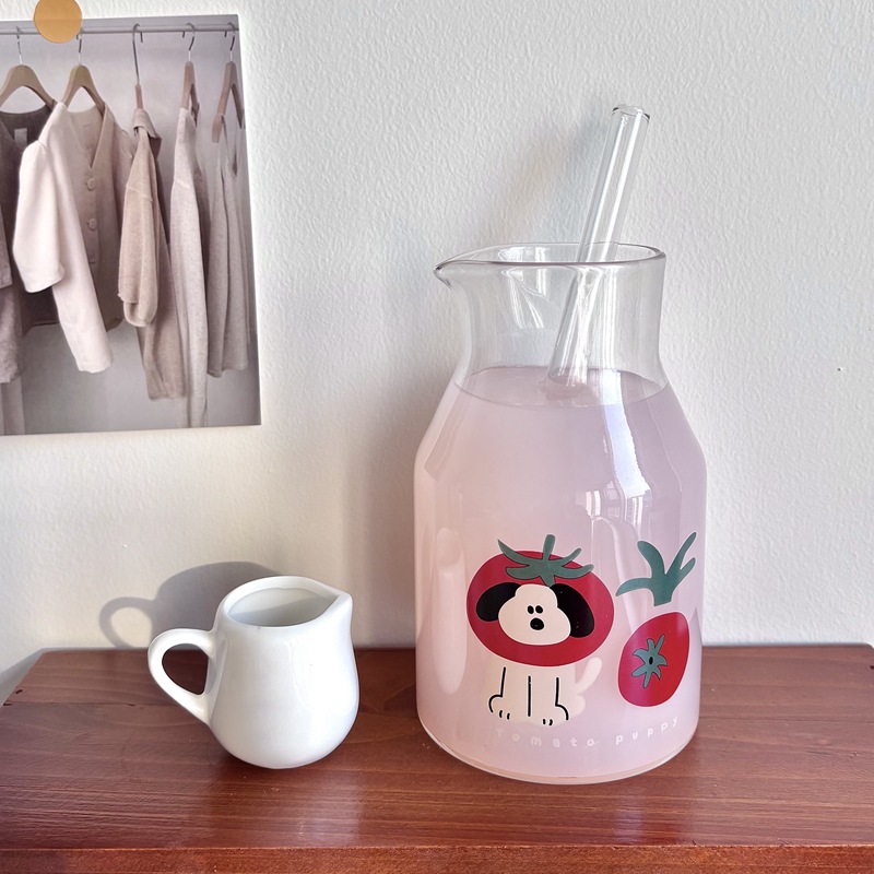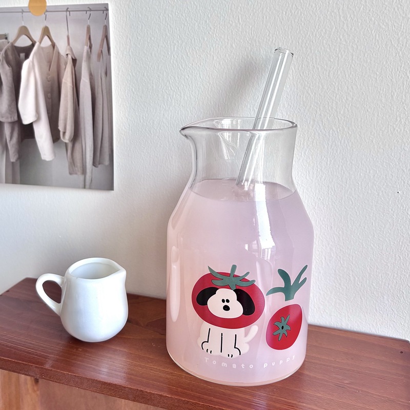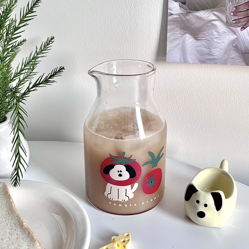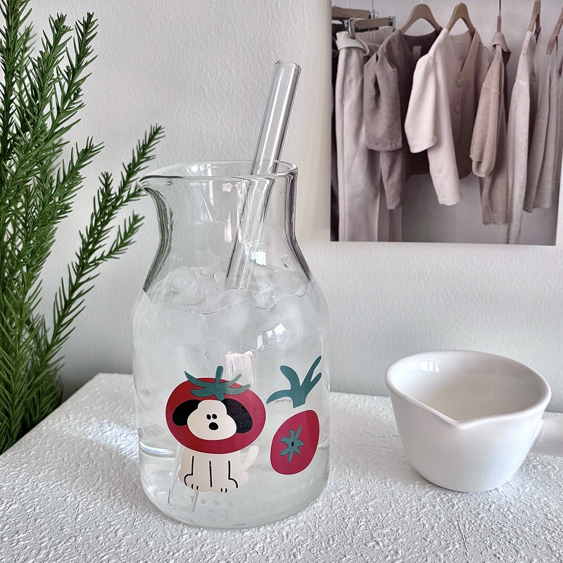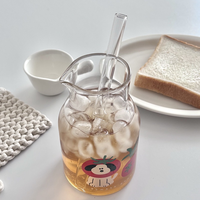 自制番茄小狗玻璃水具一人独饮水具套装牛奶杯玻璃杯吸管杯子耐热