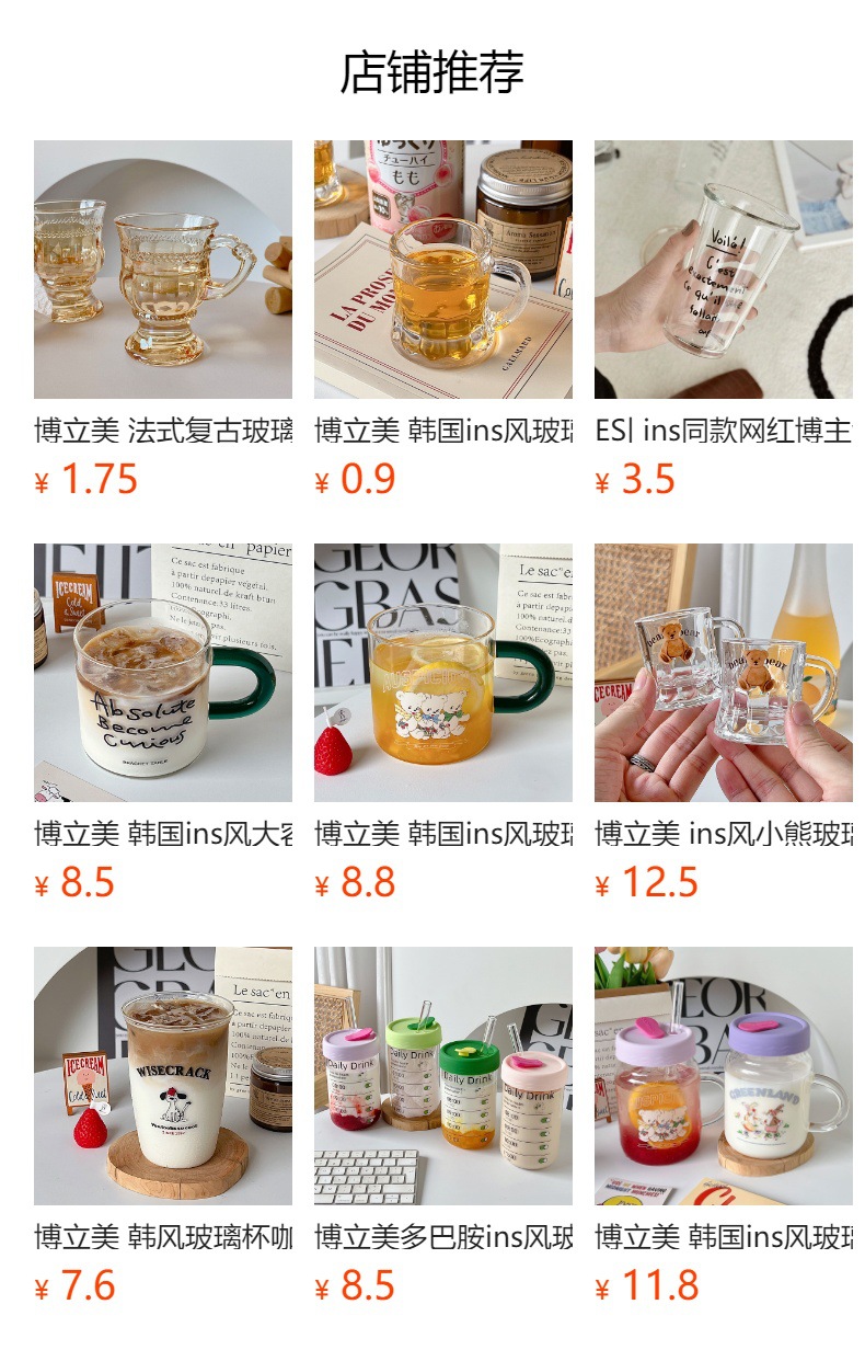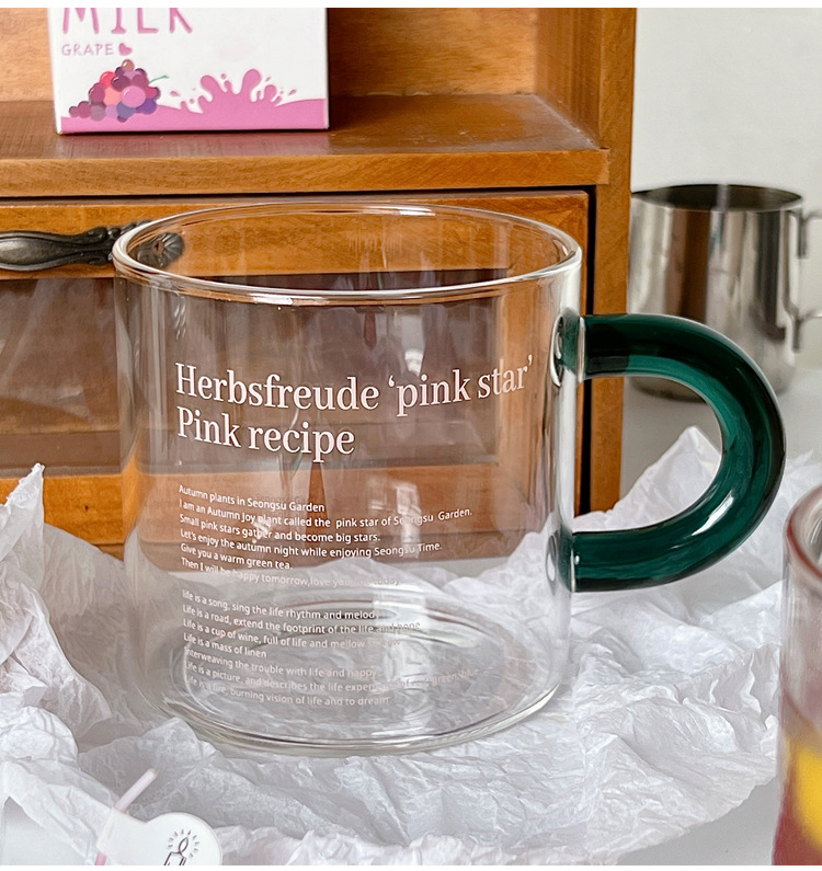 博立美 高颜值ins风玻璃牛奶杯少女心水杯玻璃杯大容量喝水杯子