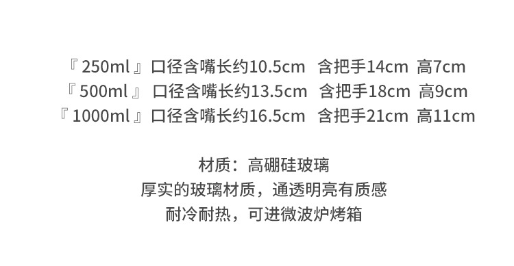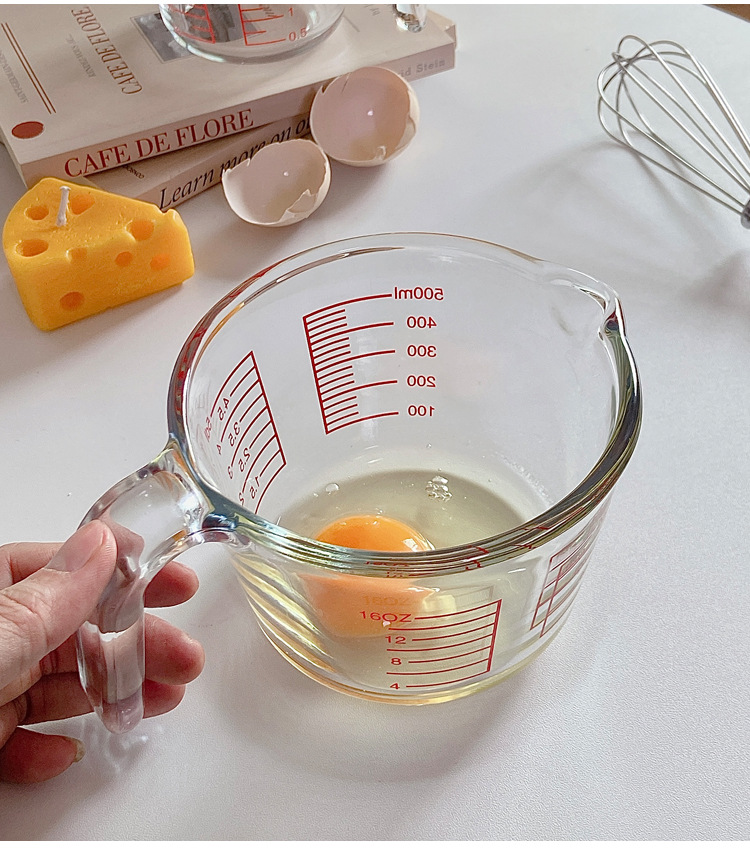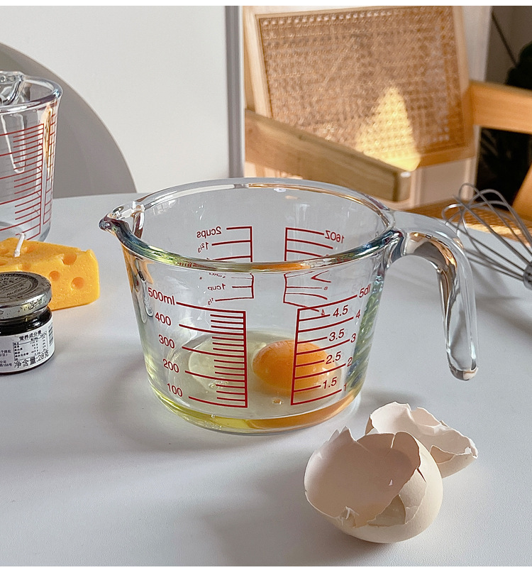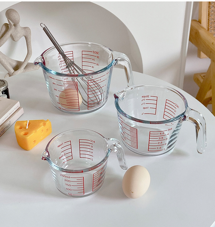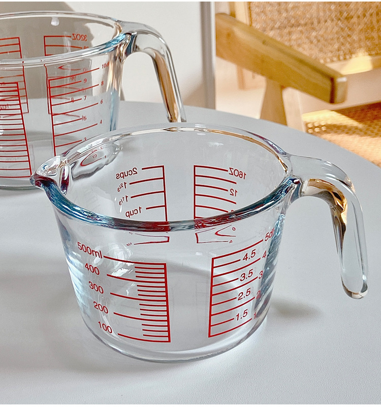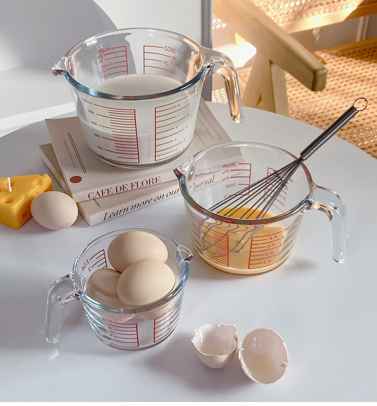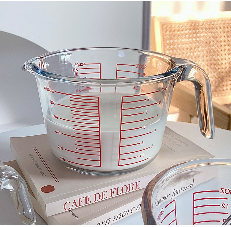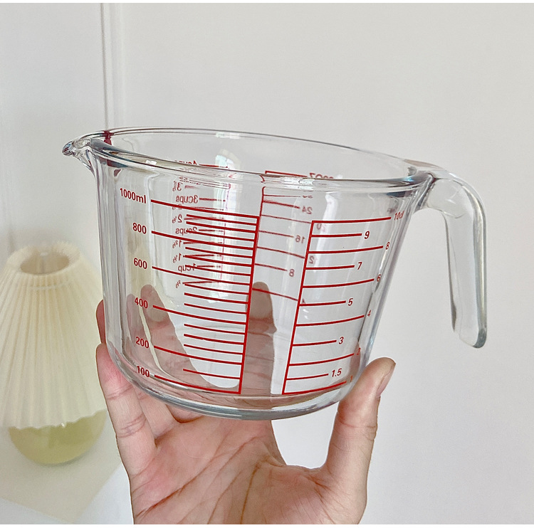 博立美 高硼硅家用玻璃量杯刻度大容量烘焙可微波带把加厚透明