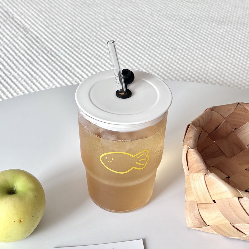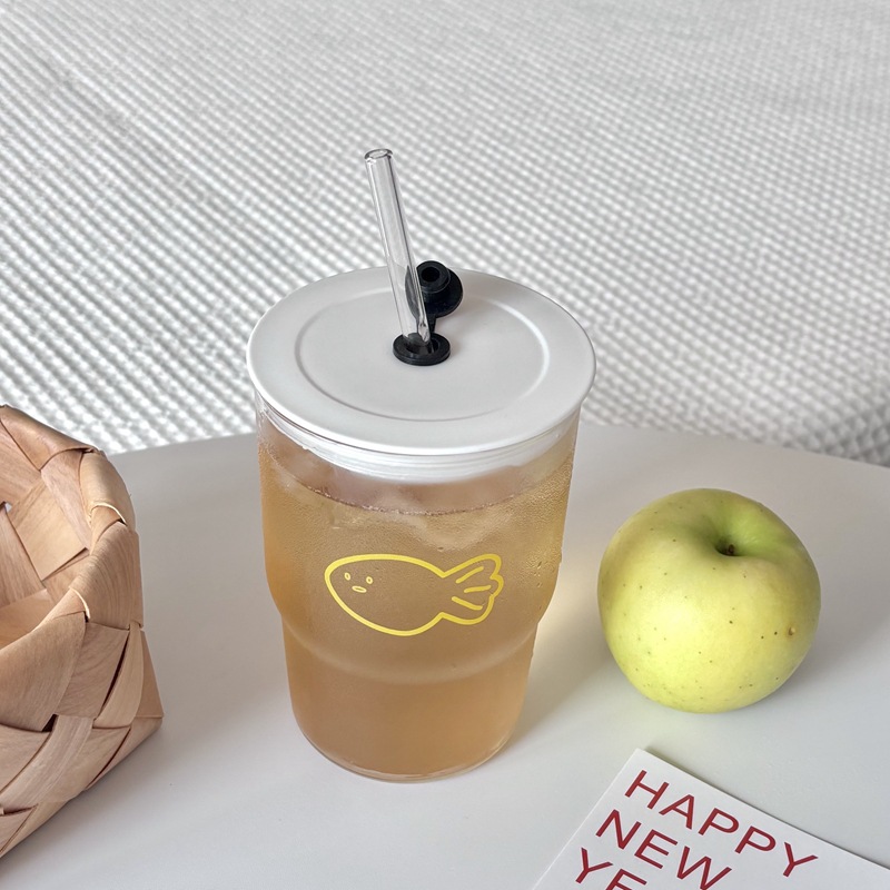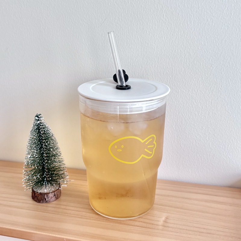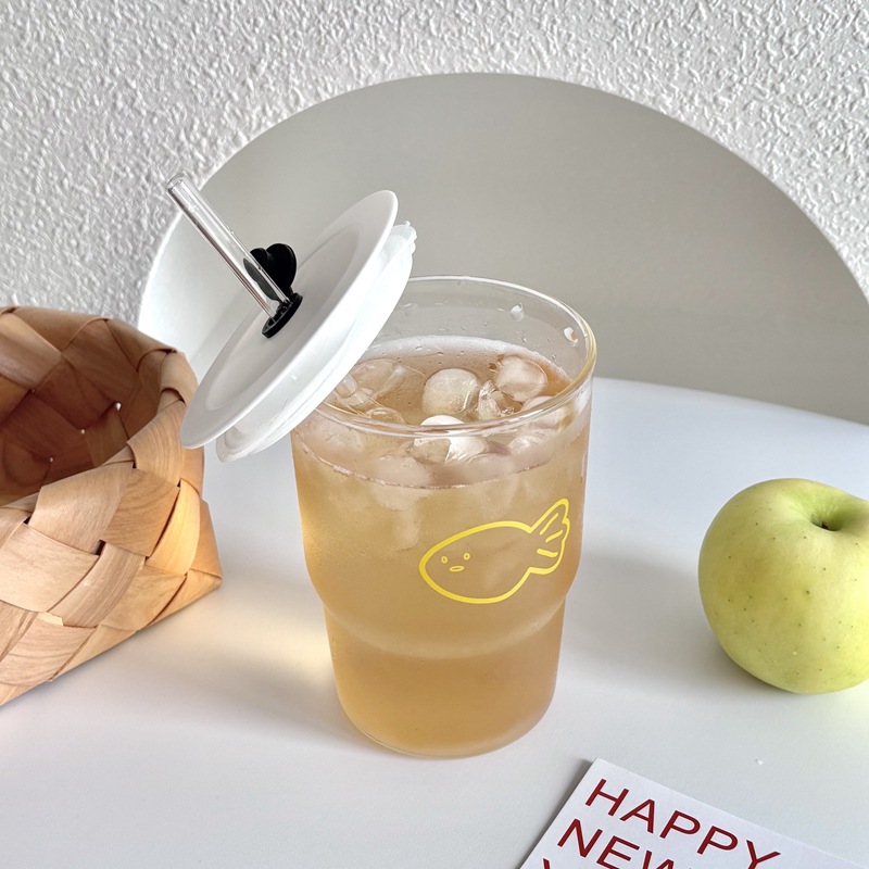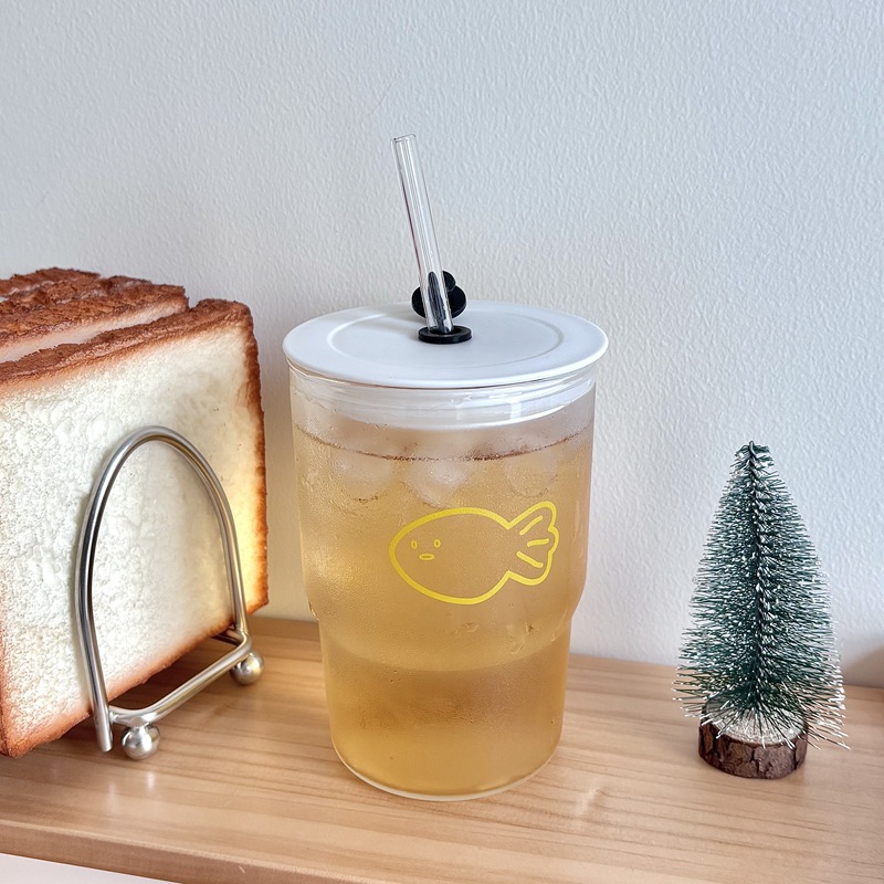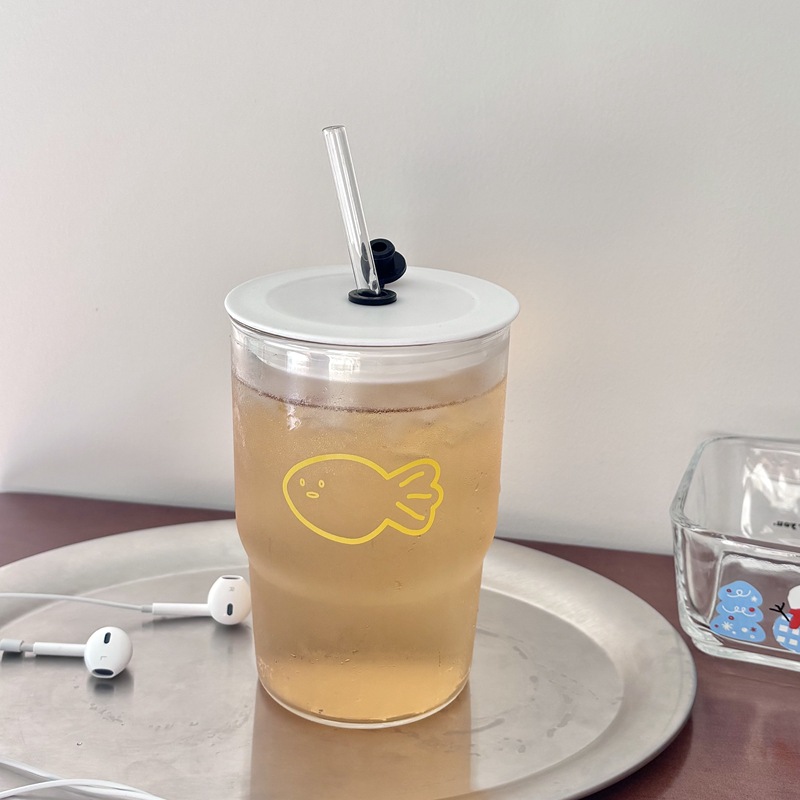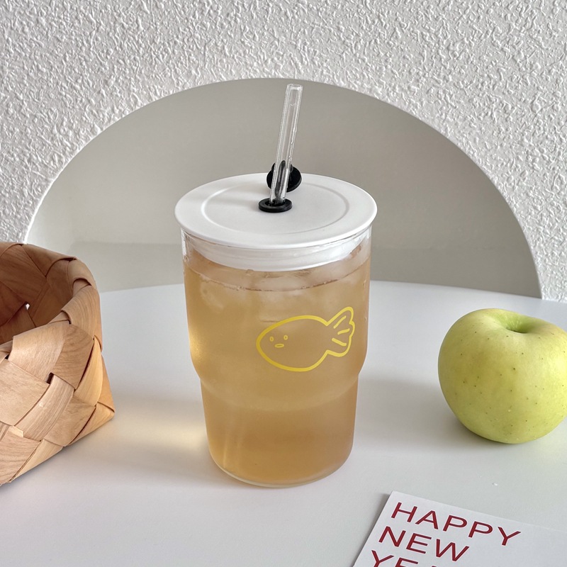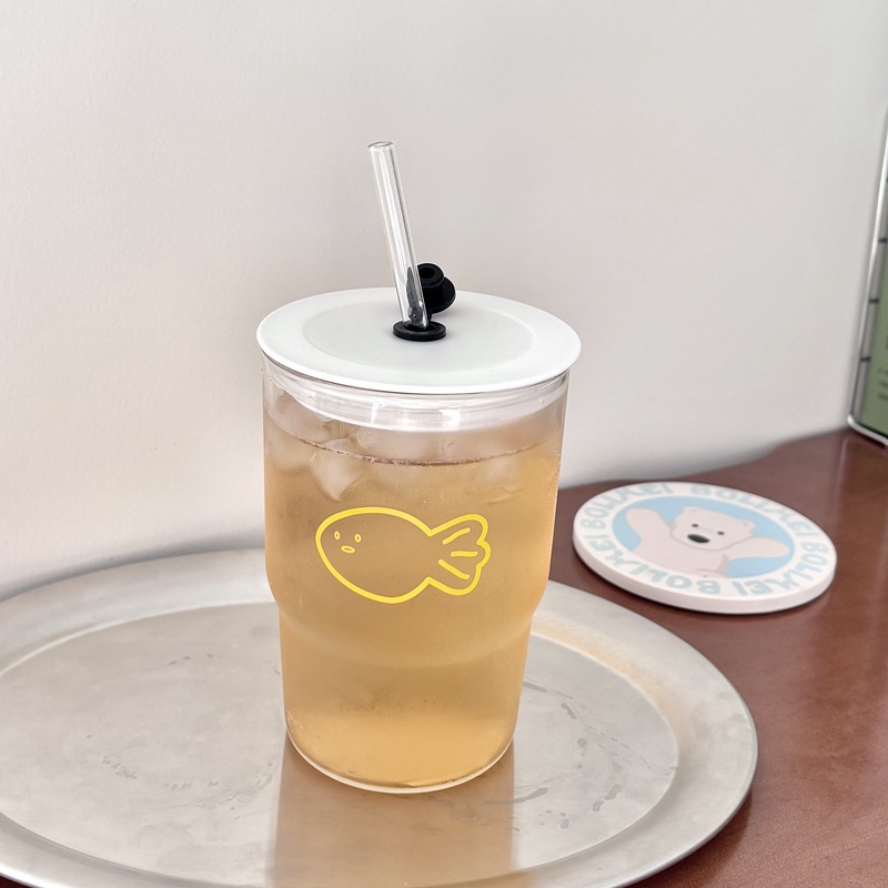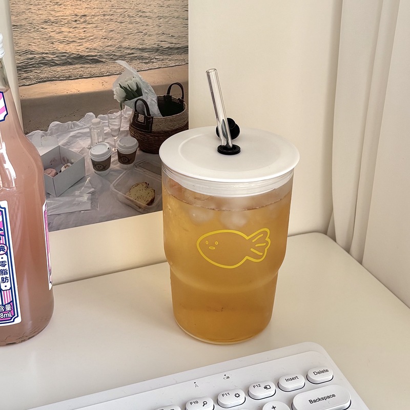 博立美 日韩博主ins风高硼硅玻璃吸管杯子少女心水杯学生喝水杯子
