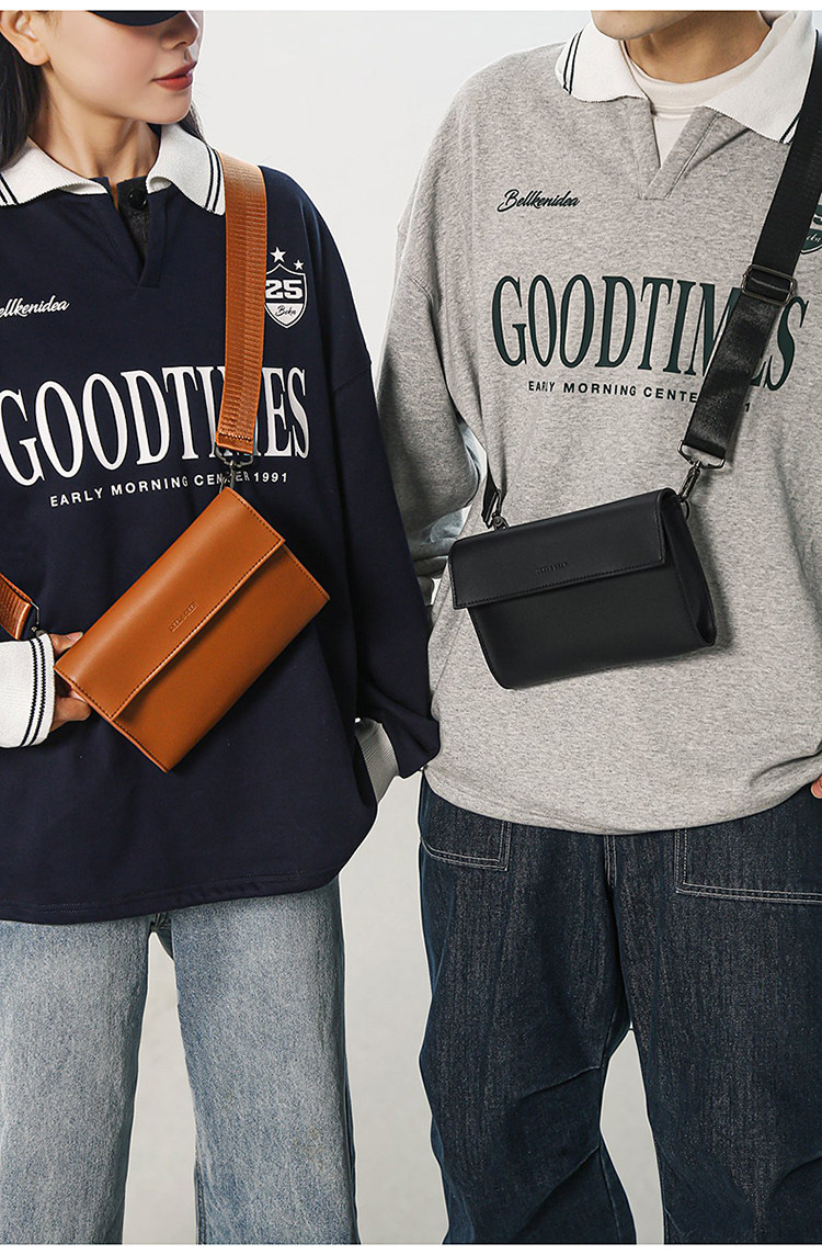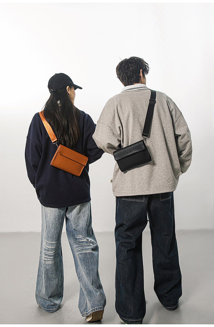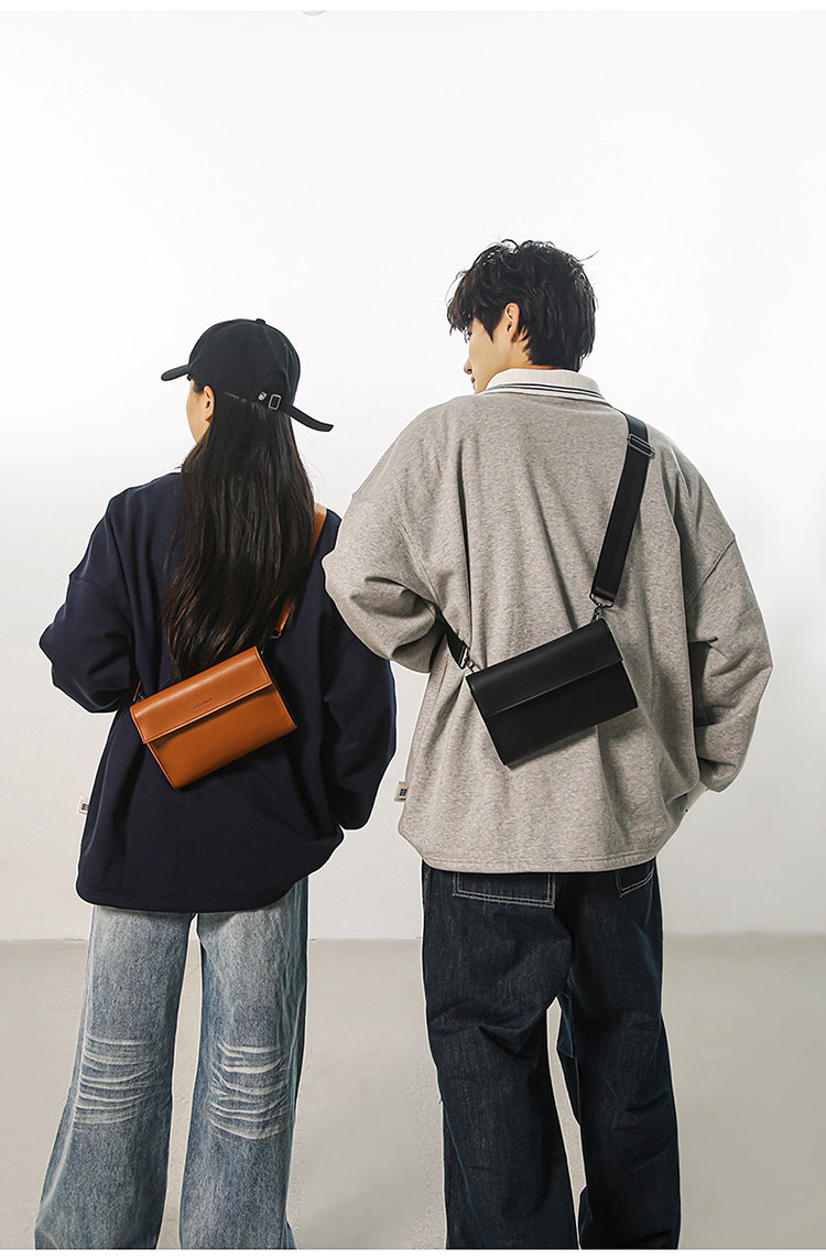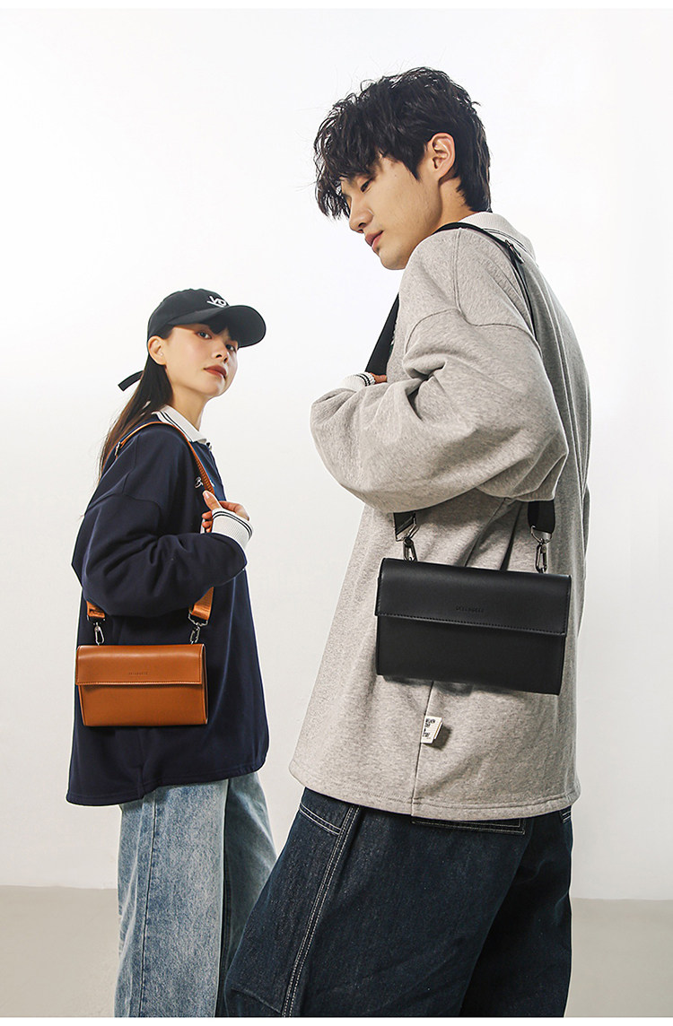 韩版简约pu翻盖信封包中性款男女高级质感斜挎胸包单肩包小方包