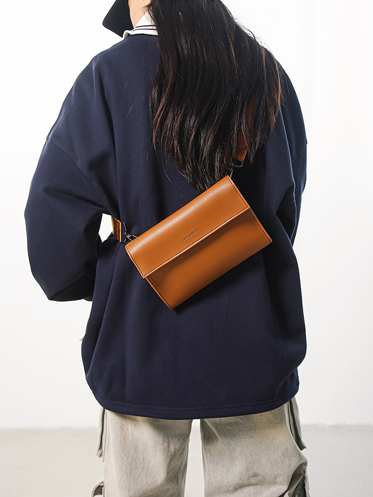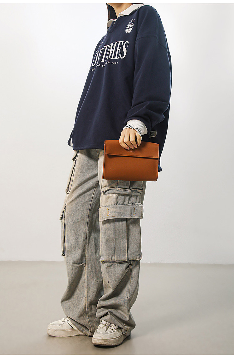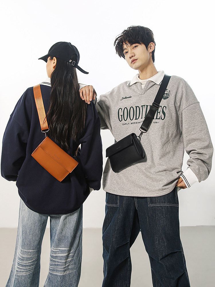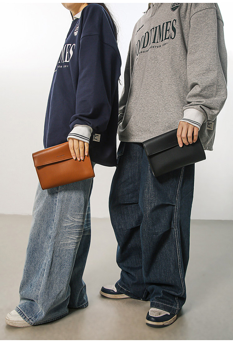 韩版简约pu翻盖信封包中性款男女高级质感斜挎胸包单肩包小方包