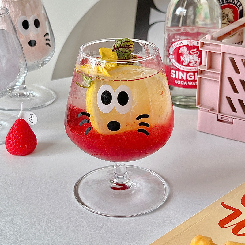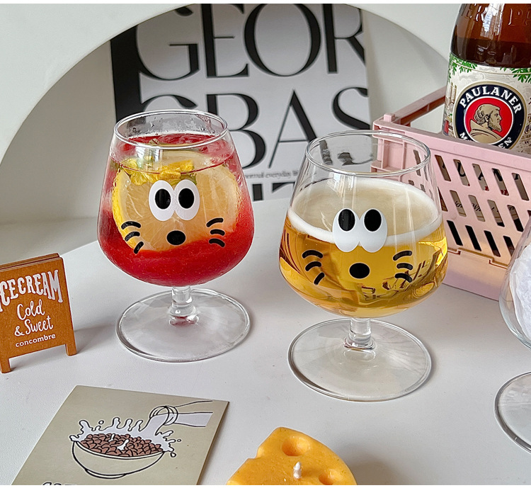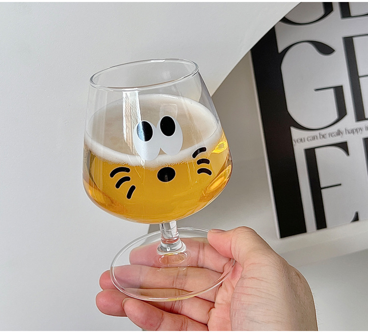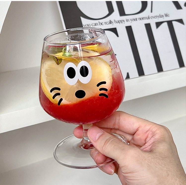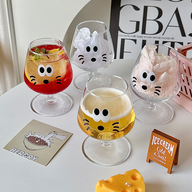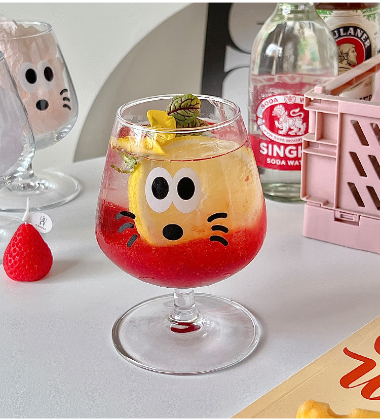 博立美 韩国ins风玻璃高脚杯酒杯果酒杯家用玻璃杯表情玻璃杯子