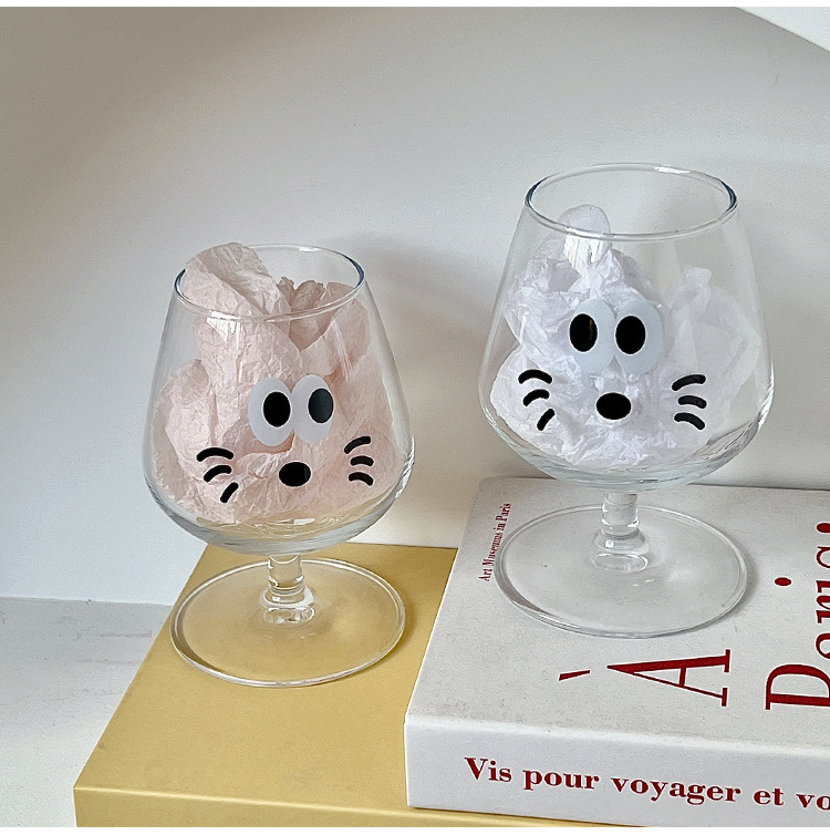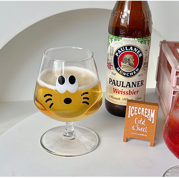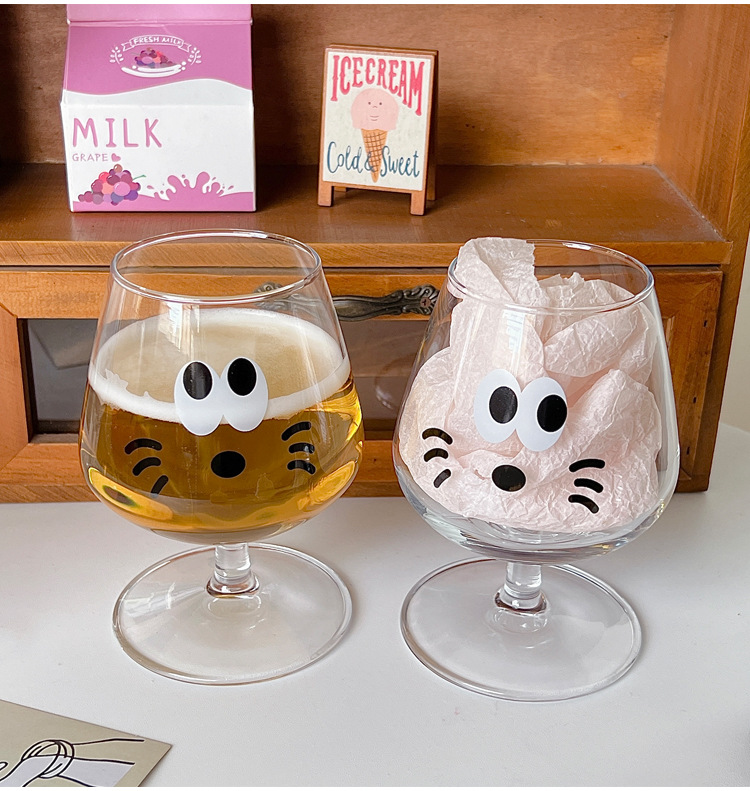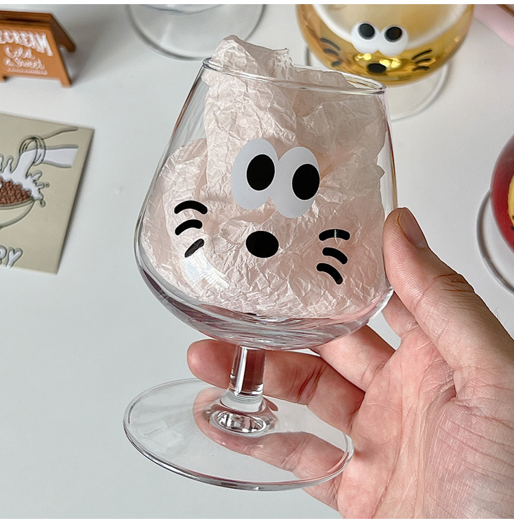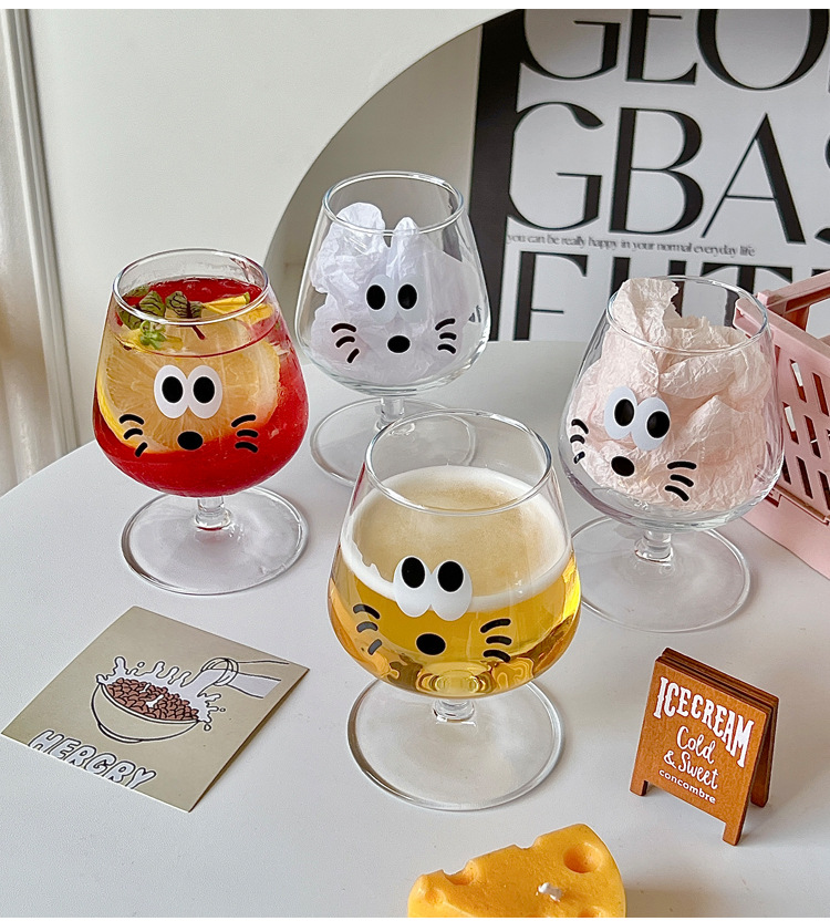 博立美 韩国ins风玻璃高脚杯酒杯果酒杯家用玻璃杯表情玻璃杯子