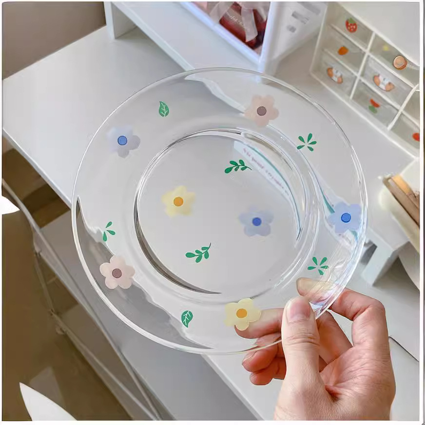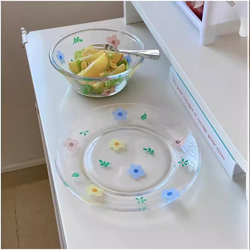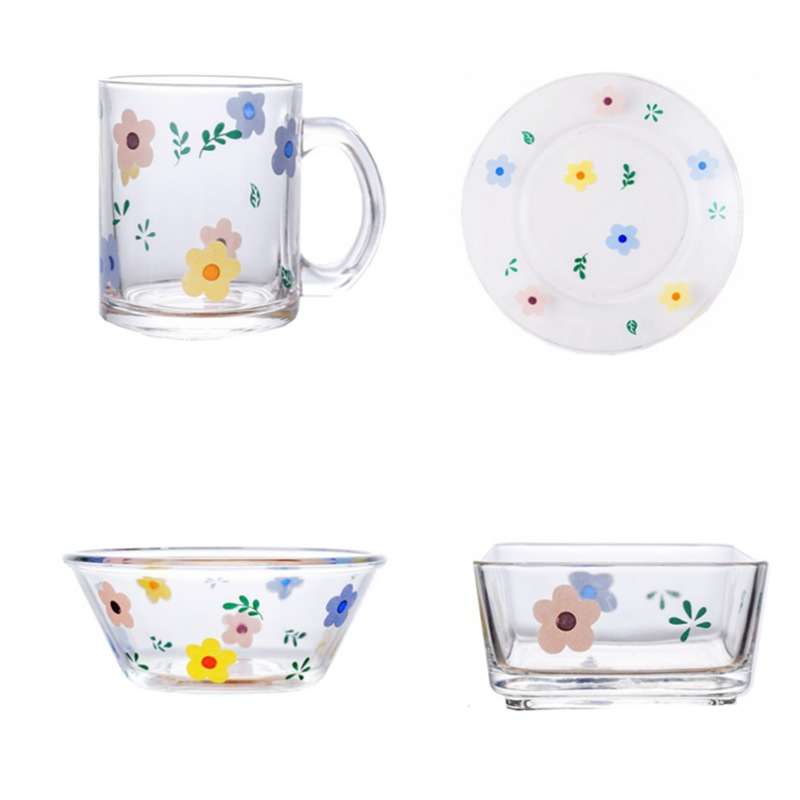 博立美 日韩泫雅小花餐具套装玻璃杯玻璃碗玻璃盘ins风少女心