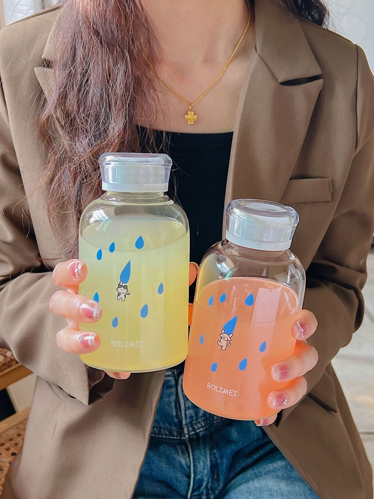 学生密封随手杯玻璃杯女生水杯和雨一起落下咖啡杯子冷萃便携杯子