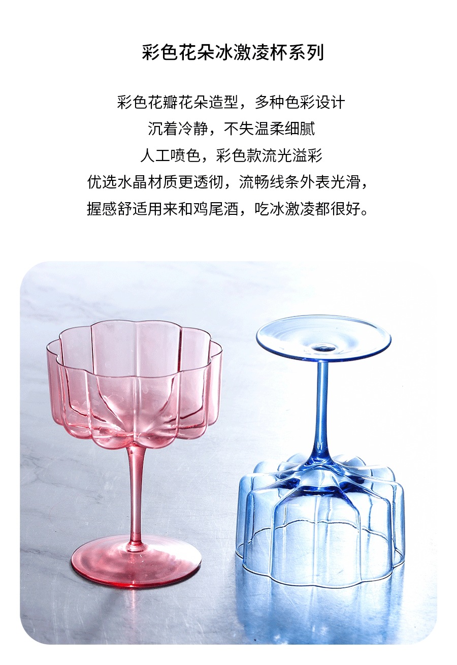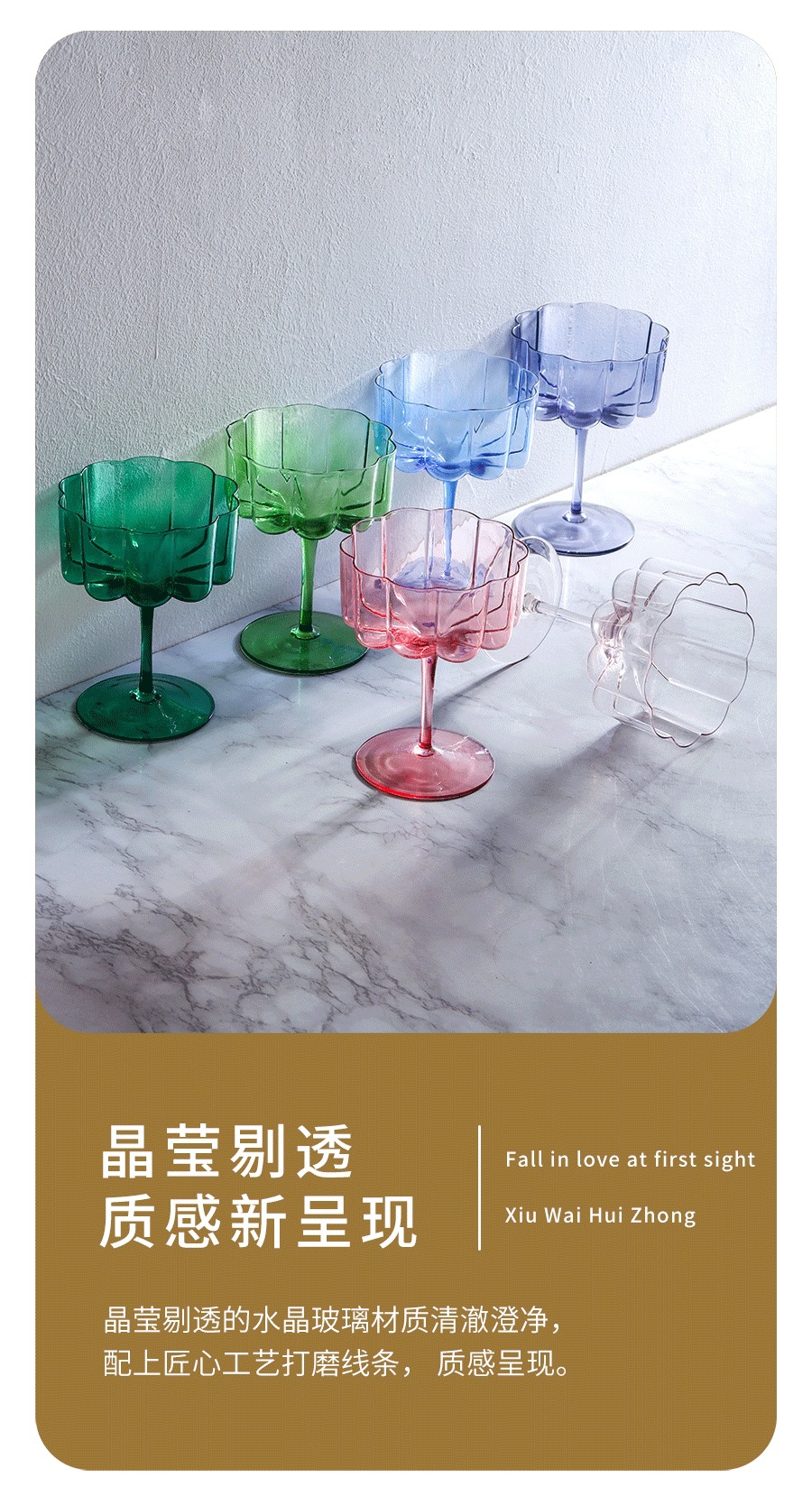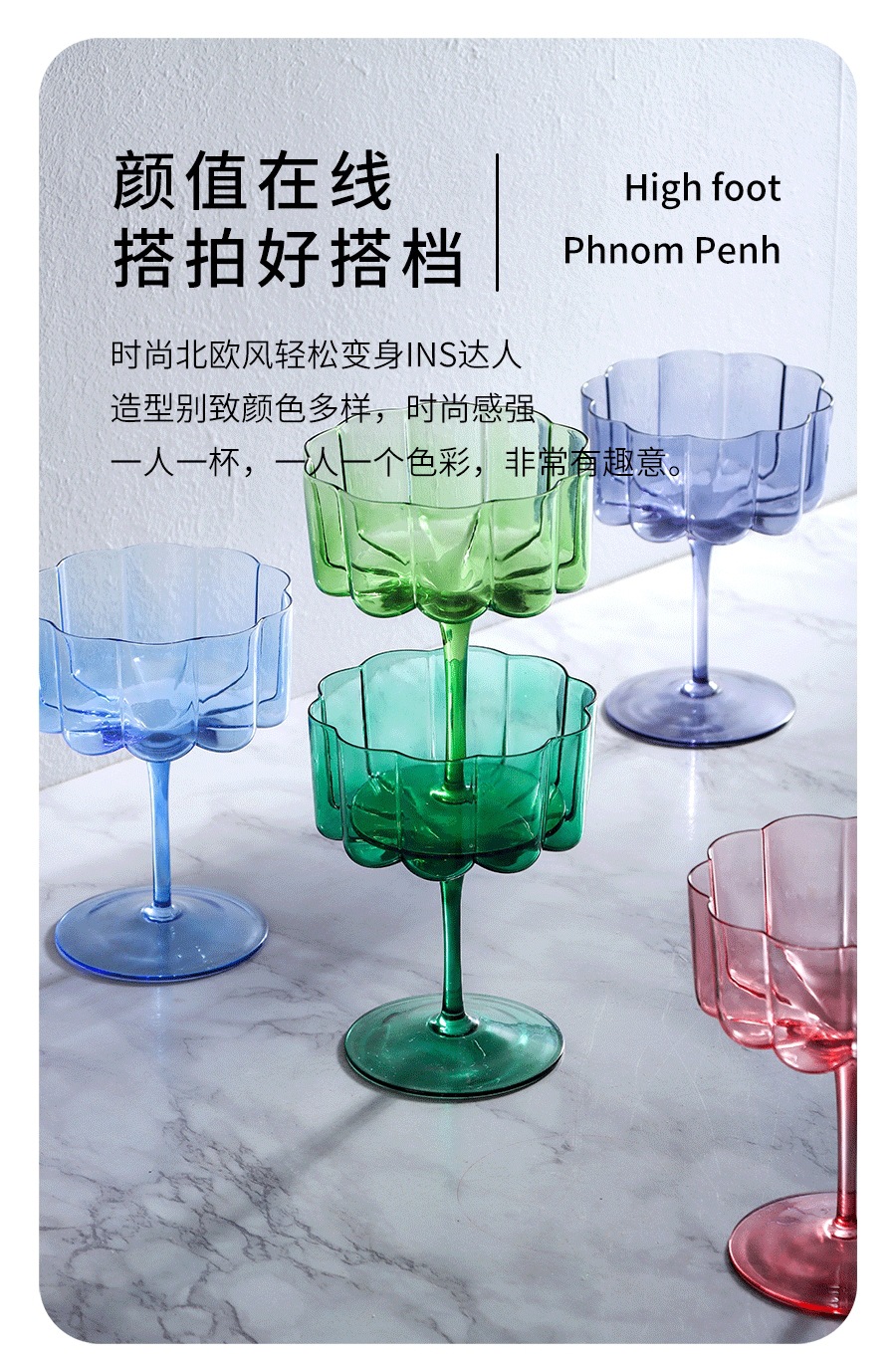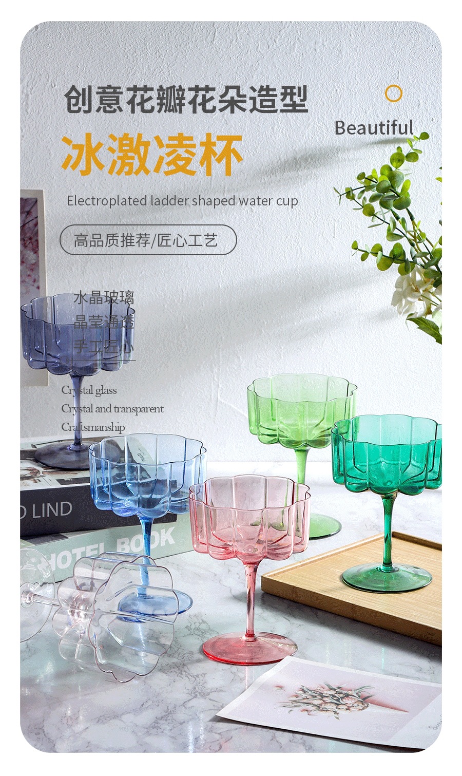 厂家批发彩色花边鸡尾酒杯创意花瓣玻璃高脚杯水晶玻璃冰激凌碗杯
