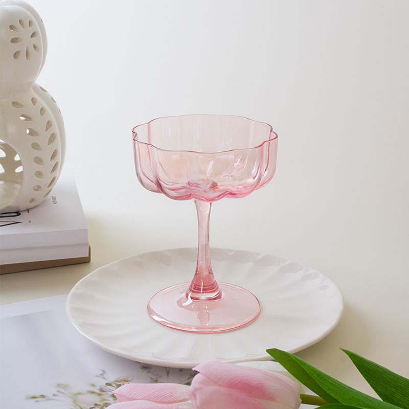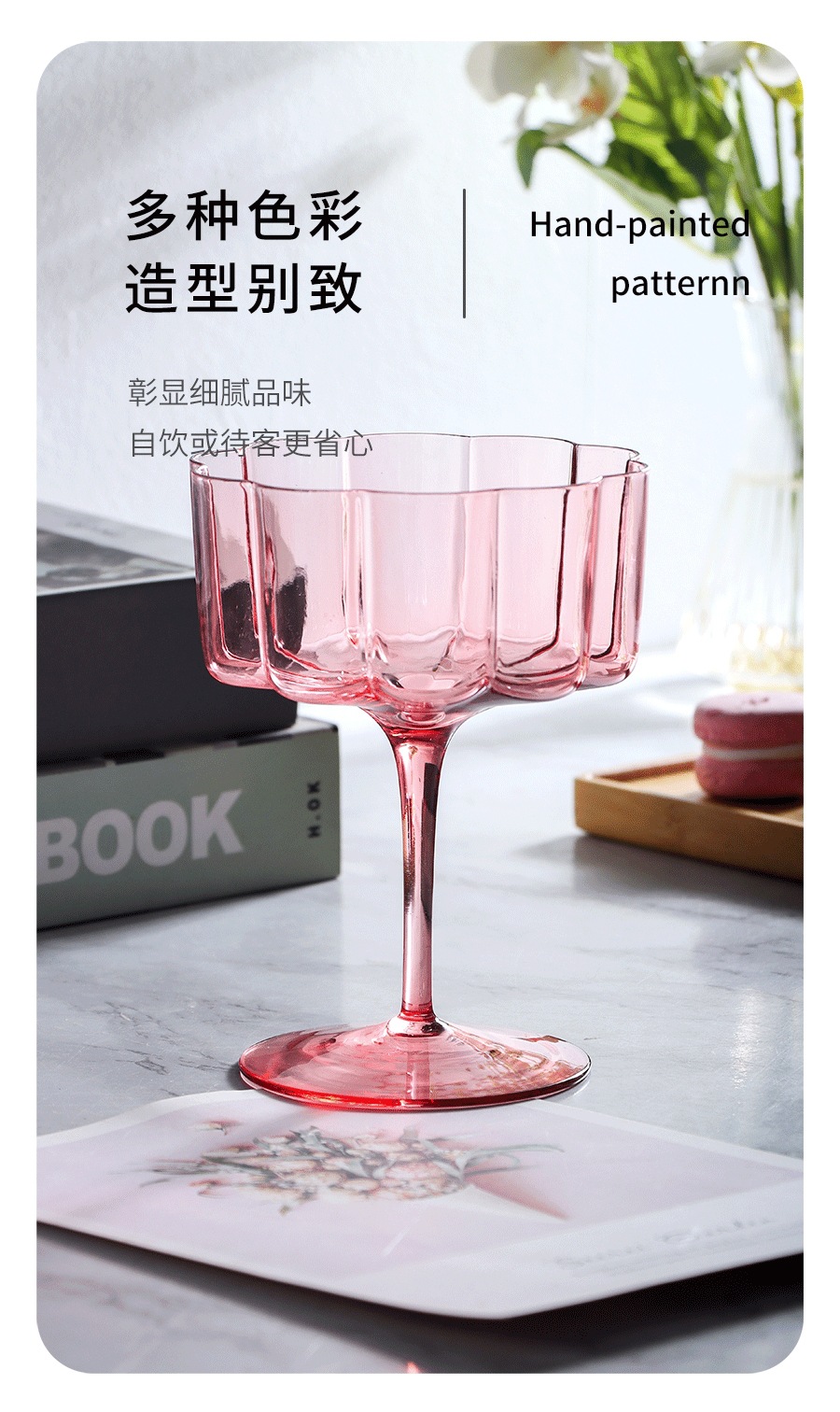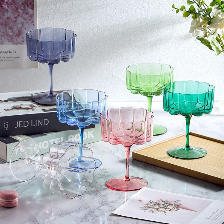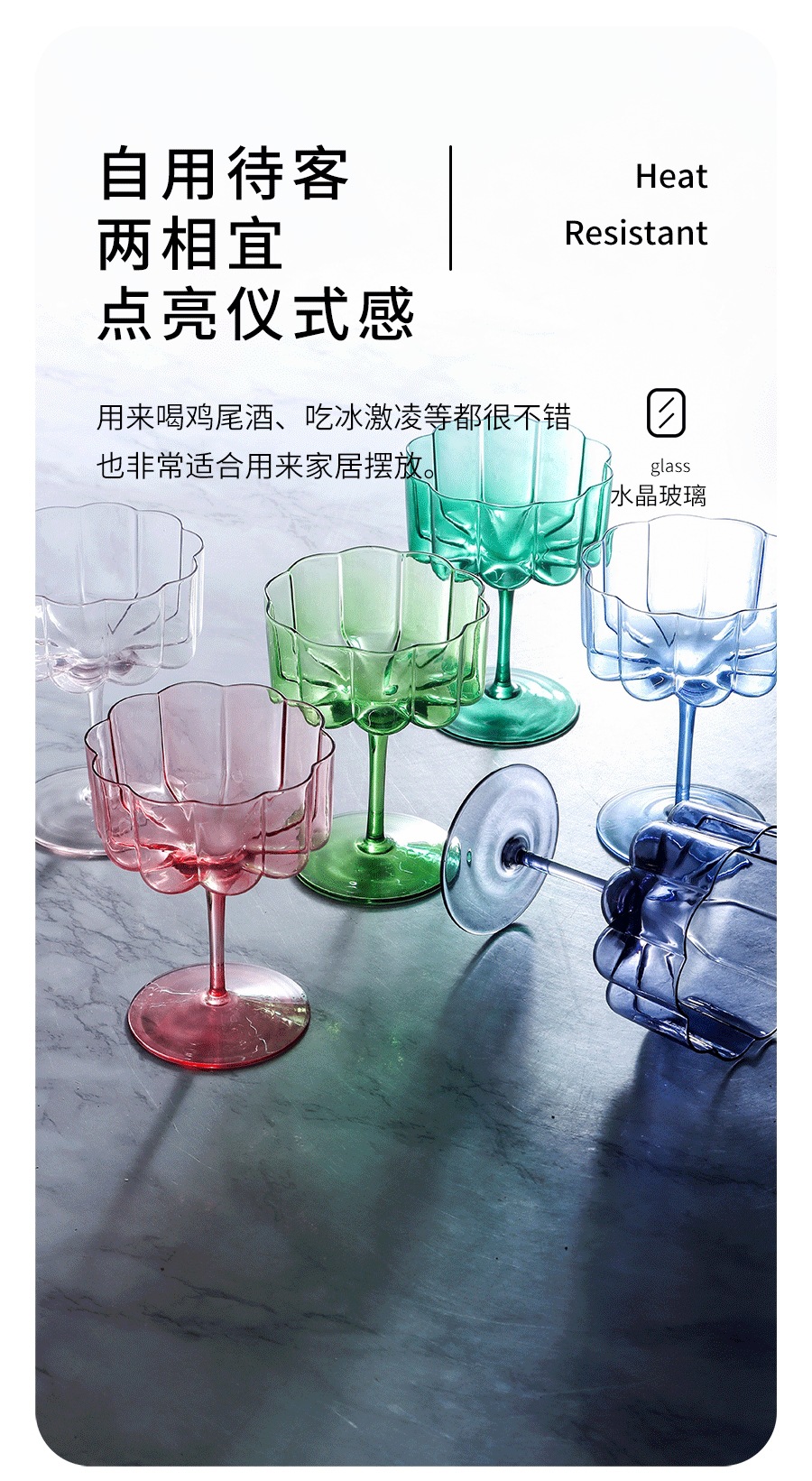 厂家批发彩色花边鸡尾酒杯创意花瓣玻璃高脚杯水晶玻璃冰激凌碗杯