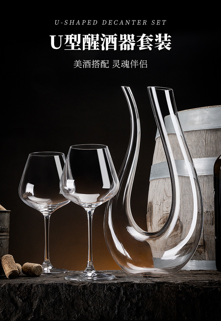 网红竖琴欧式轻奢U型天鹅红酒醒酒器家用水晶玻璃醒酒器礼盒装