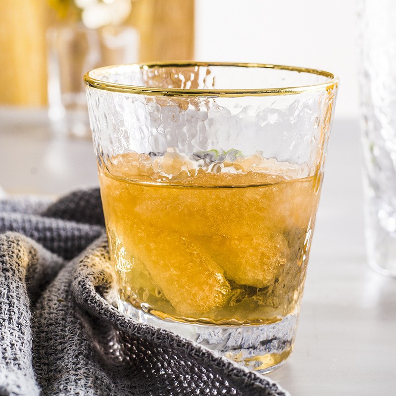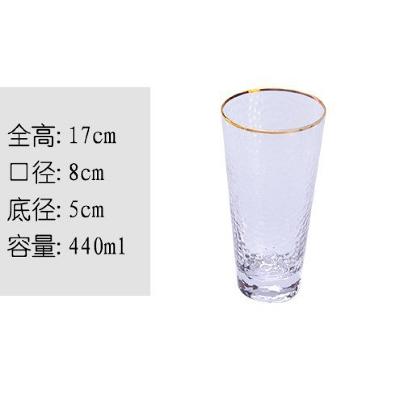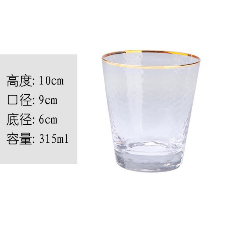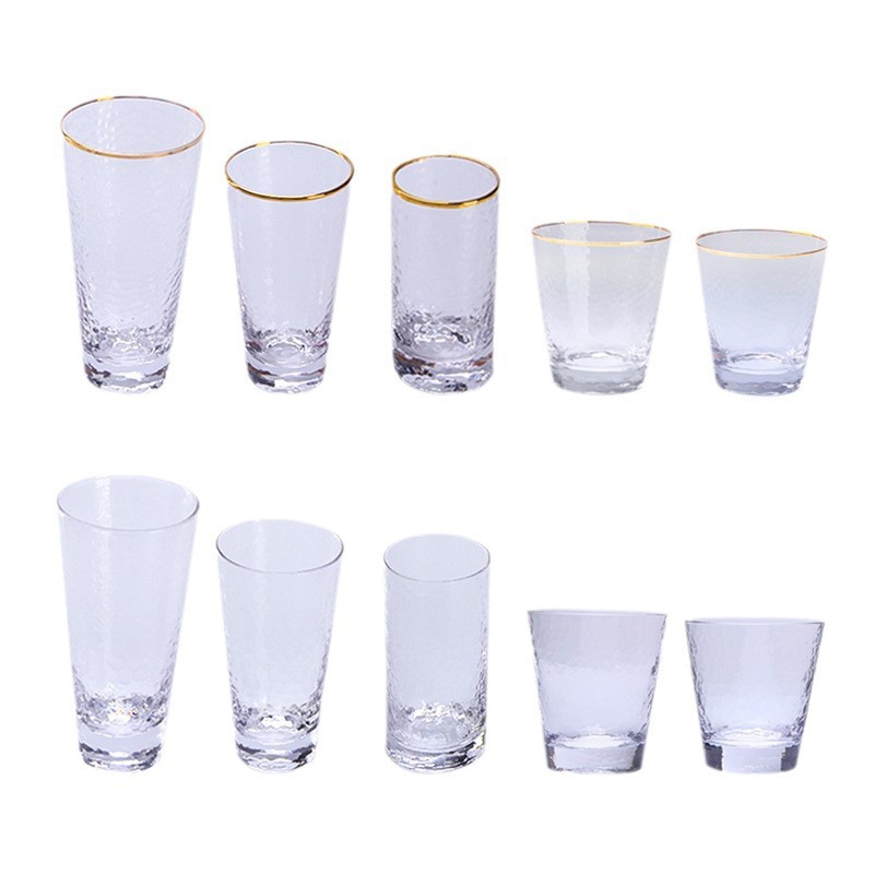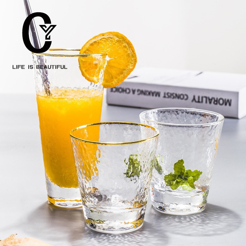 日式金边玻璃杯子ins风透明耐热锤纹水杯套装家用果汁奶茶杯批发