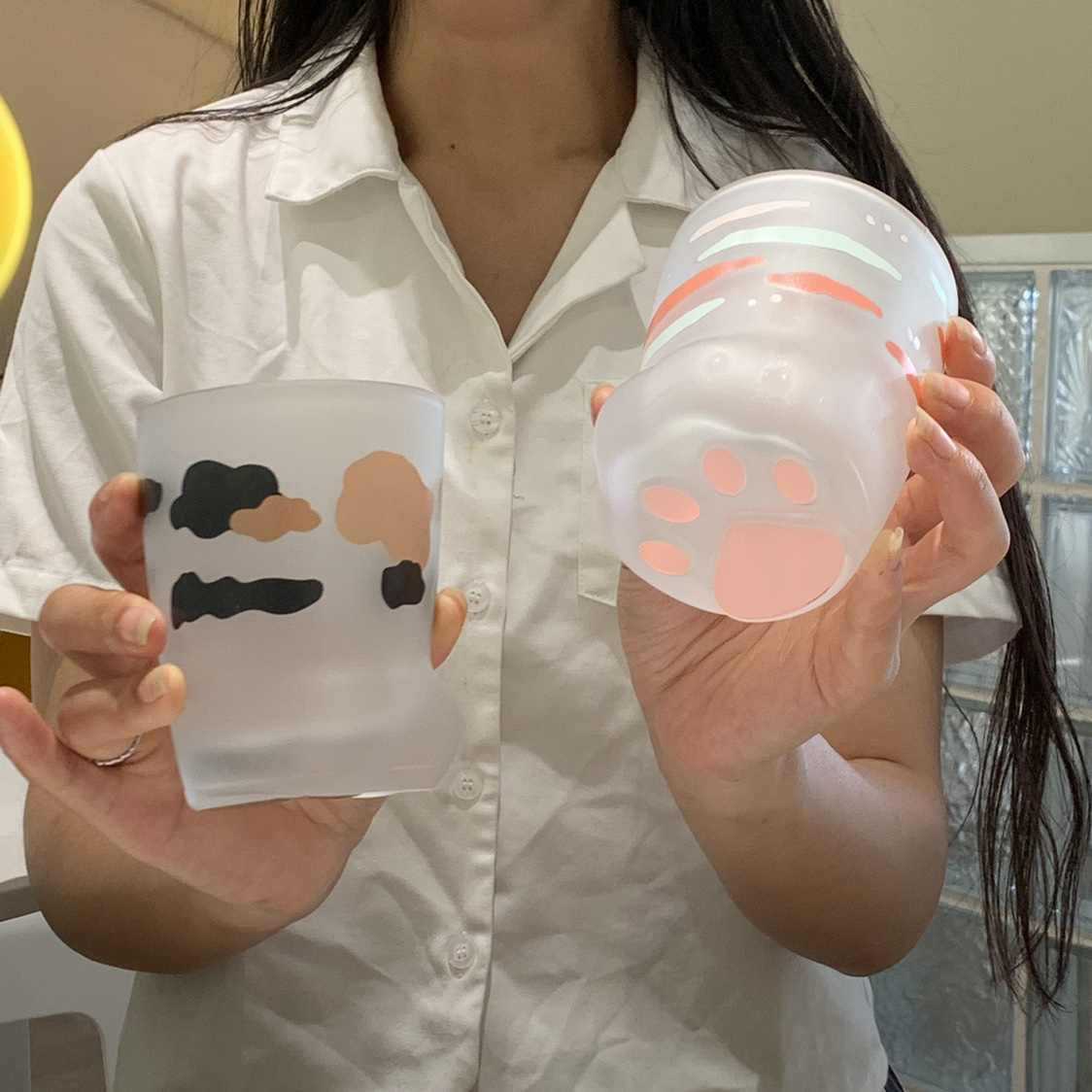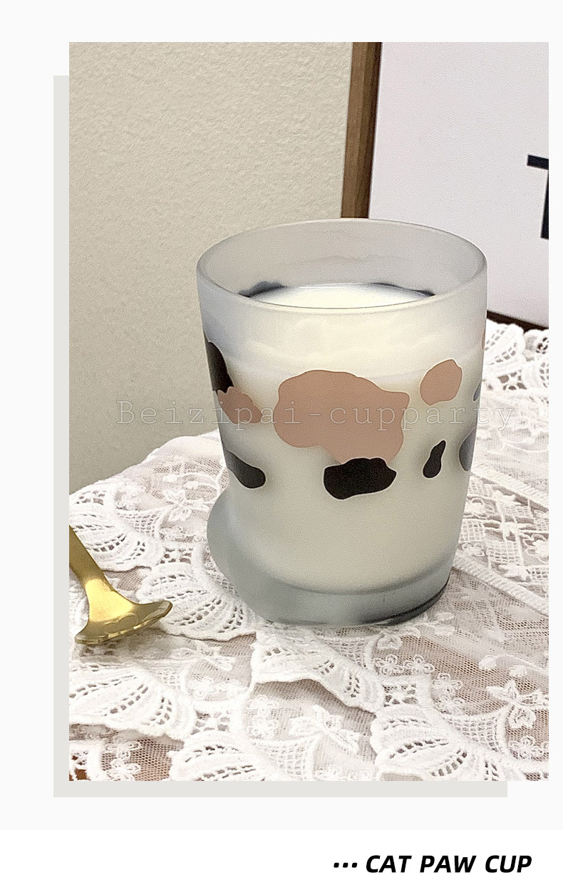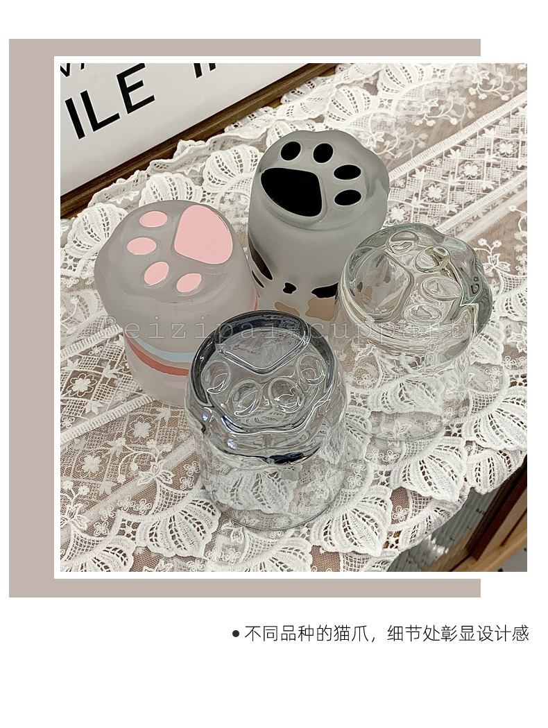 网红猫爪杯卡通玻璃杯磨砂猫脚杯水杯个性创意饮情侣牛奶杯