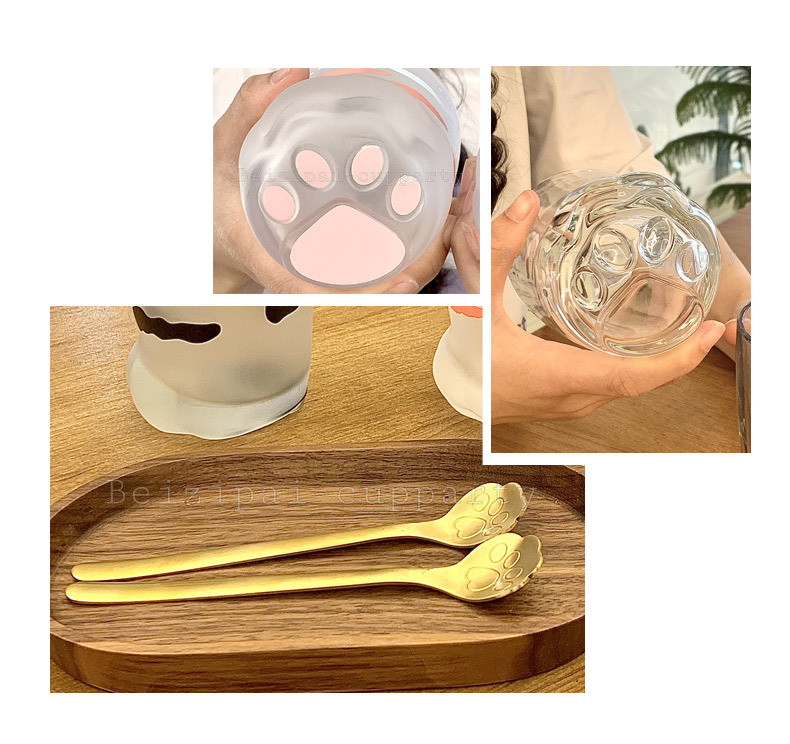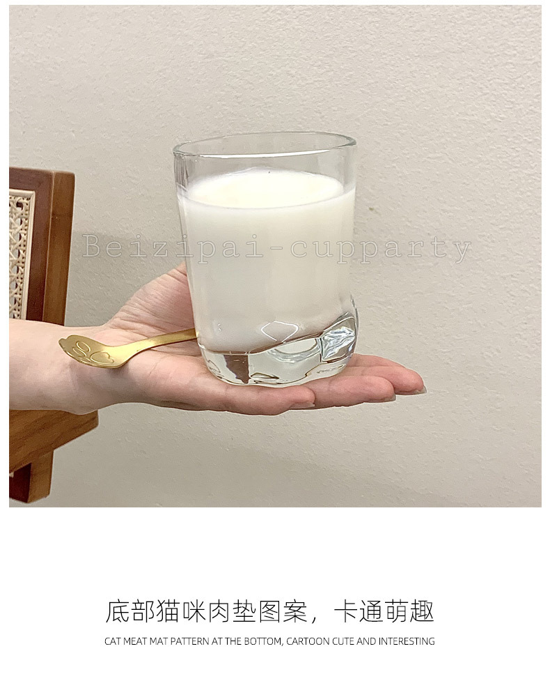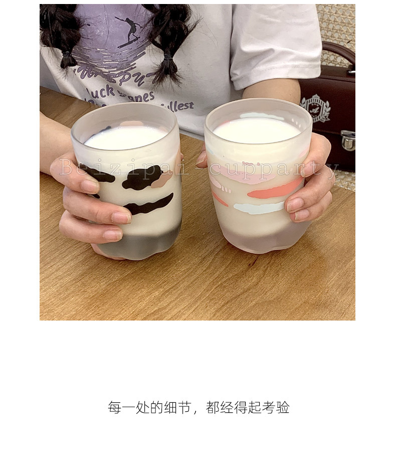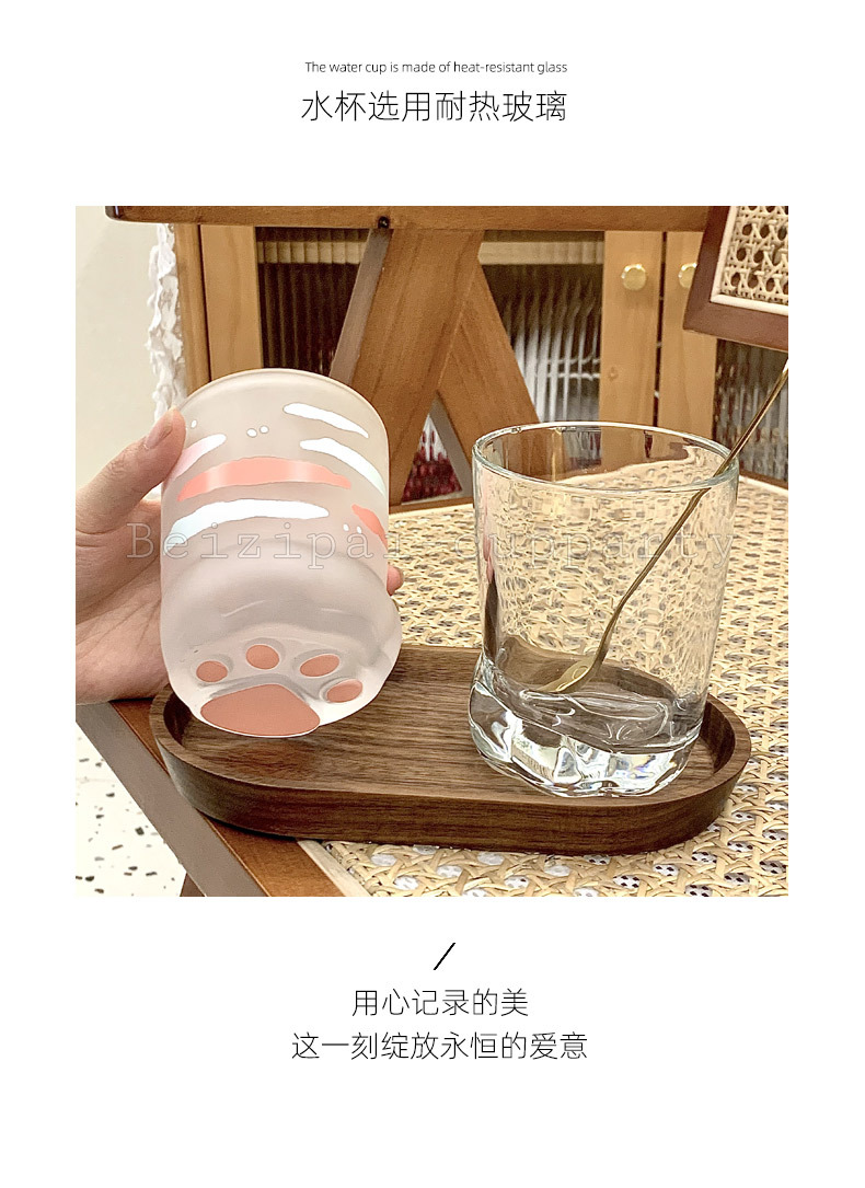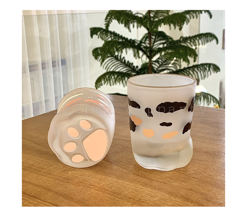 网红猫爪杯卡通玻璃杯磨砂猫脚杯水杯个性创意饮情侣牛奶杯