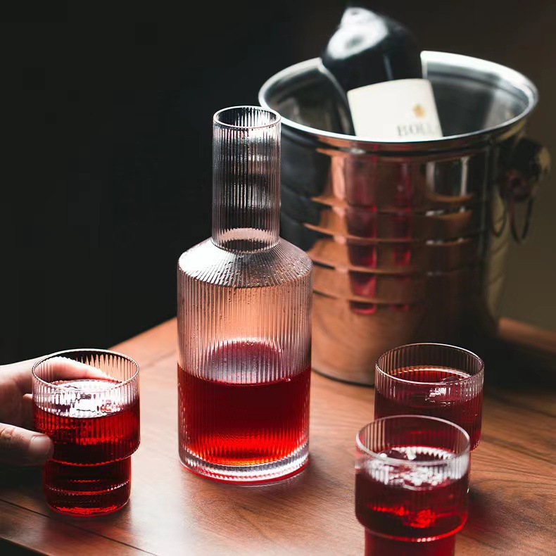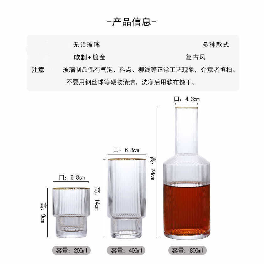 金边锤纹玻璃冷水壶条纹水壶凉水壶果汁壶防爆家用欧式创意套装
