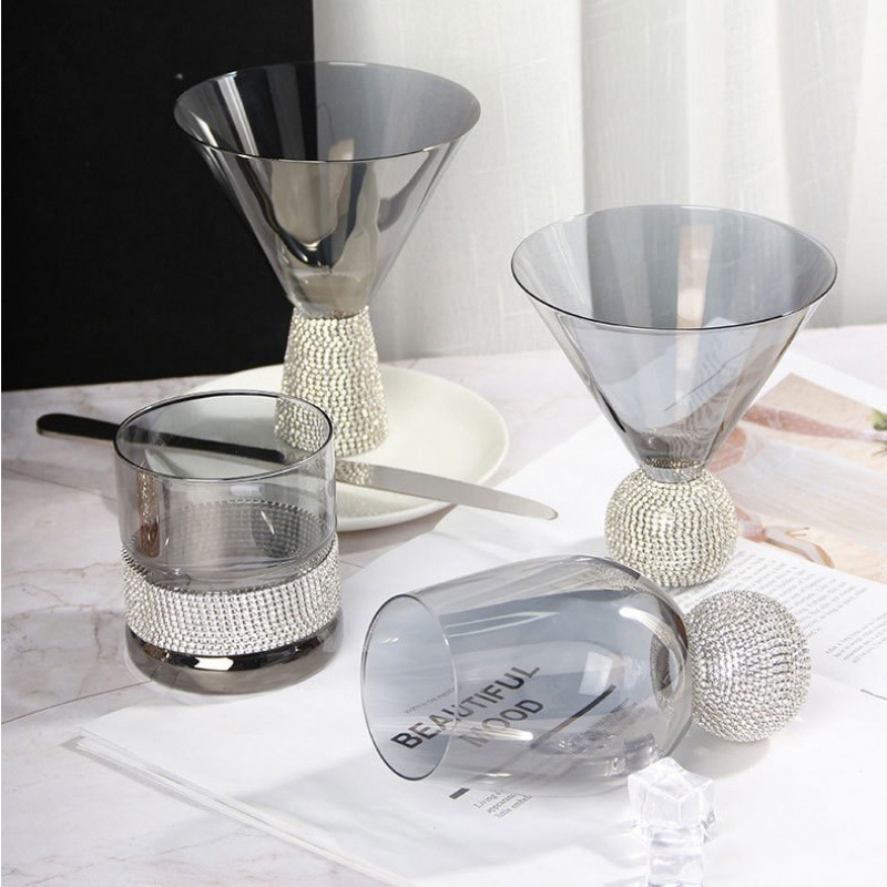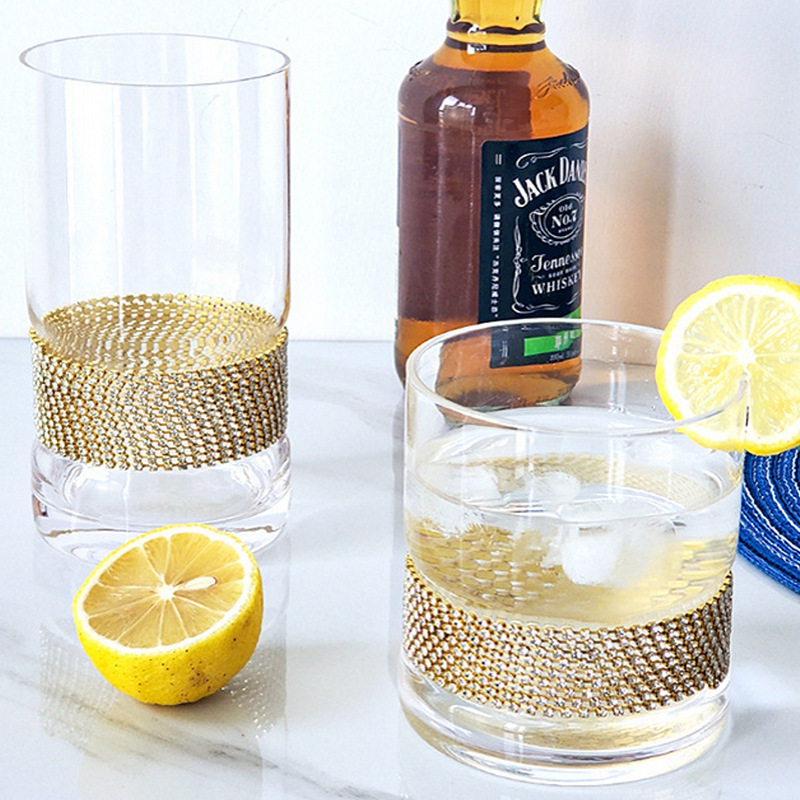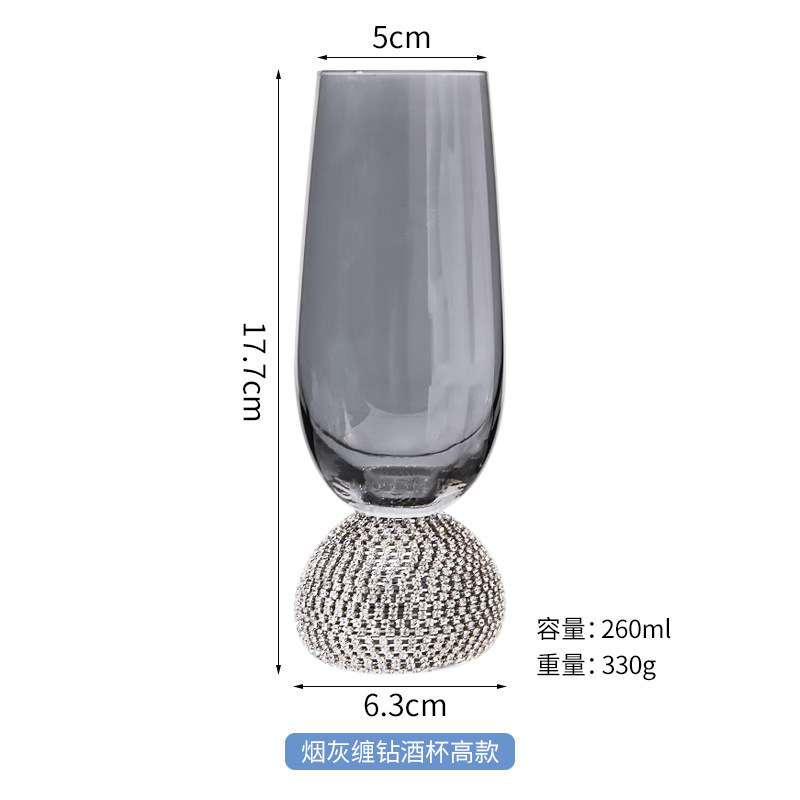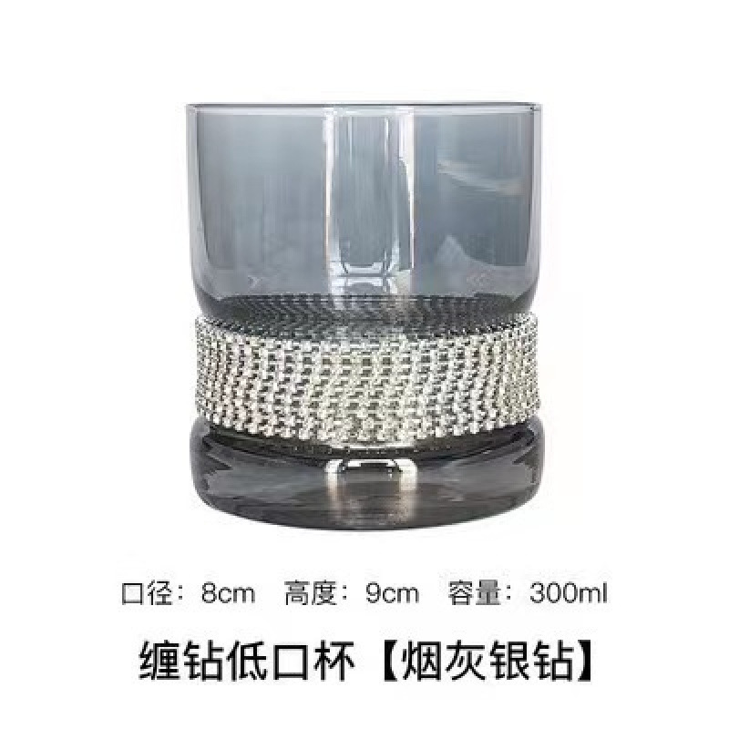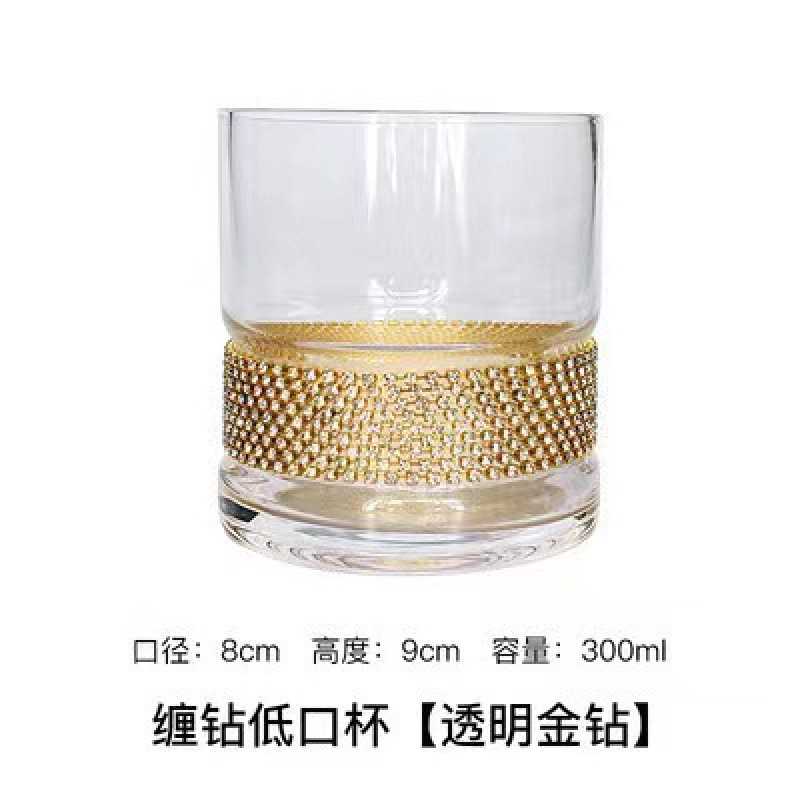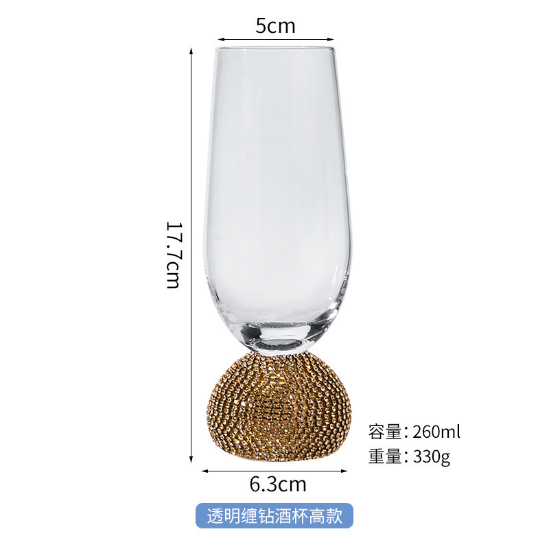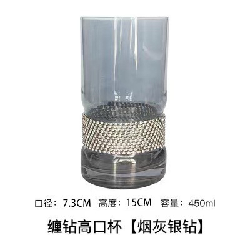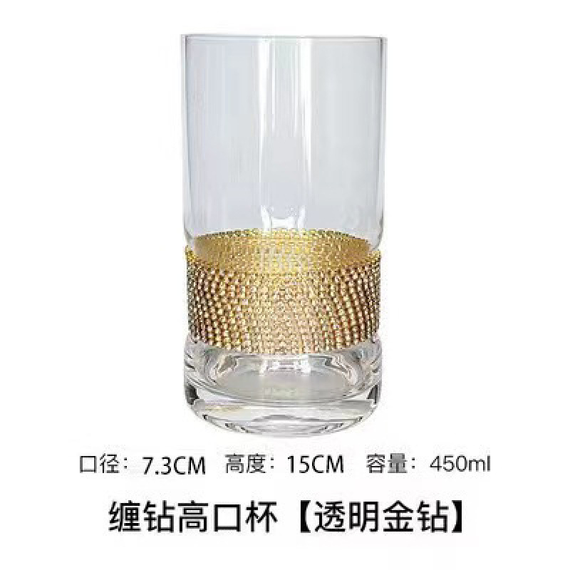 缠钻玻璃杯多色杯子底部镶钻杯创意饮料杯批发高杯 一壶 高脚杯