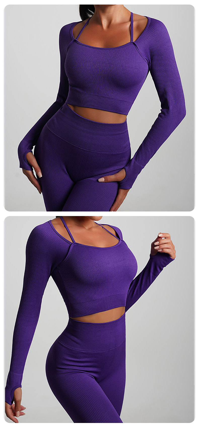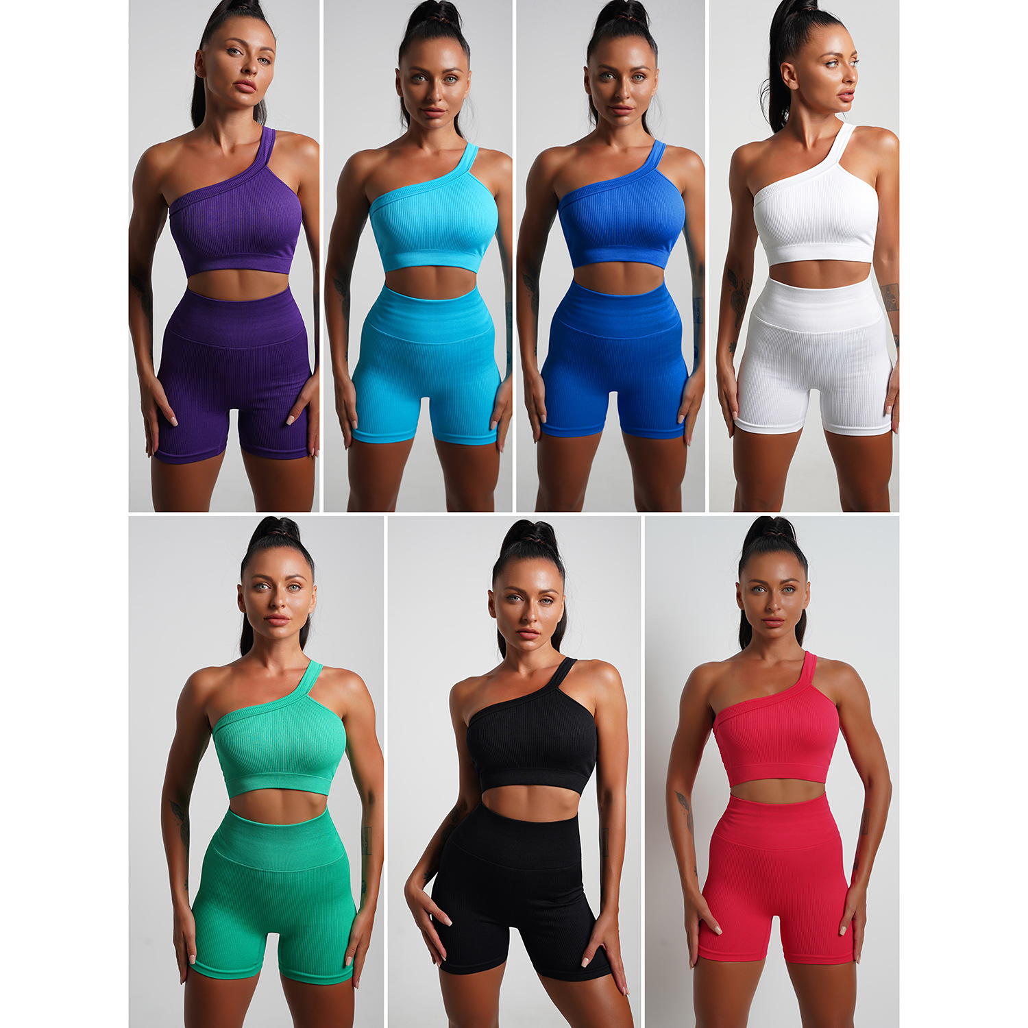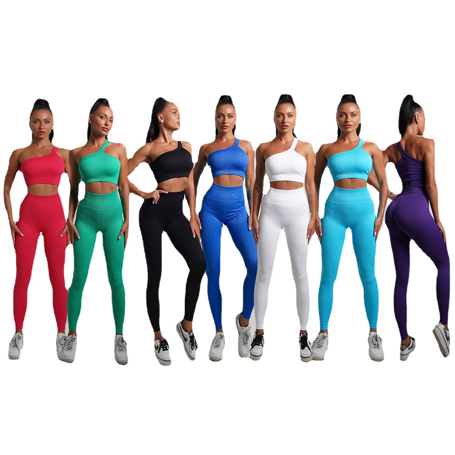 跨境无缝瑜伽服春夏套装运动上衣紧身透气文胸背心瑜伽裤健身服女
