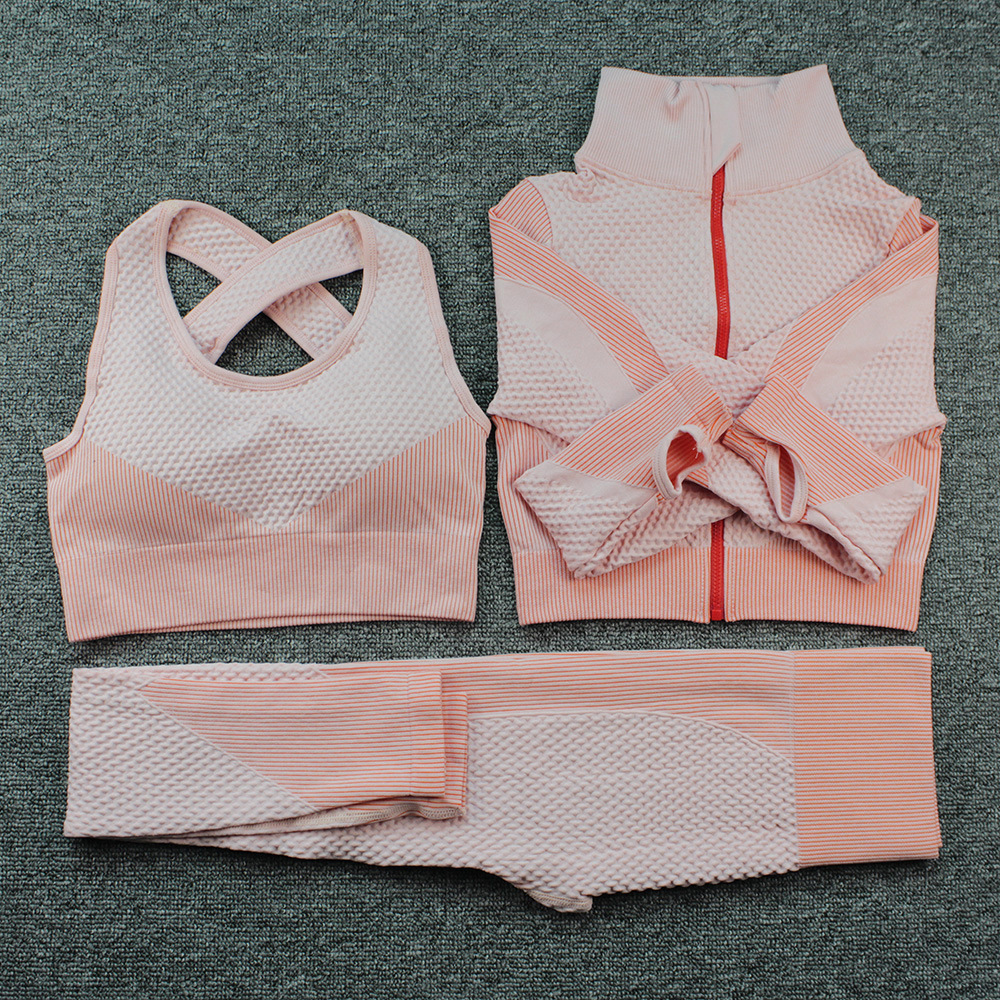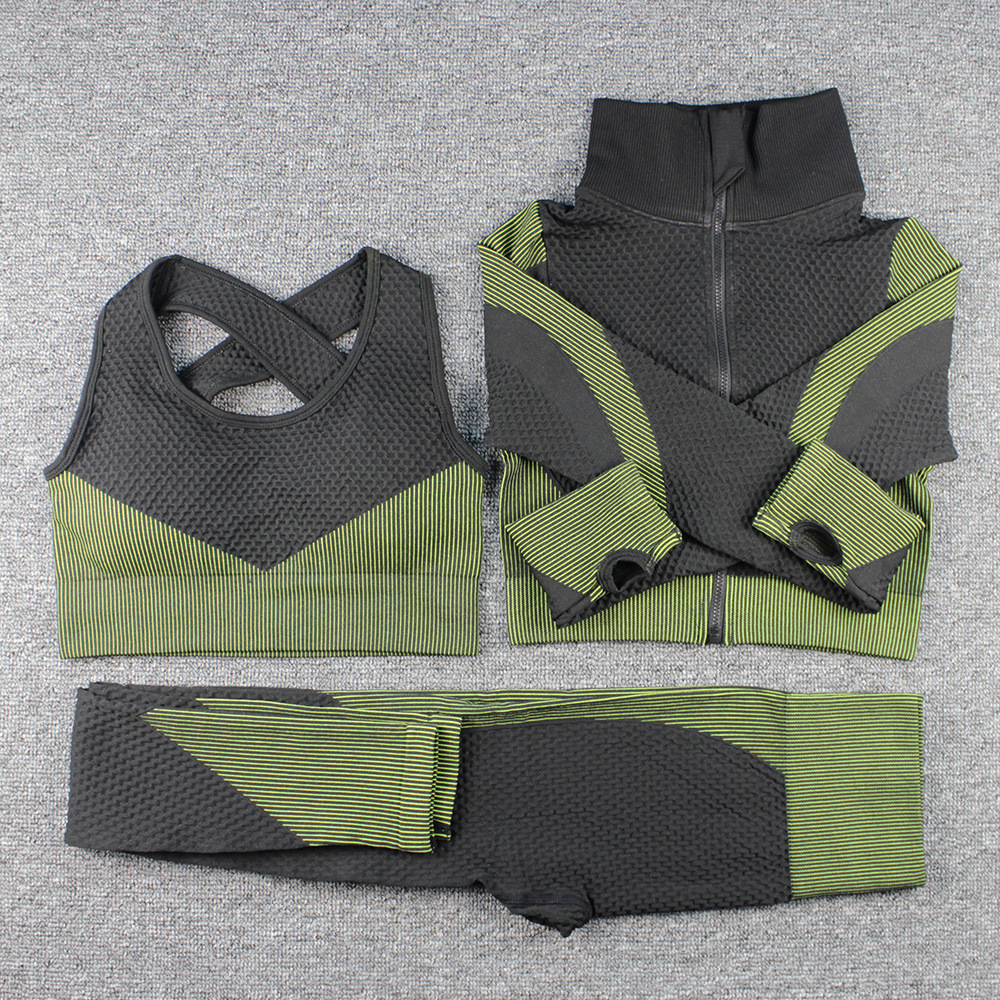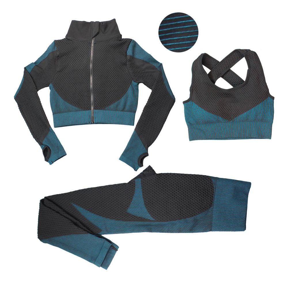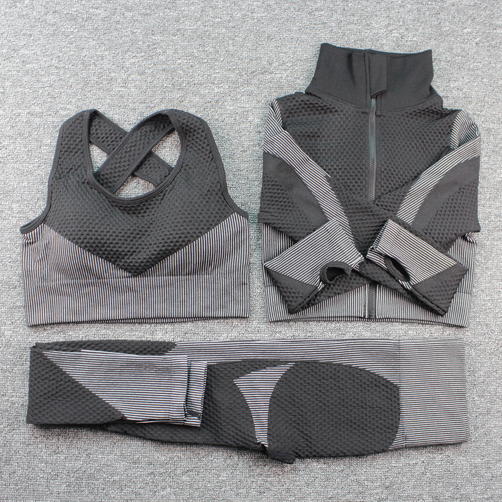 欧美运动瑜伽服套装春冬跑步专业健身速干无缝显瘦初学者三件套