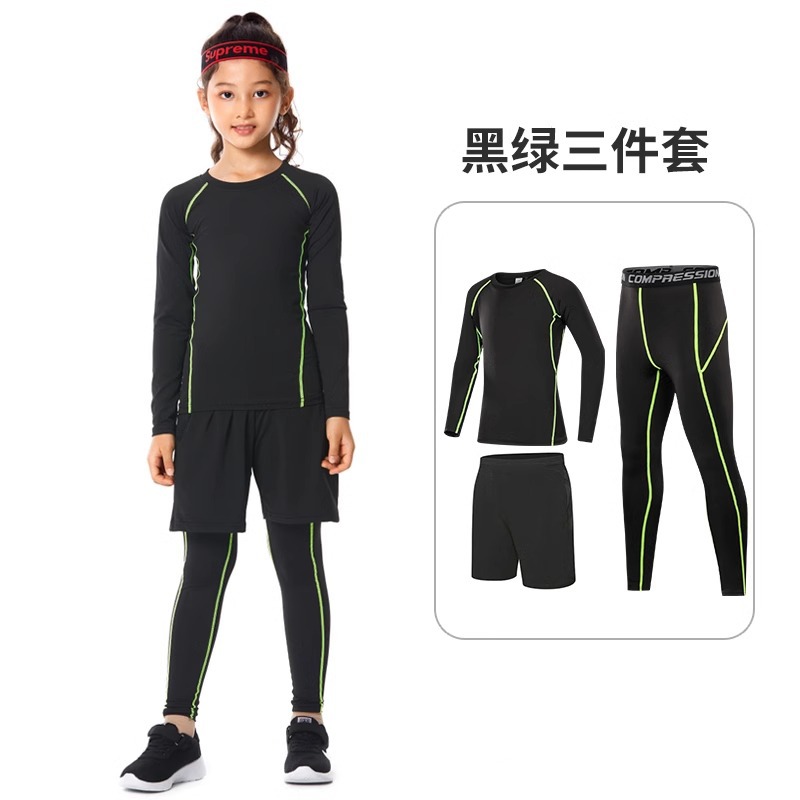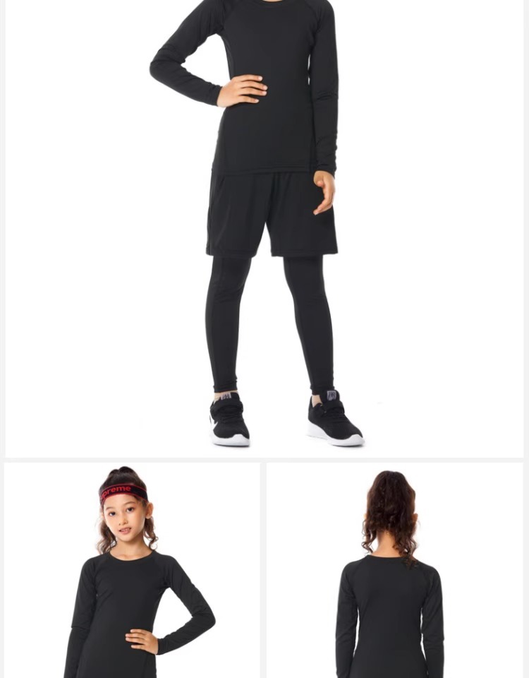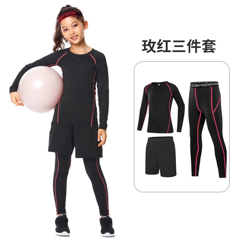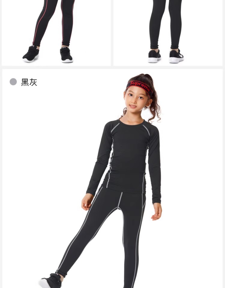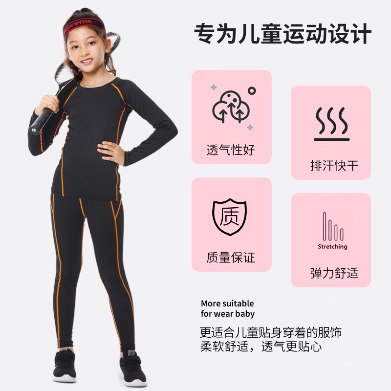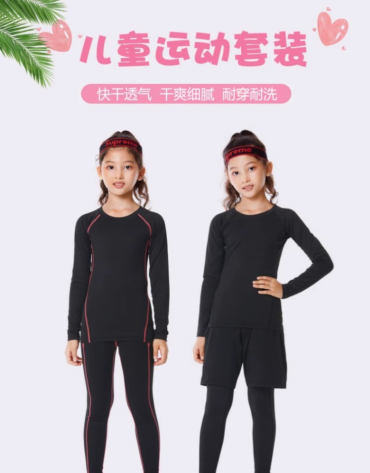 儿童紧身衣训练服篮球足球运动套装女童跑步瑜伽健身服打底速干衣