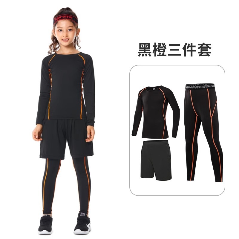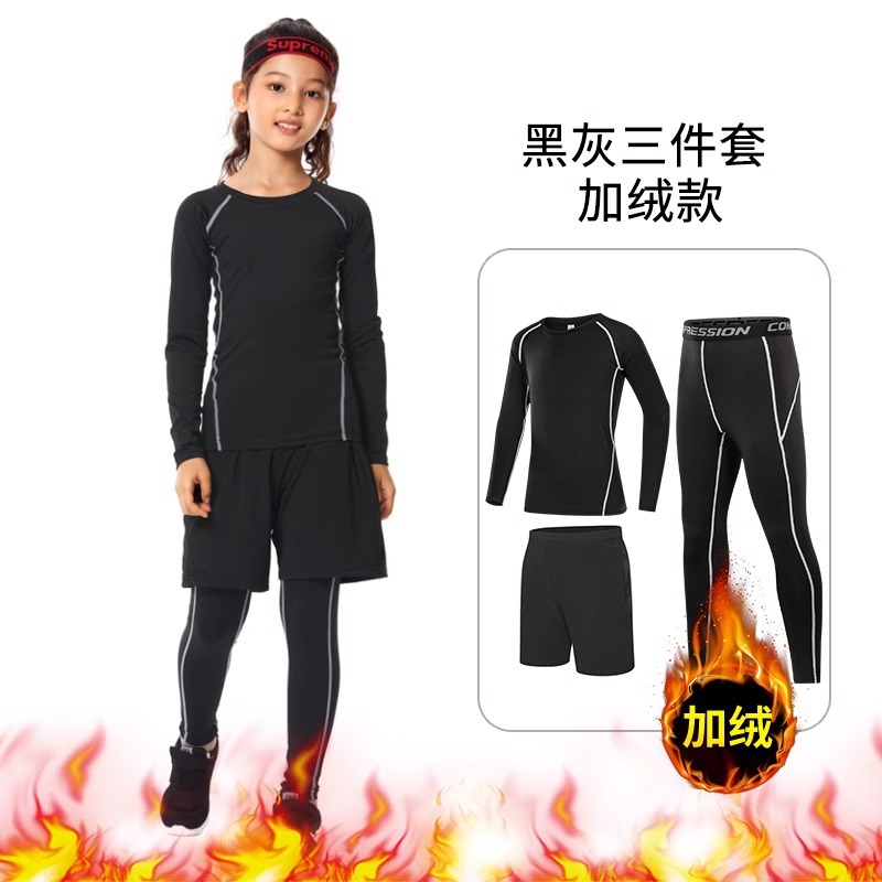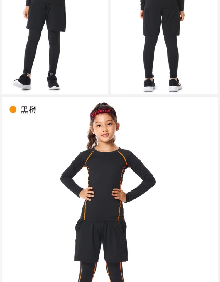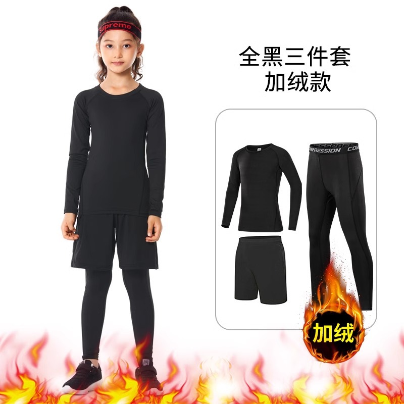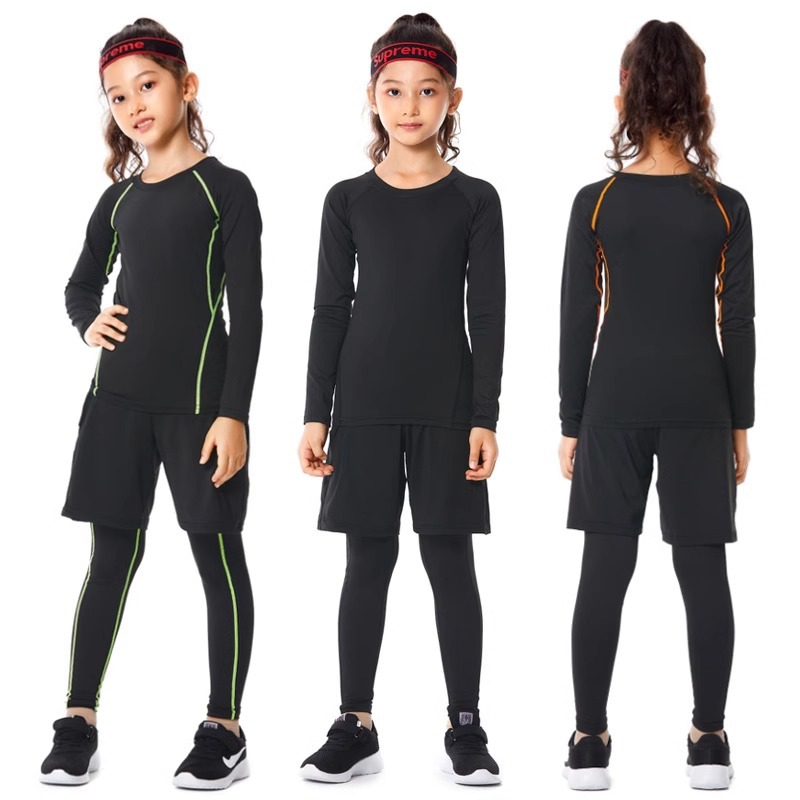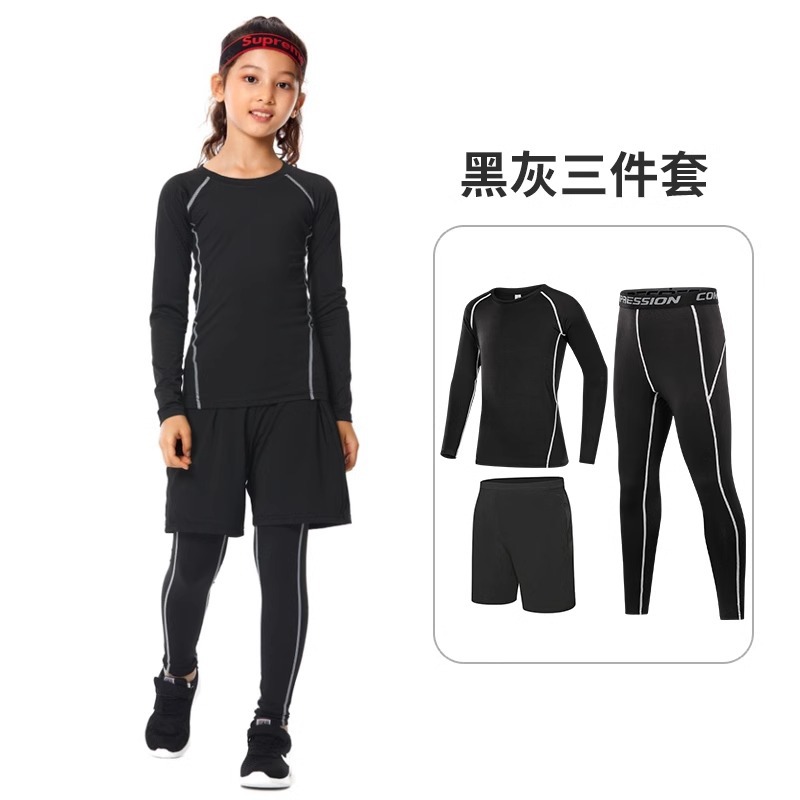 儿童紧身衣训练服篮球足球运动套装女童跑步瑜伽健身服打底速干衣