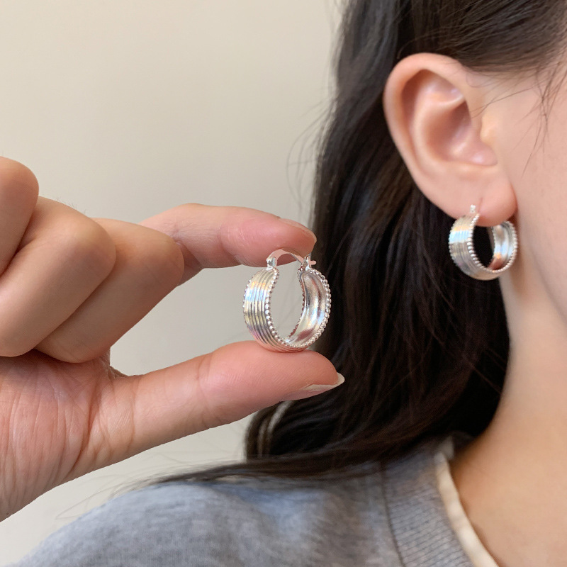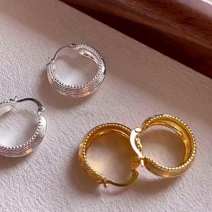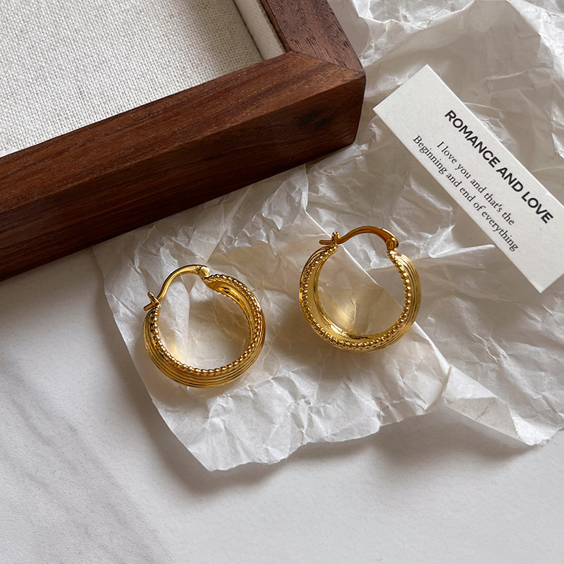 饰品耳环小众高级感素圈耳钉真金电镀法式小众简约大圆圈耳环女