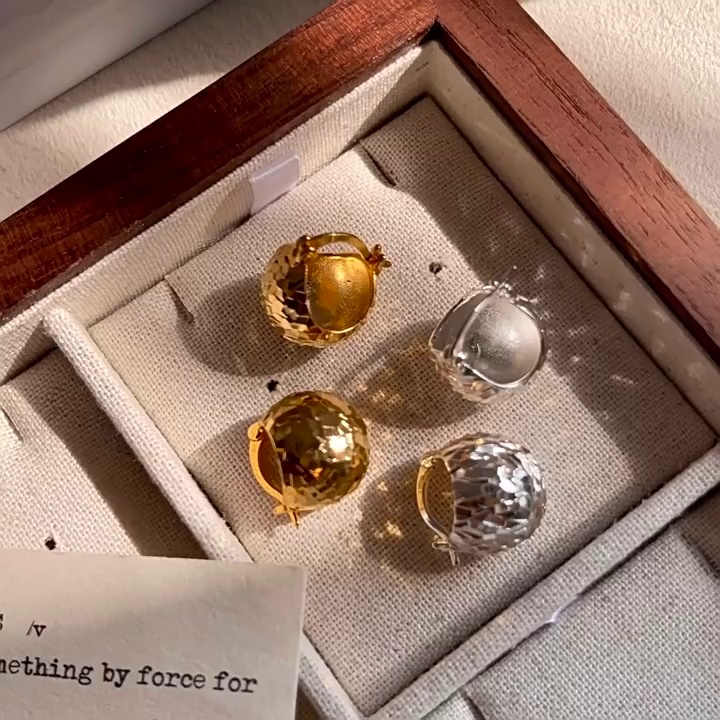 饰品小众时尚气质高级感耳环真金电镀欧美复古金属感半圈耳扣耳钉