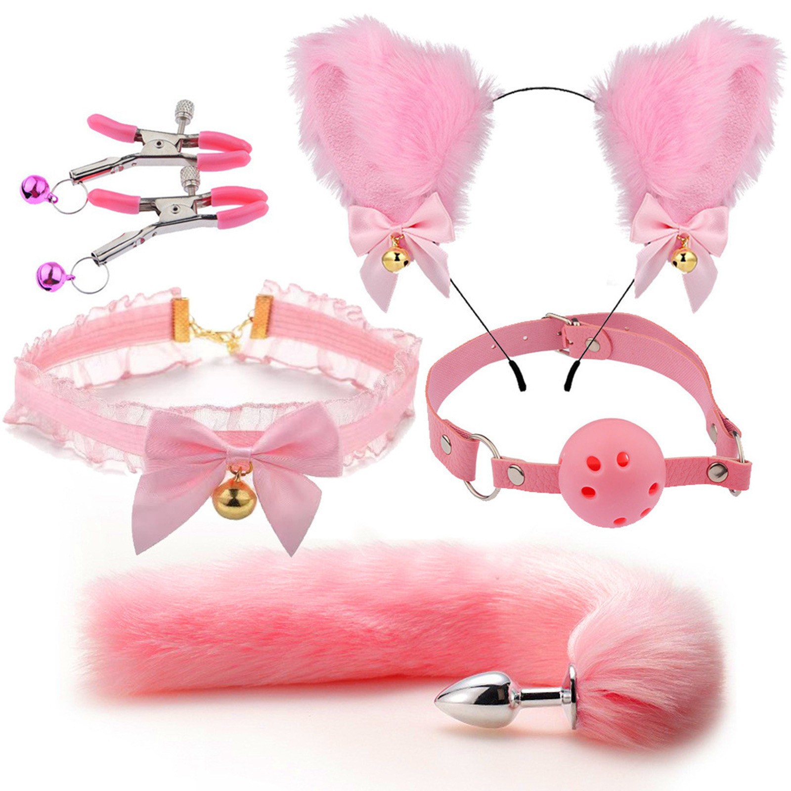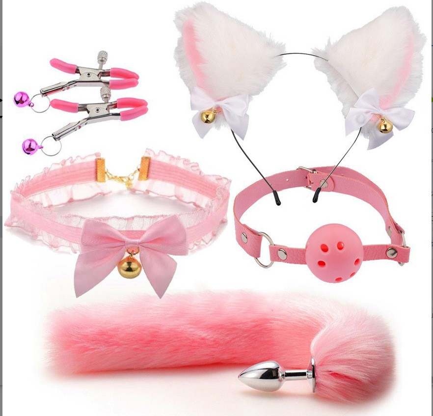 角色扮演,蕾丝SM尾巴发箍套装肛塞乳夹项圈情趣用品调情诱惑