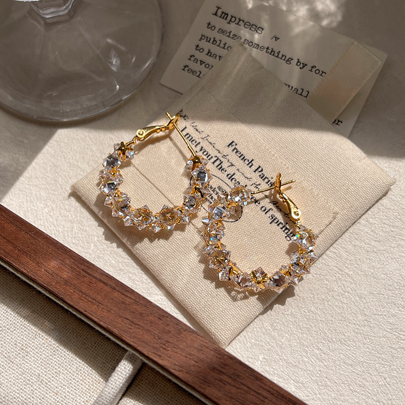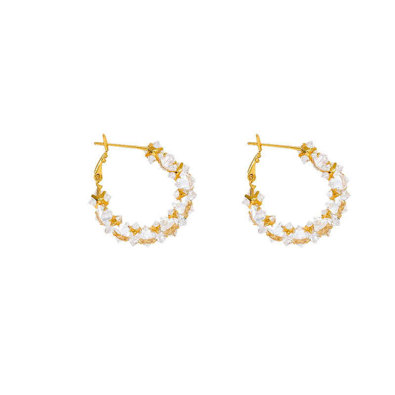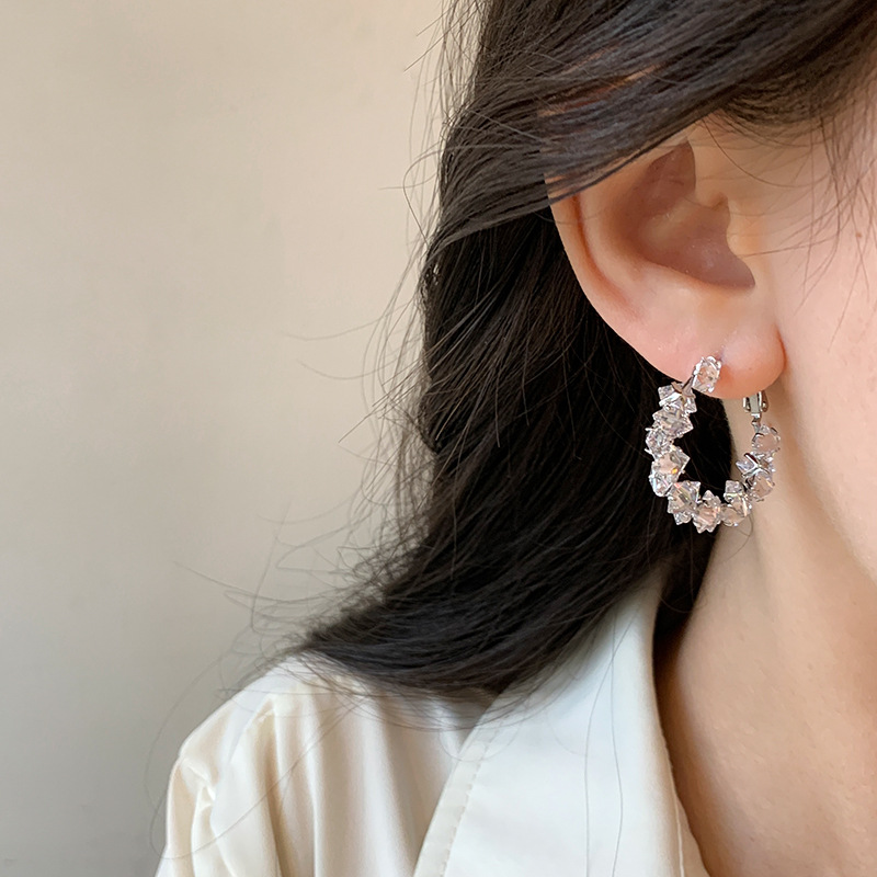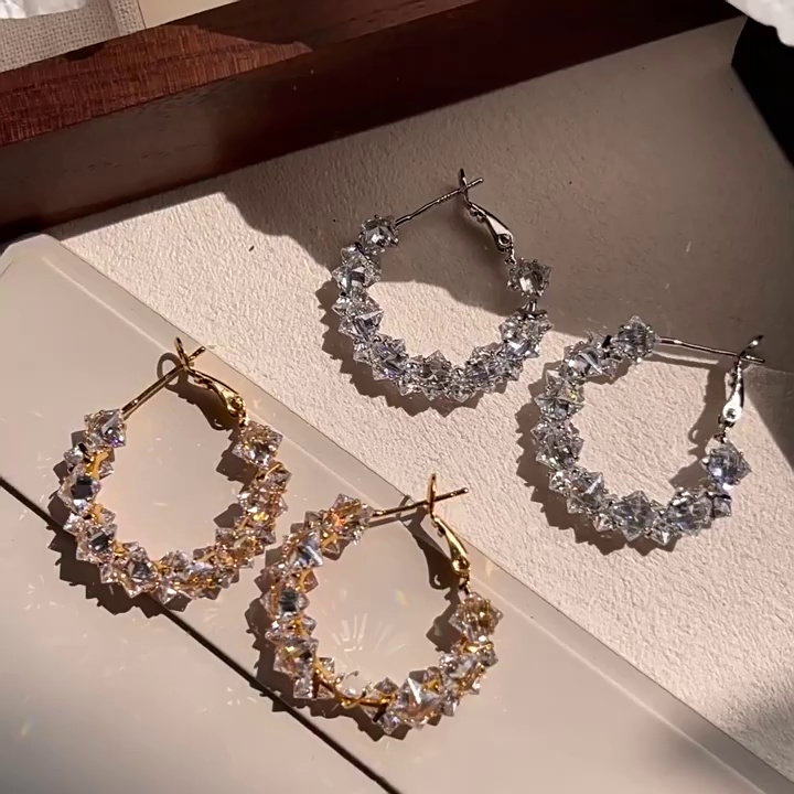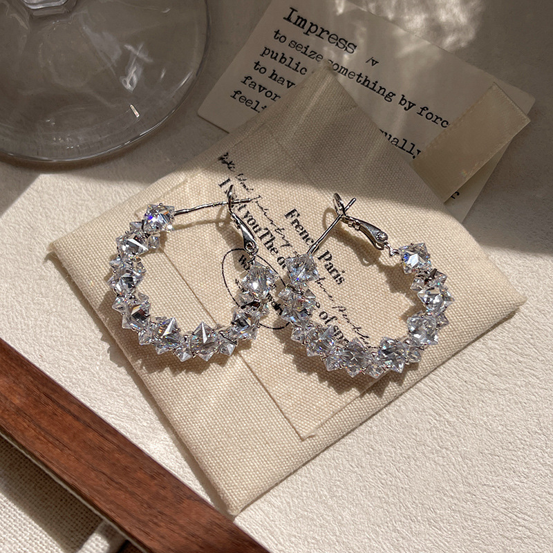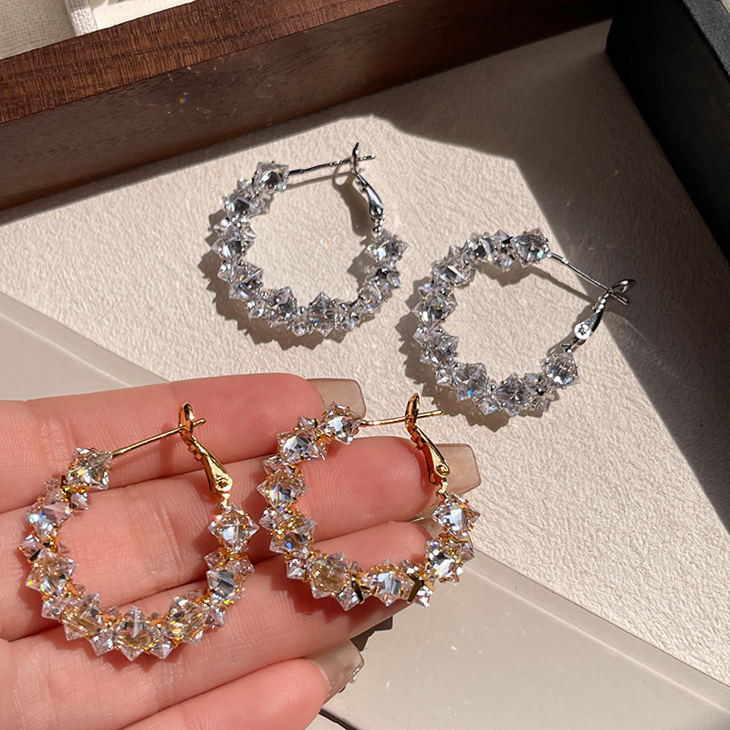 饰品5A级超闪锆石耳圈真金电镀耳钉925纯银针几何形大圆圈耳环女